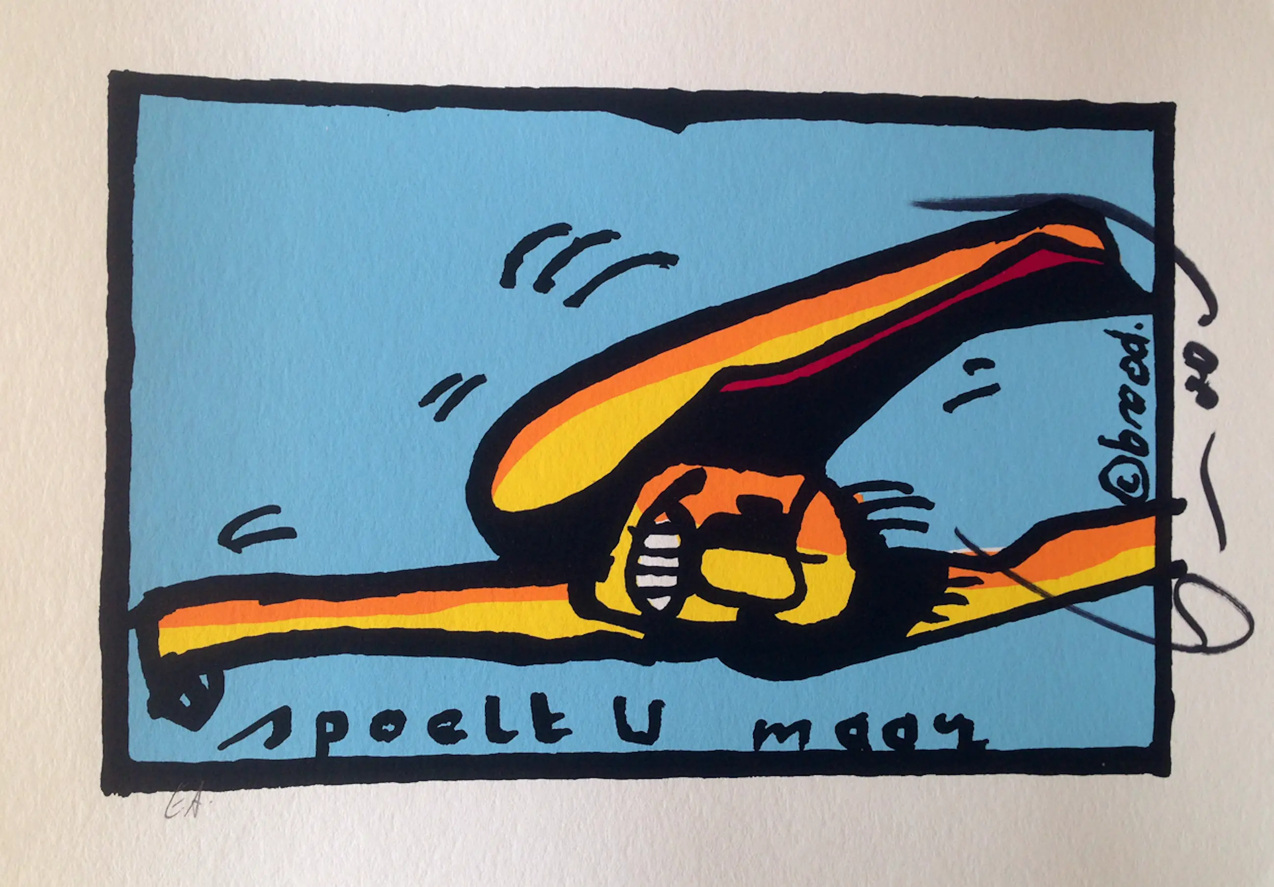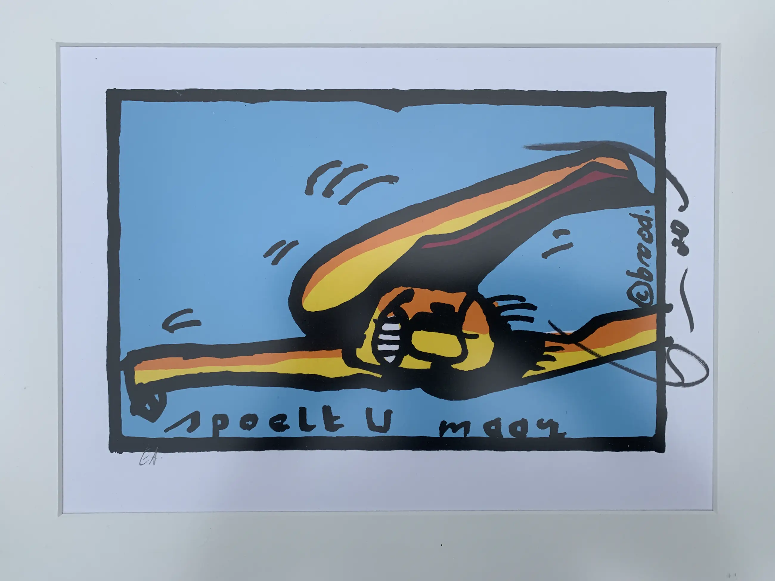 Zeefdruk van Herman Brood, editie E.A. Online is te vinden dat er 50 gewone edities zijn en 50 E.A.