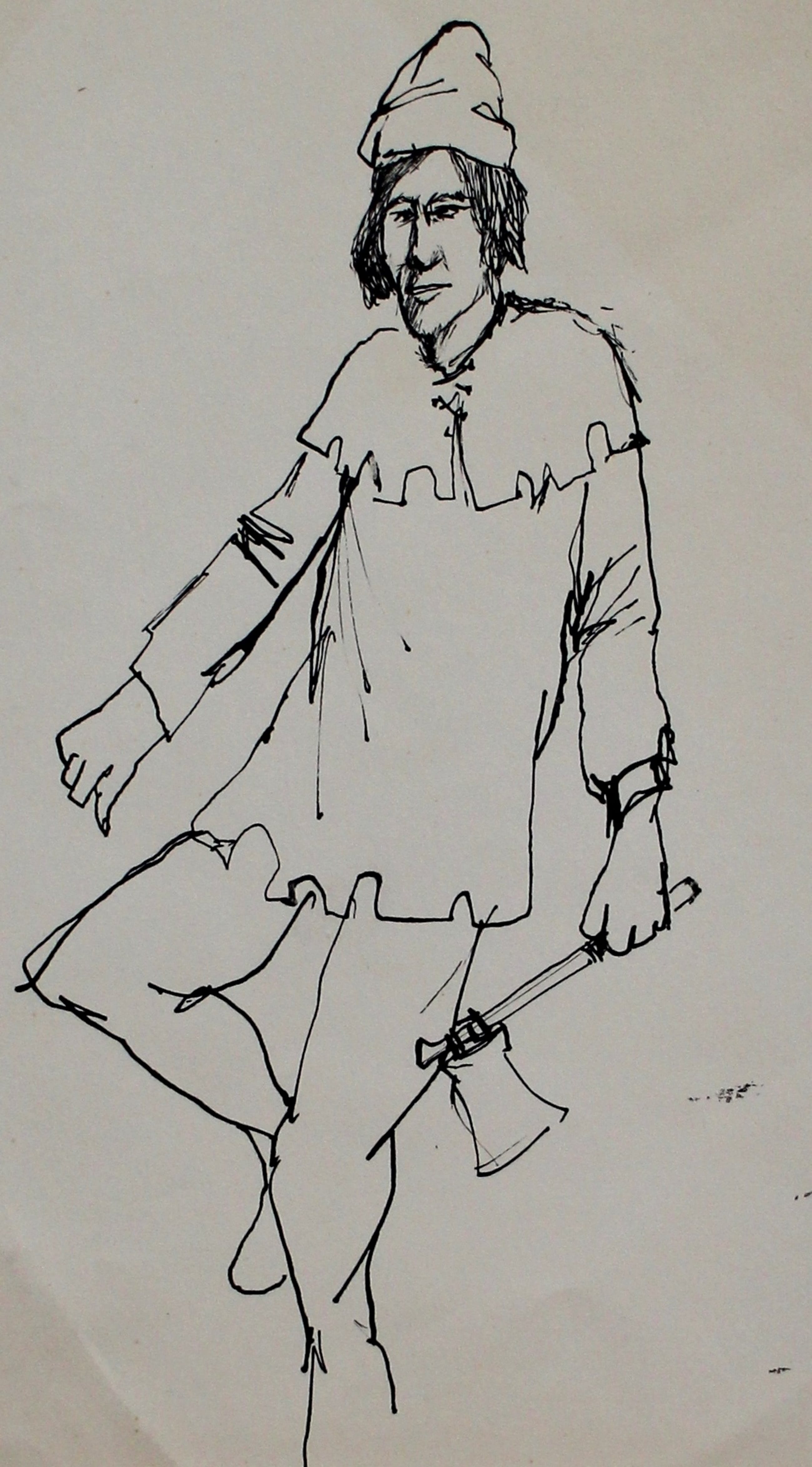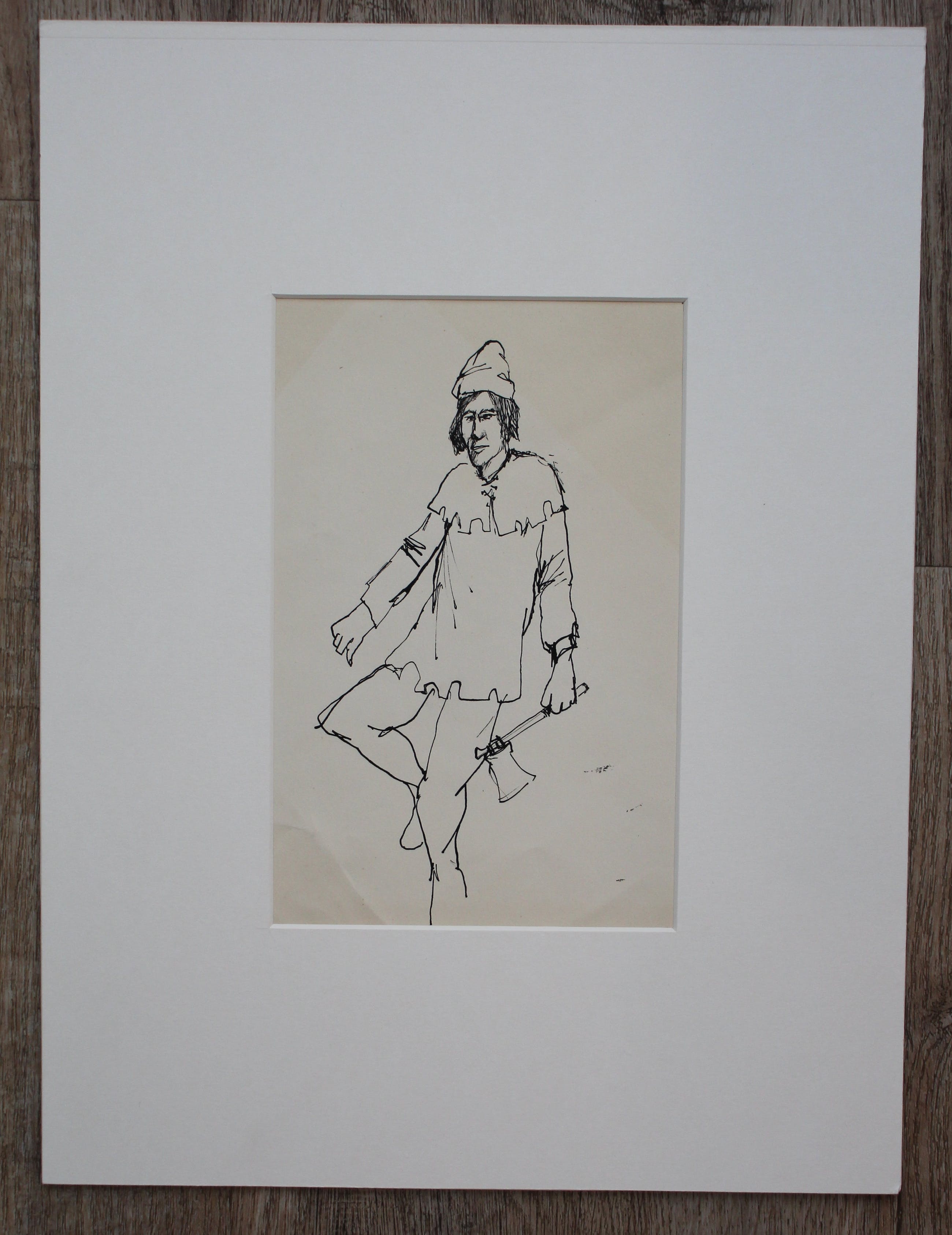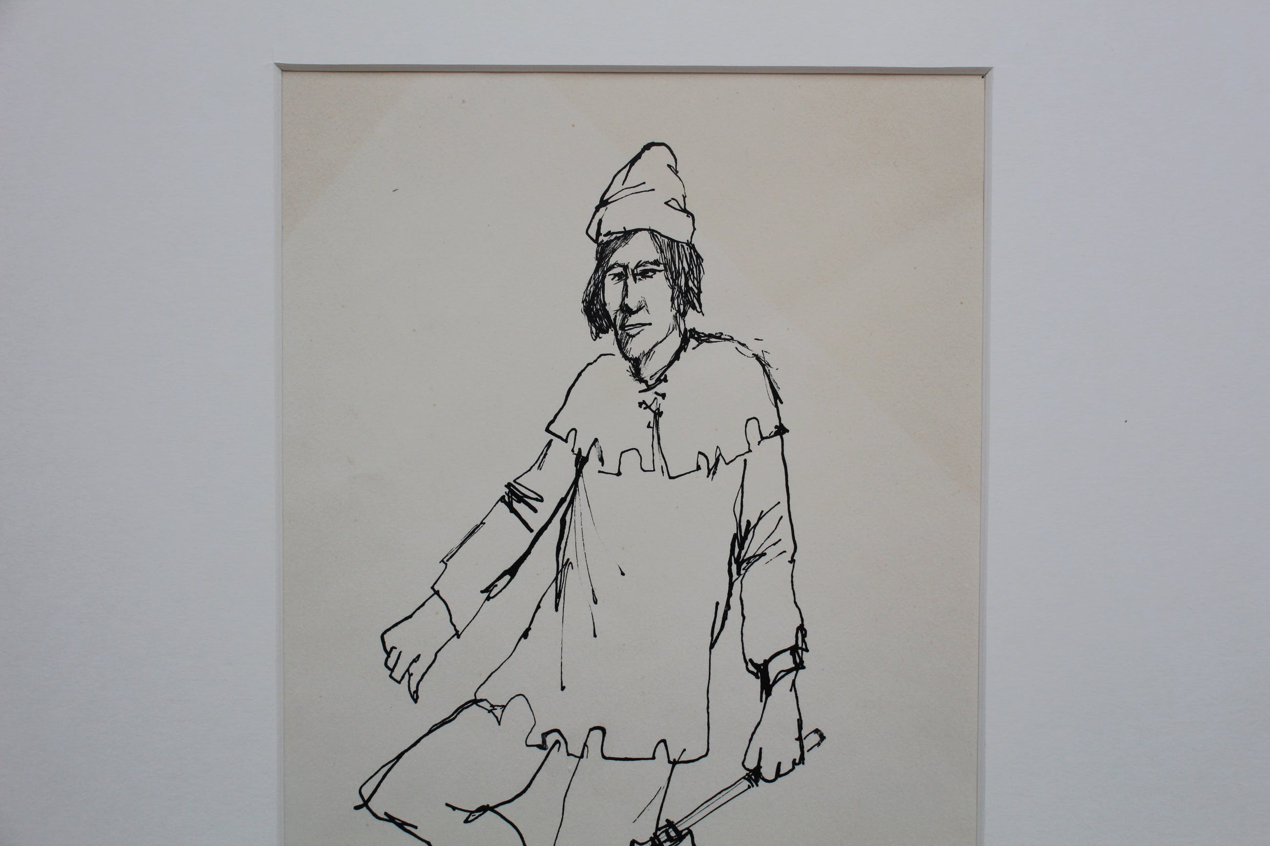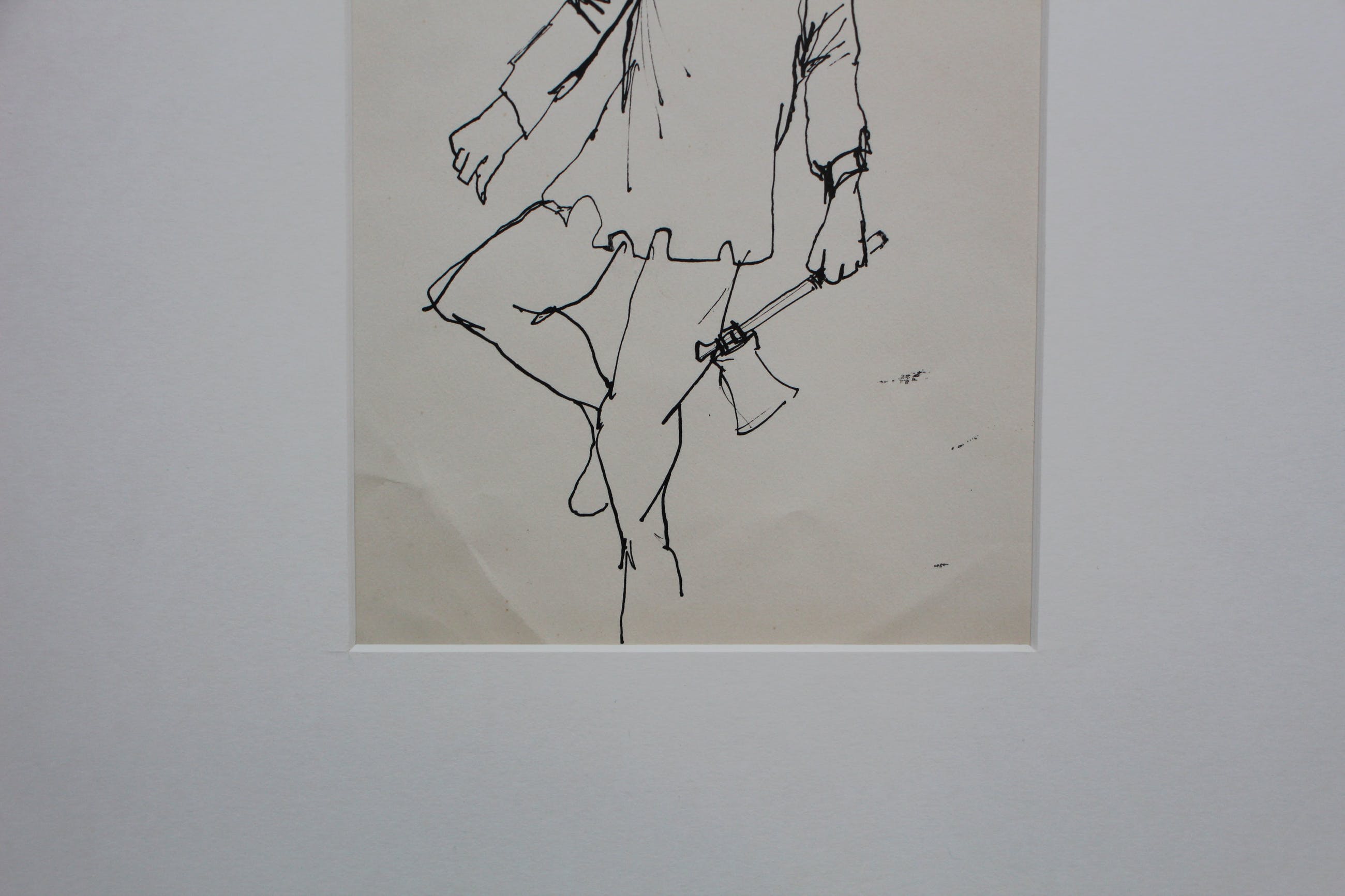 Tekening van Herman Brood uit zijn vroege periode (1970-1980). Afmetingen voorstelling: H 20 x b 9 cm. Afmetingen passe partout: H40 x b30 cm.