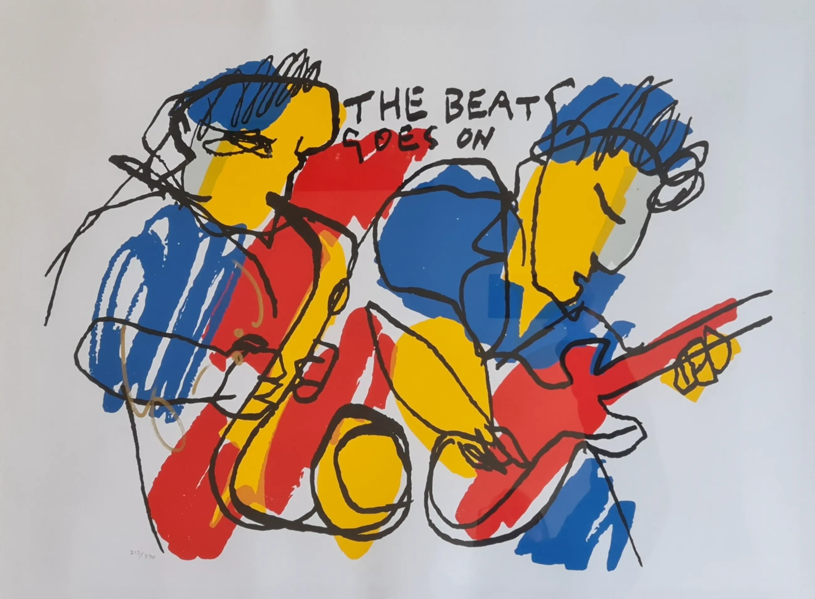 Knallend werk van Herman Brood met de titel the beat goes on.