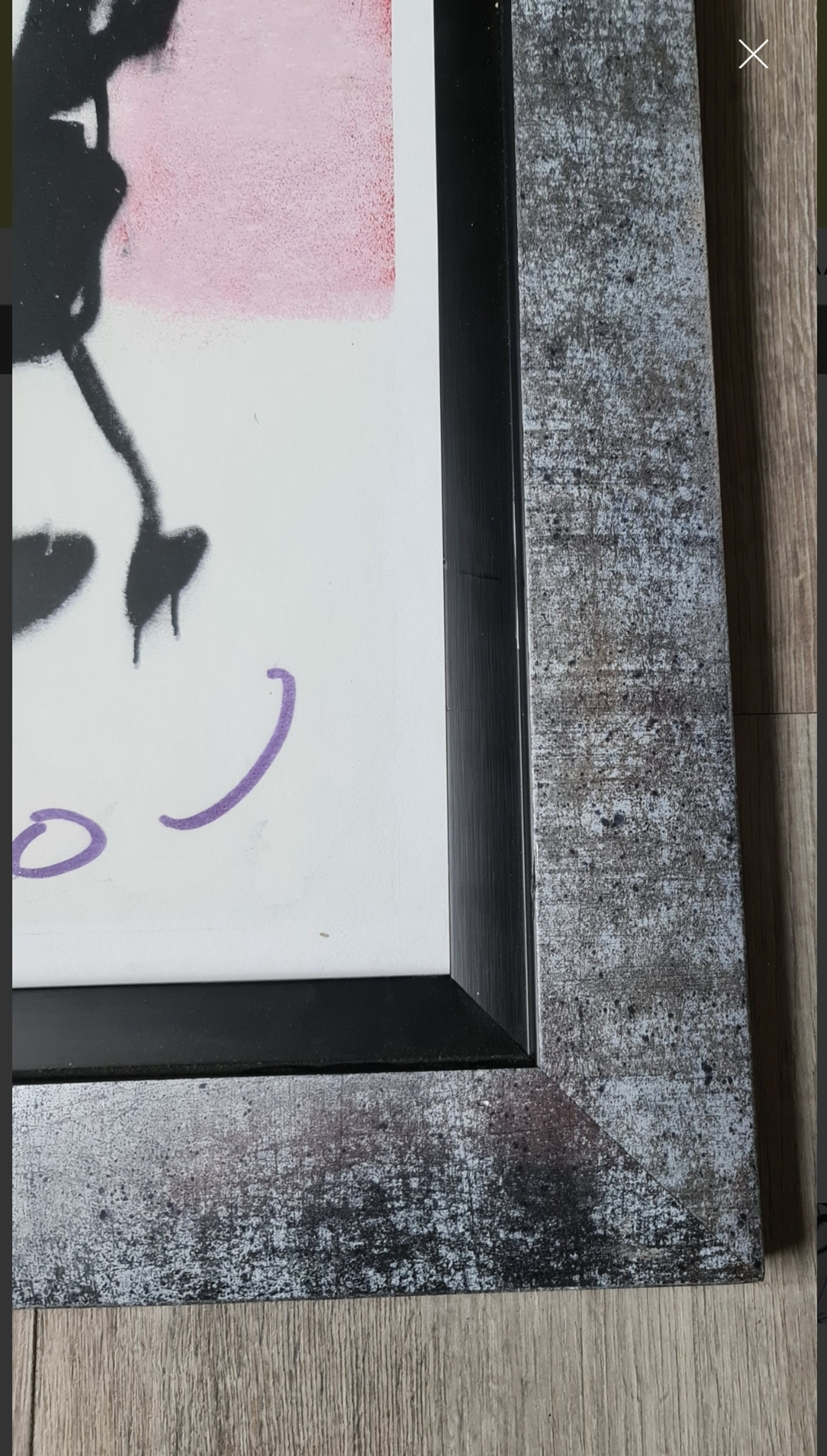 Werk en lijst in zeer goede staat. Er zit een klein plastic propje onder de glasplaat.(dit kan eventueel worden verwijderd)