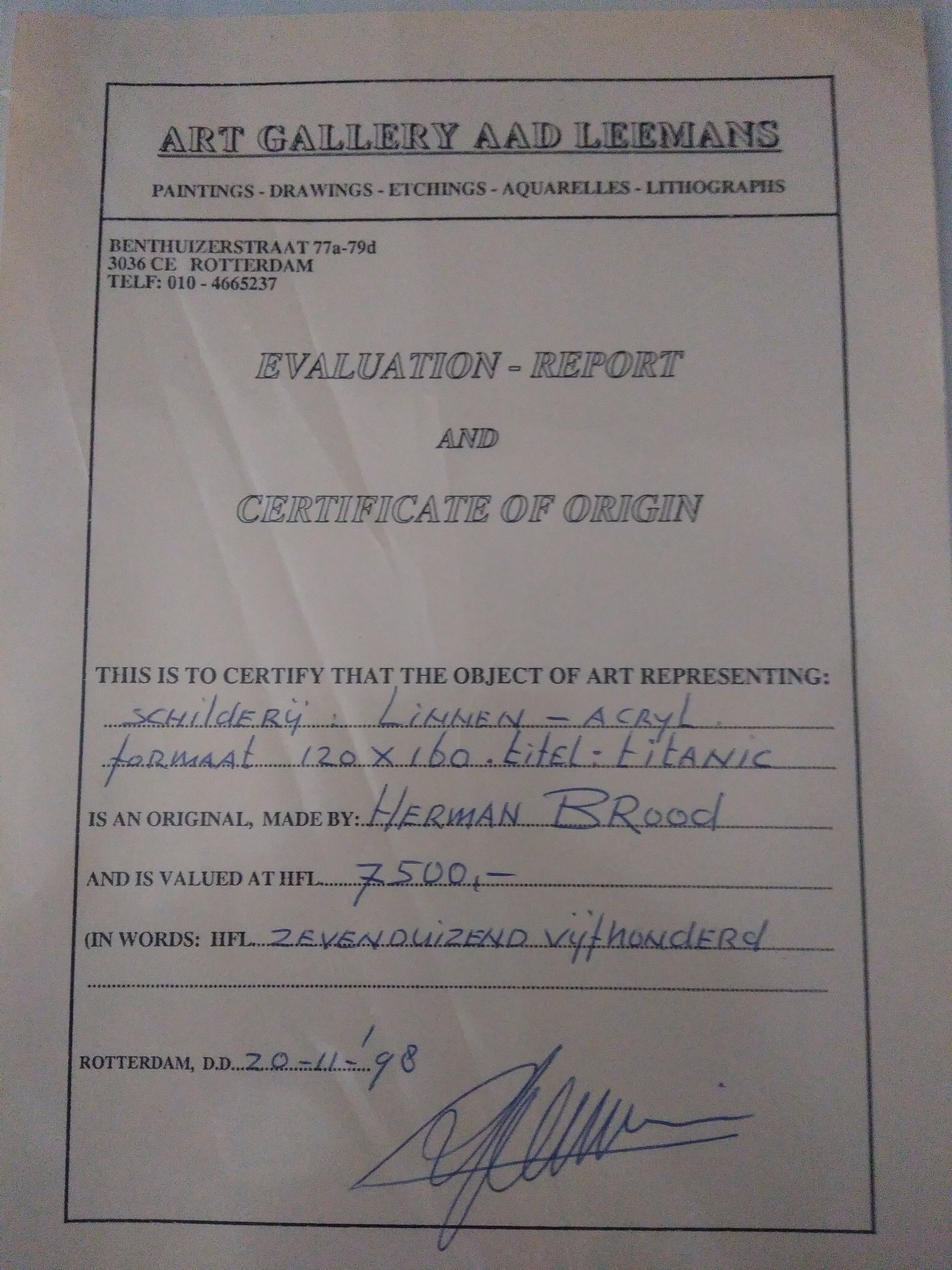 | Afhalen | Het werk is af te halen op locatie. Als koper dient u zelf verpakkingsmateriaal mee te nemen. De locatie is: Beilen, Nederland |