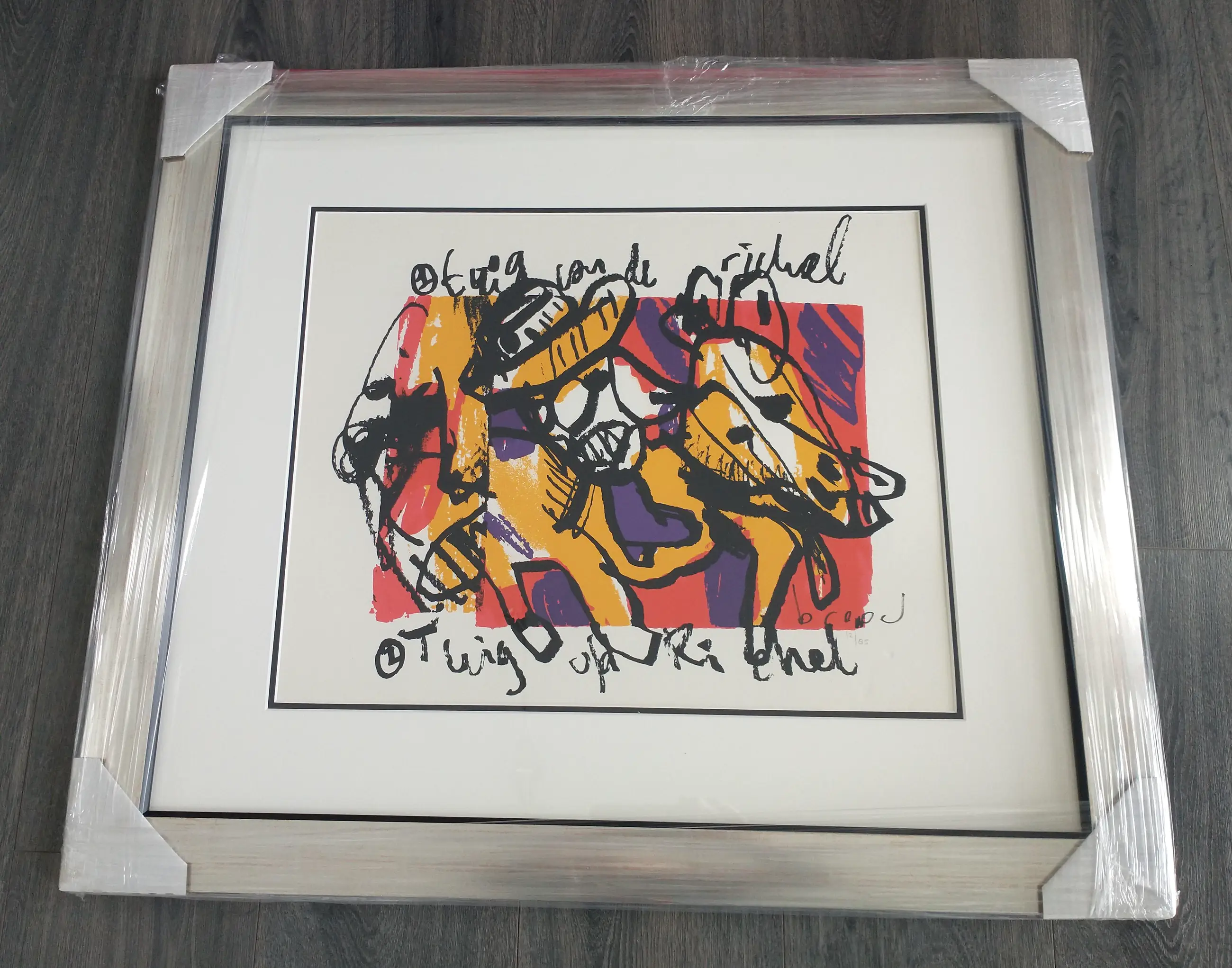 Prachtige zeefdruk van Herman Brood met de titel: 'Tuig van de richel'.