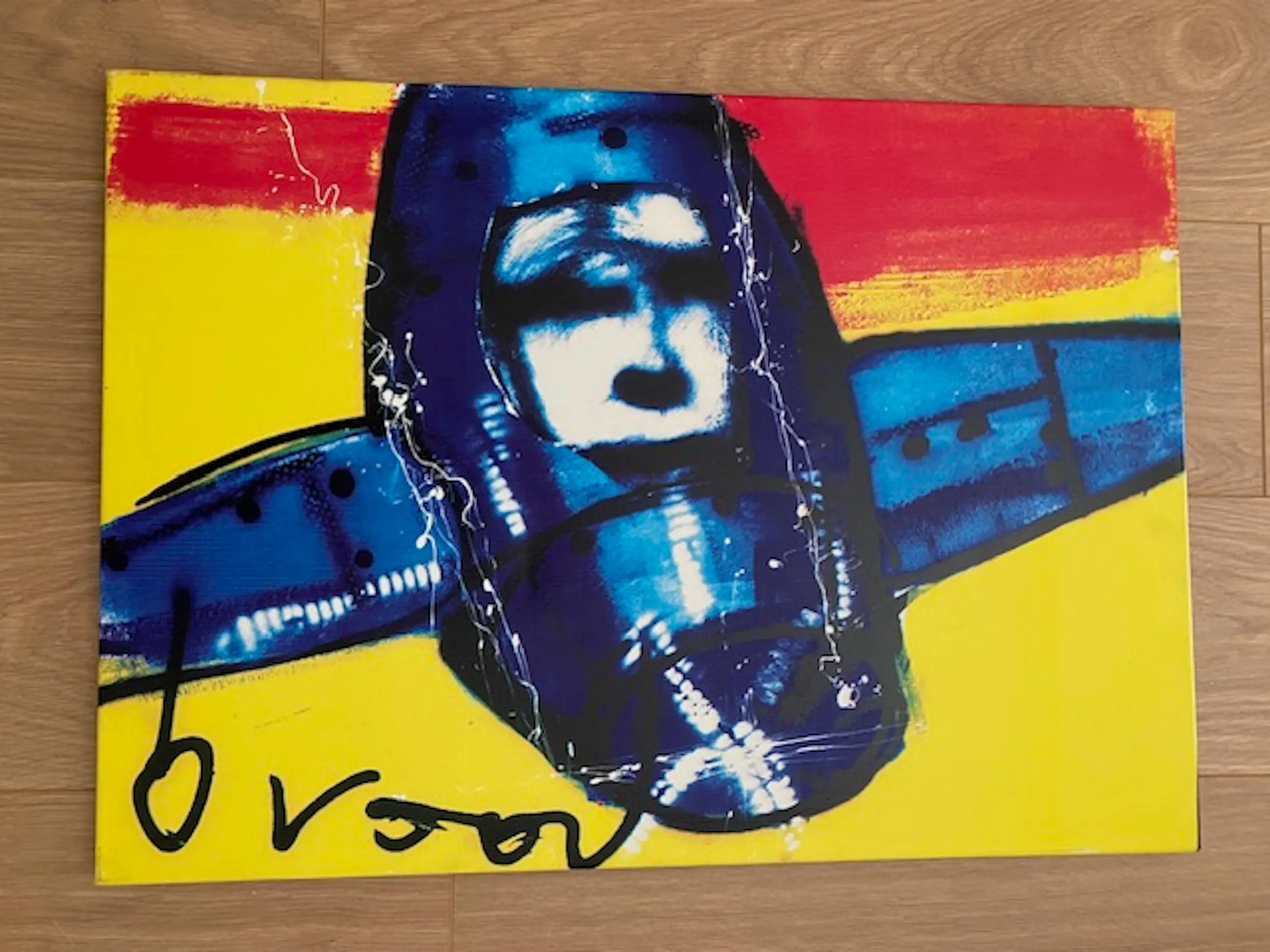 Schilderij van Herman Brood genaamd “vliegtuig” op hoogwaardig canvas, uitgegeven door de Erven Brood. De afmetingen: 70 x 50 x 2 cm. Gemerkt achterzijde copyright Erven Brood