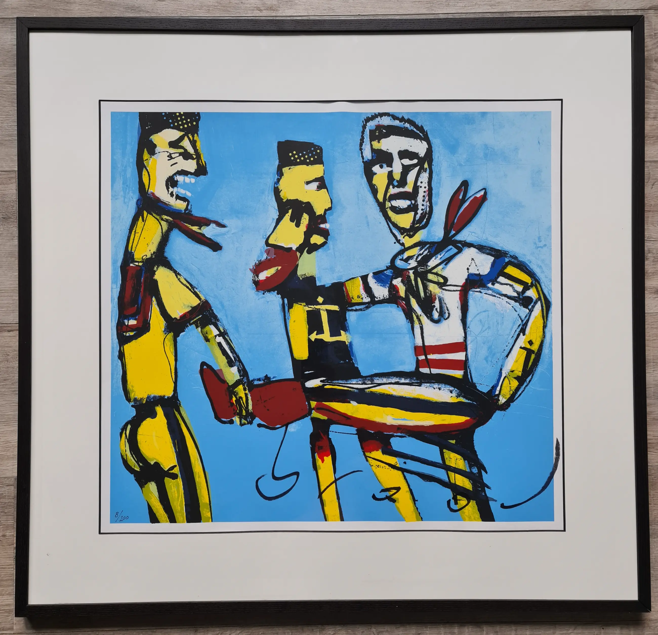 Prachtige originele zeefdruk van Herman Brood met de titel: Voetballers.