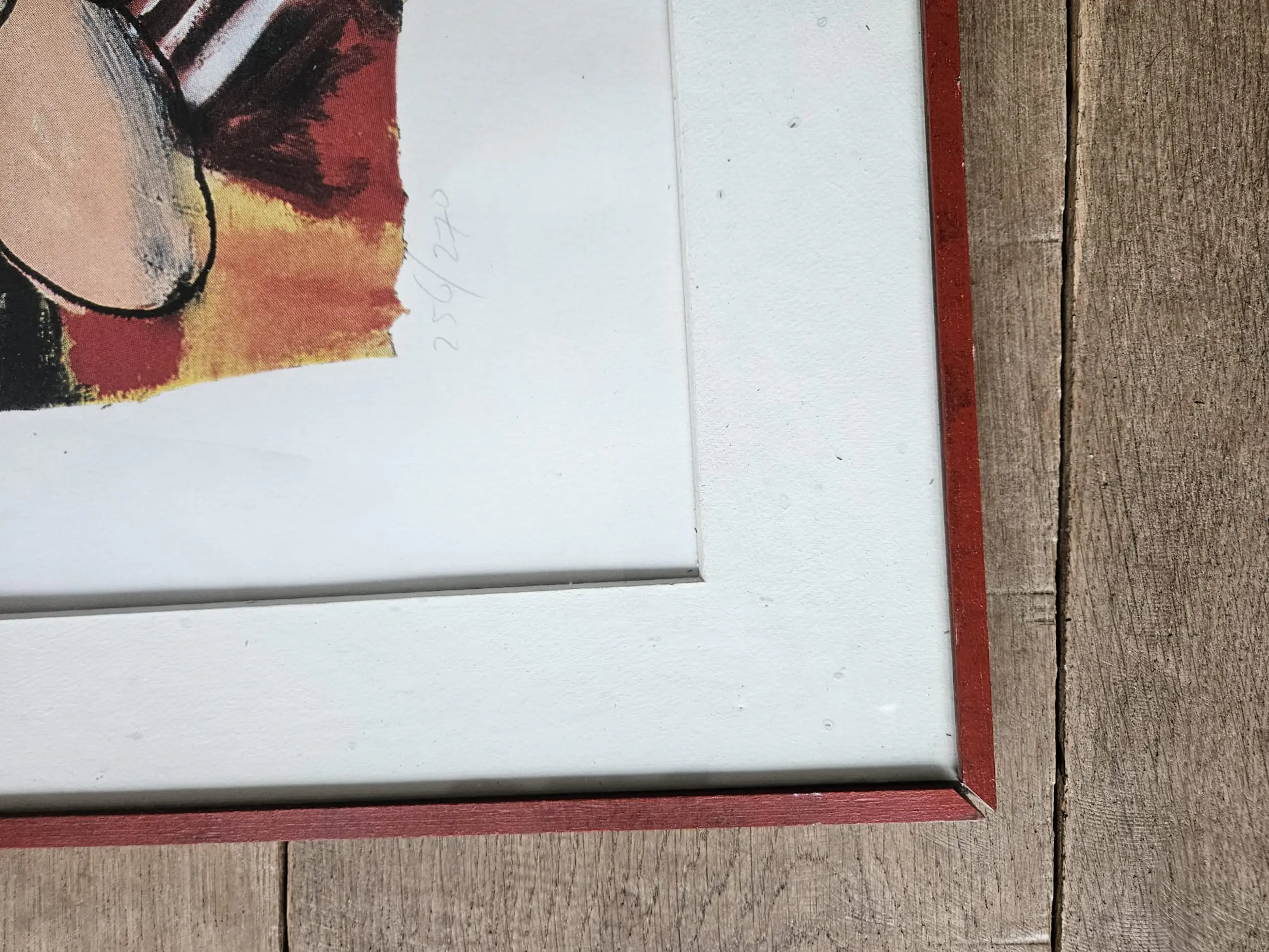De houten lijst moet vervangen worden, kan eventueel worden hersteld aan 2 hoeken.