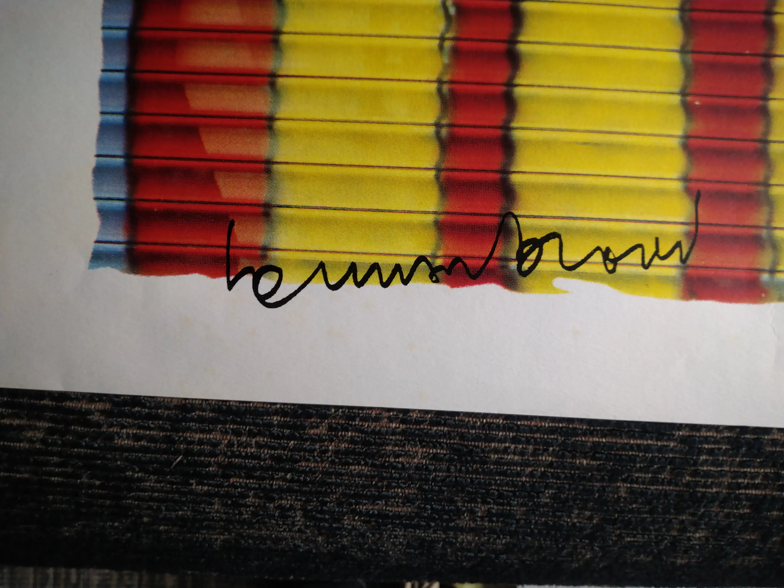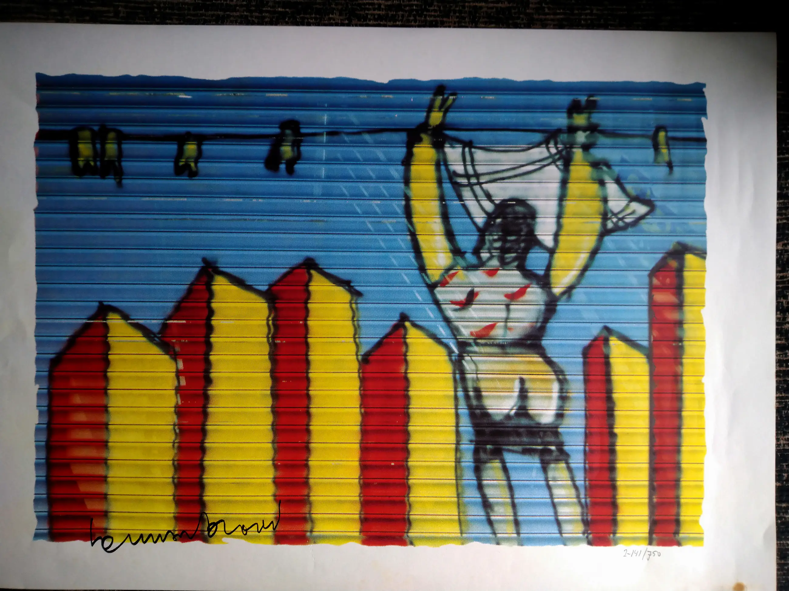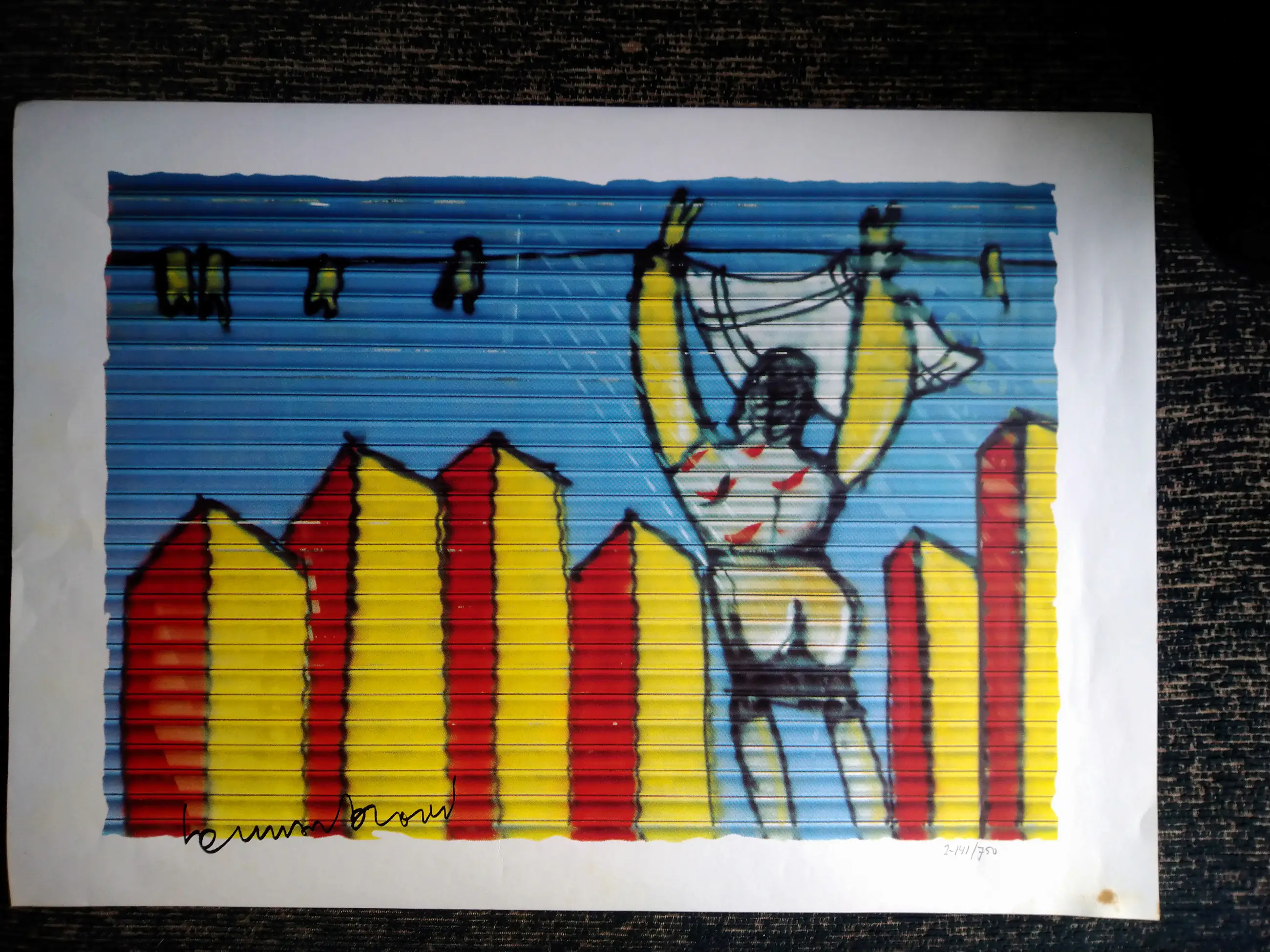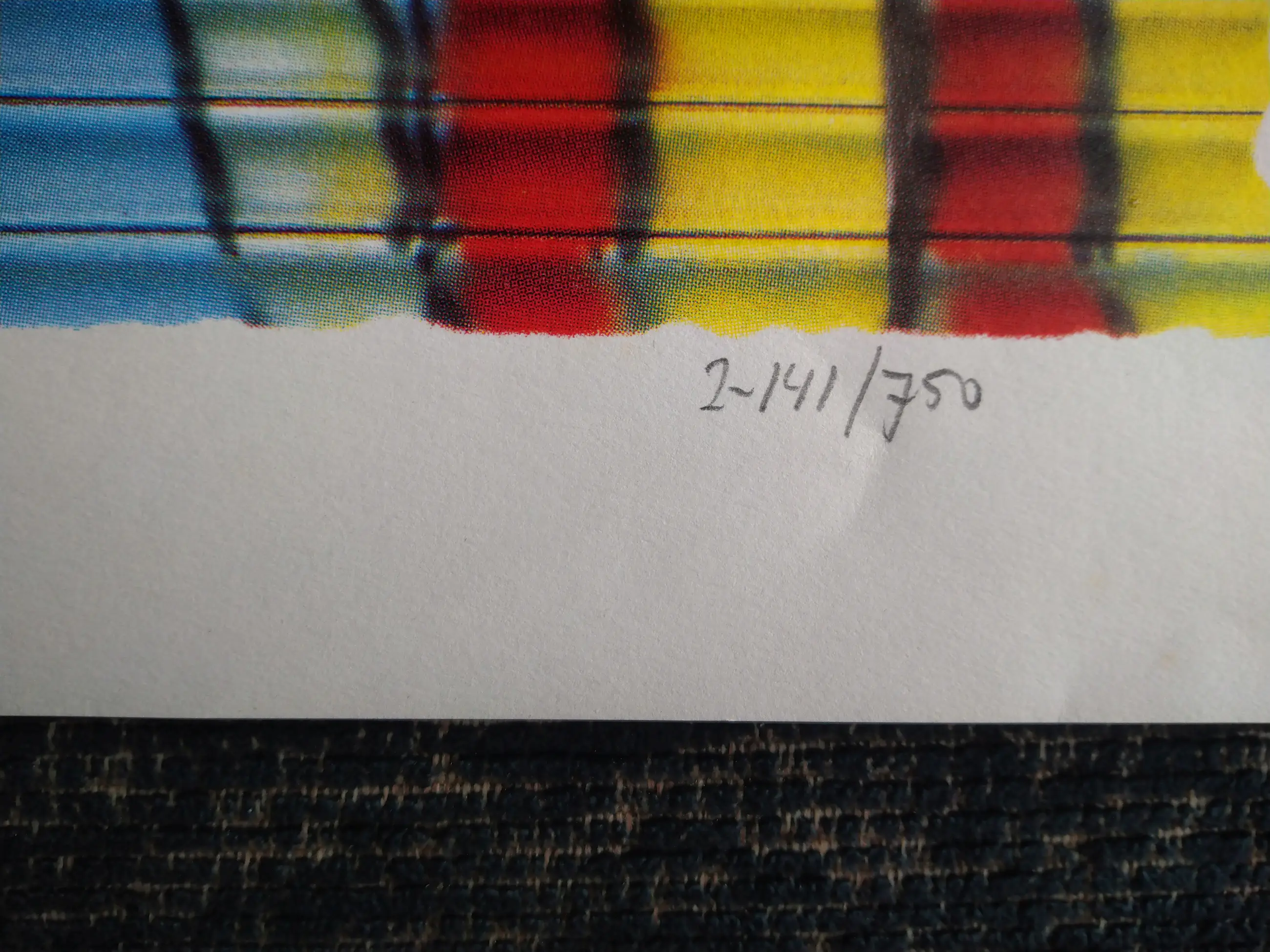 mooie zeefdruk met hele mooie heldere kleuren maat afbeelding h 38 bij b 57 totaal h 48 bij b 68 witte rand zit vlekje op maar valt weg als er een lijst omheen is met een passe partout handtekening is meegedrukt serie 2-141/750