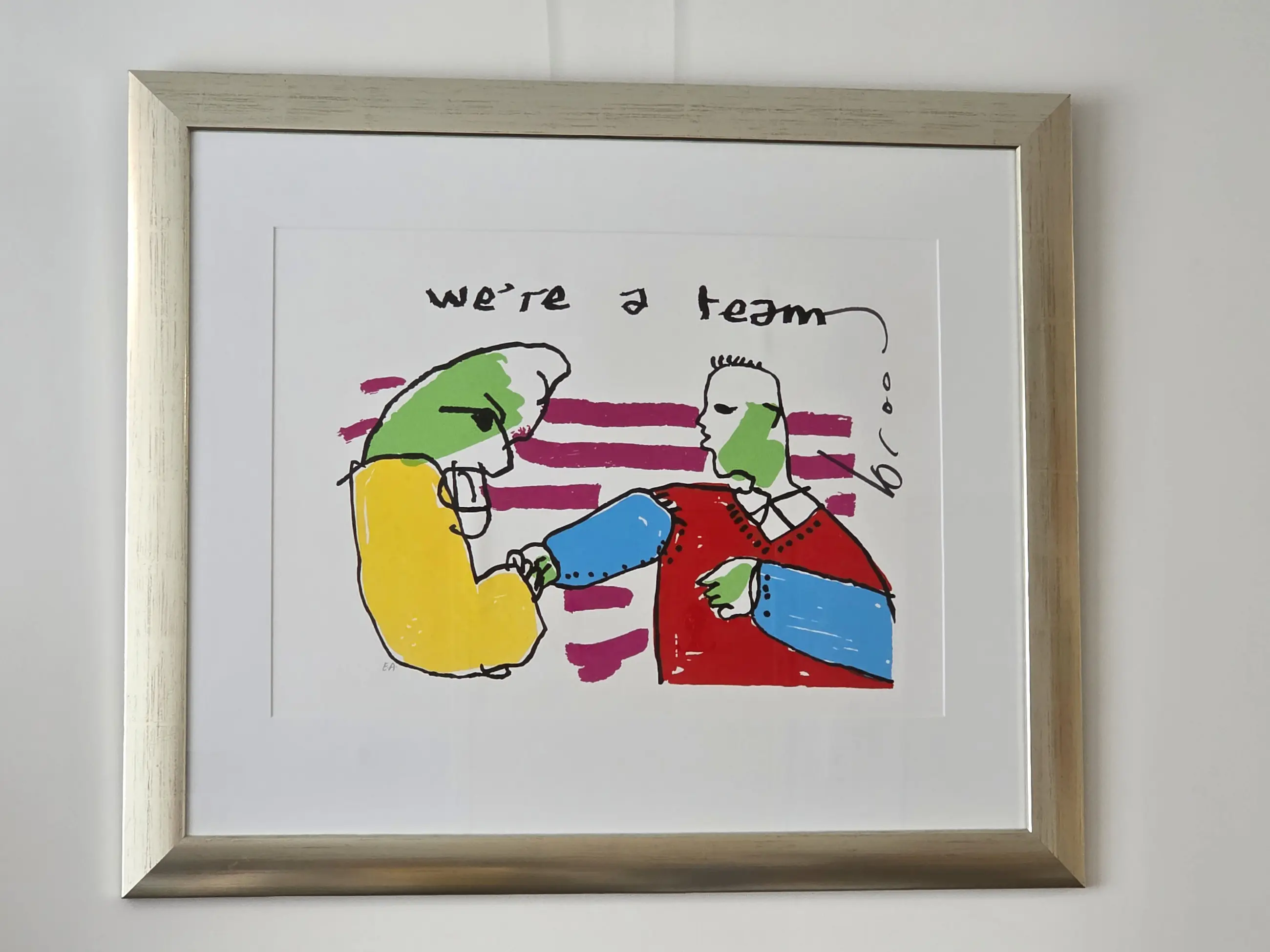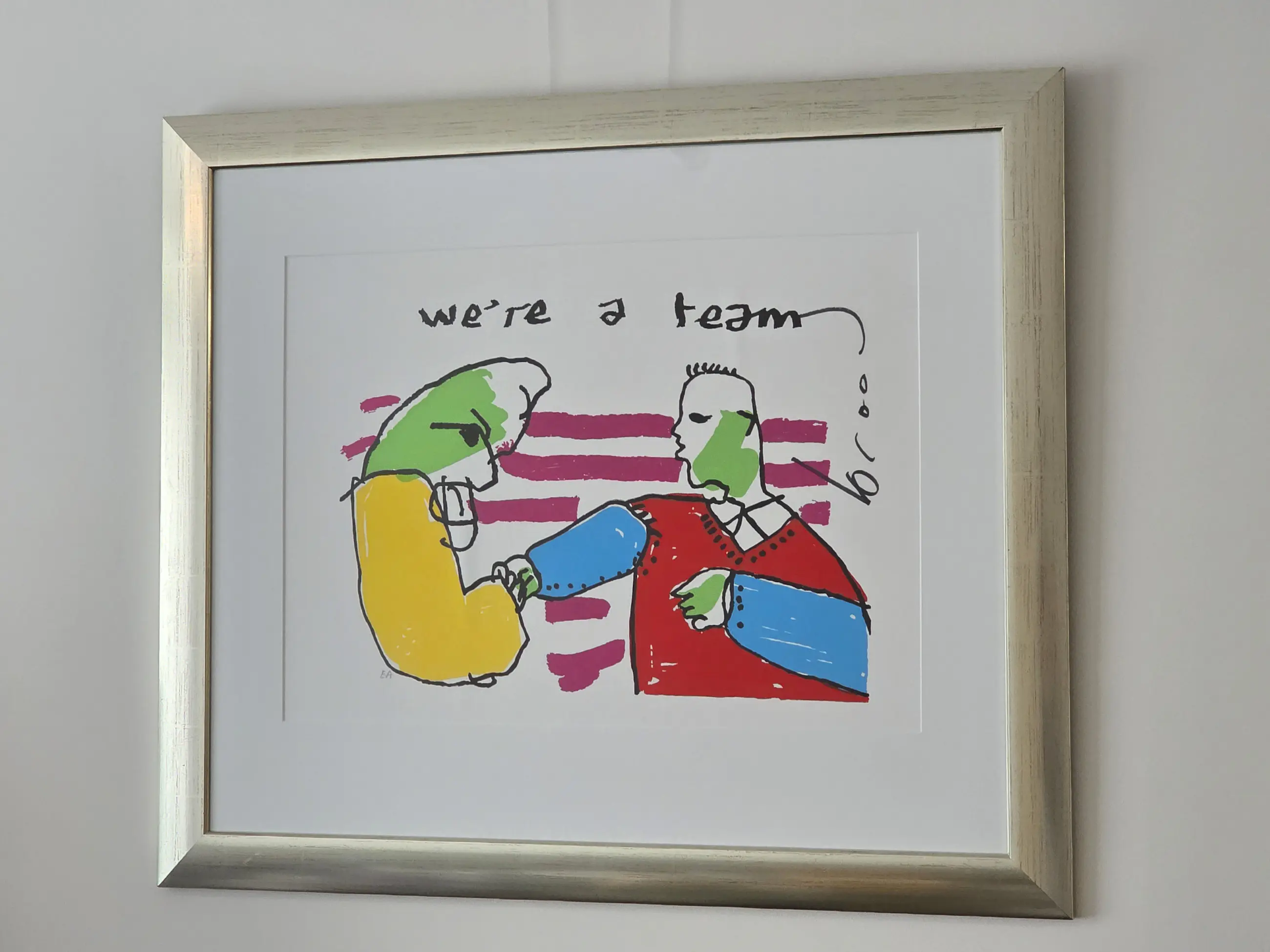Afmeting van de Zeefdruk 63 cm x 47 cm Afmeting van de lijst inclusief Zeefdruk 90 cm x 77 cm