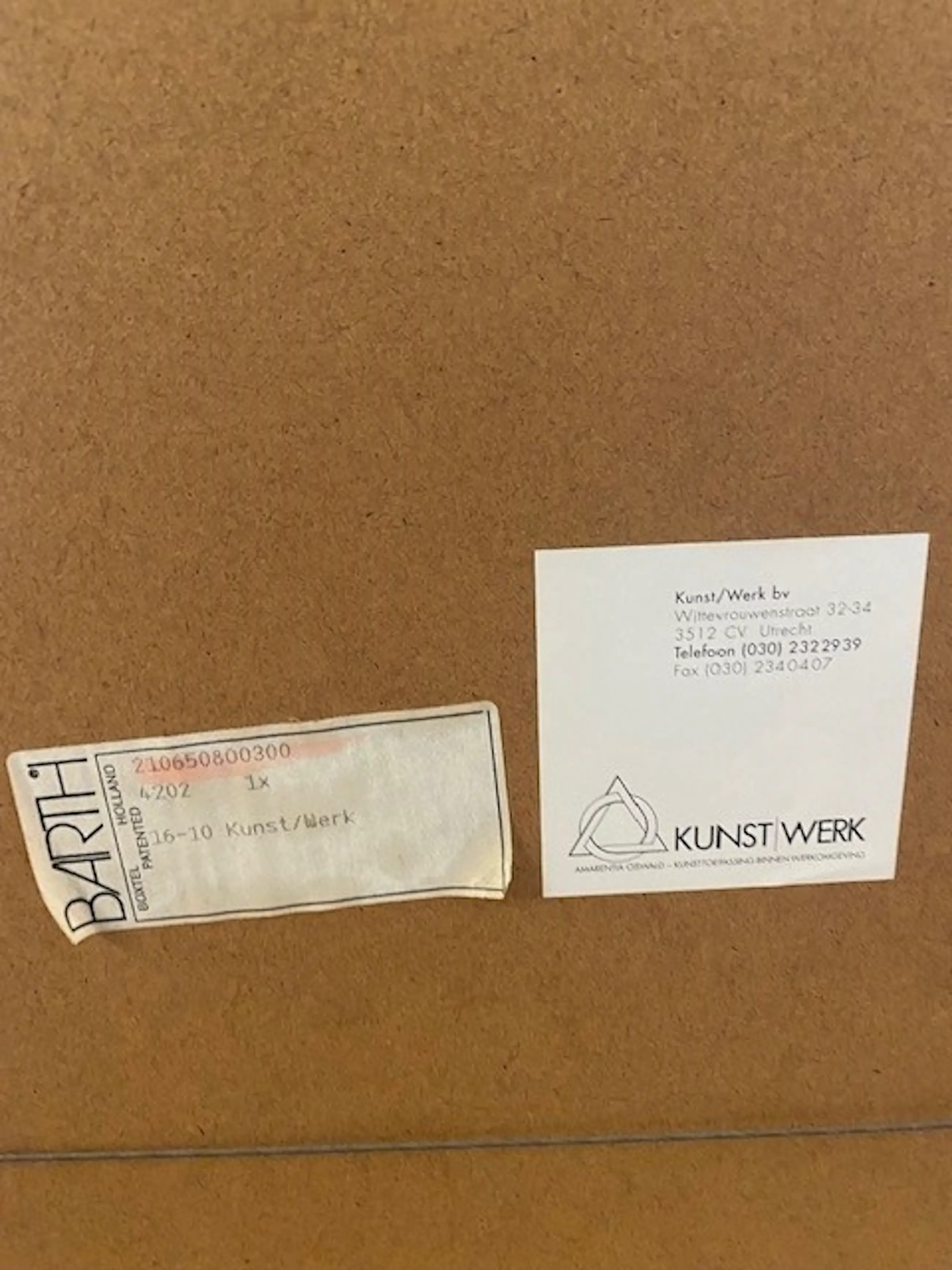Het werk is af te halen op locatie. Als koper dient u zelf verpakkingsmateriaal mee te nemen. De locatie is: Soesterberg, Nederland