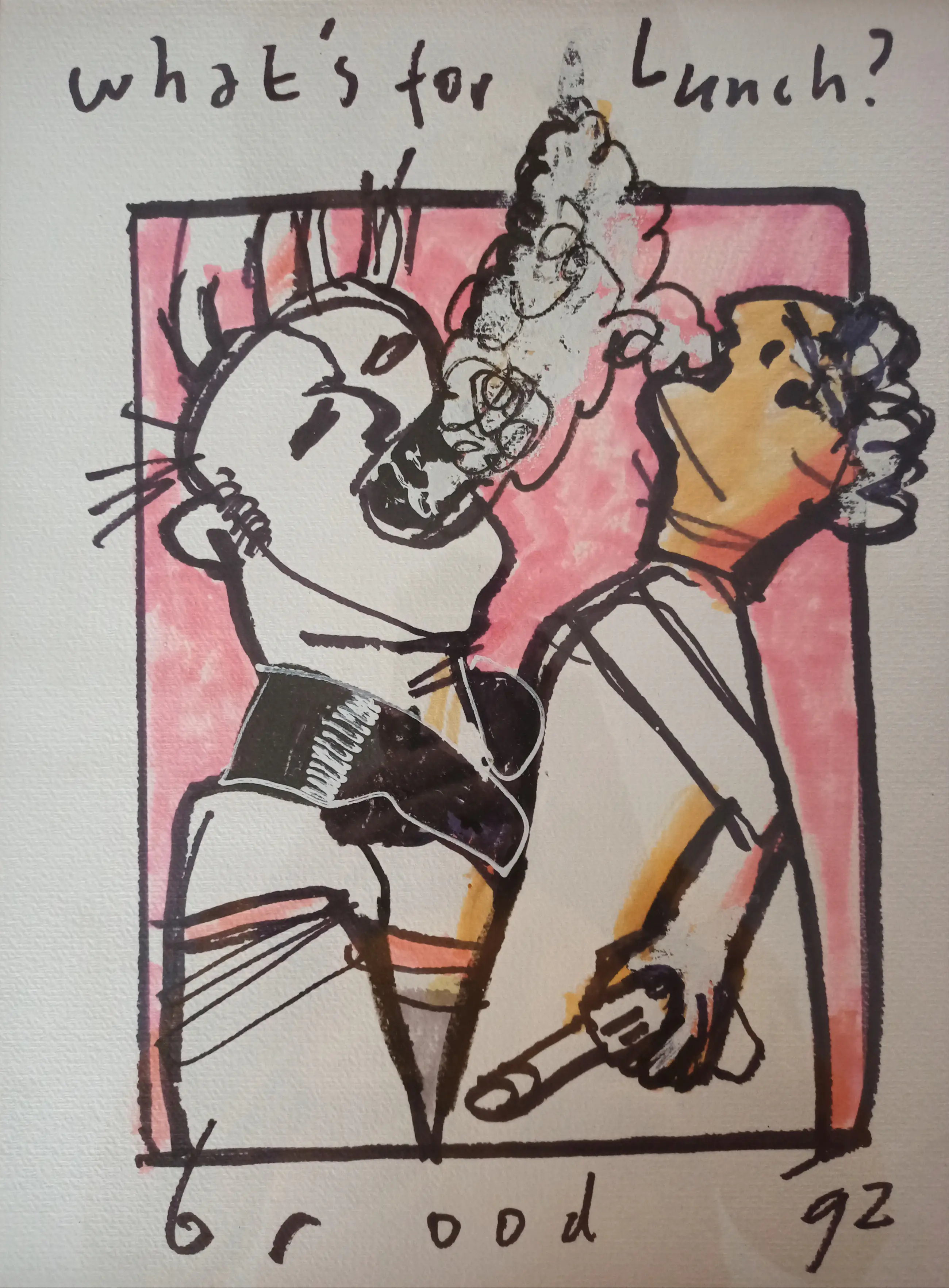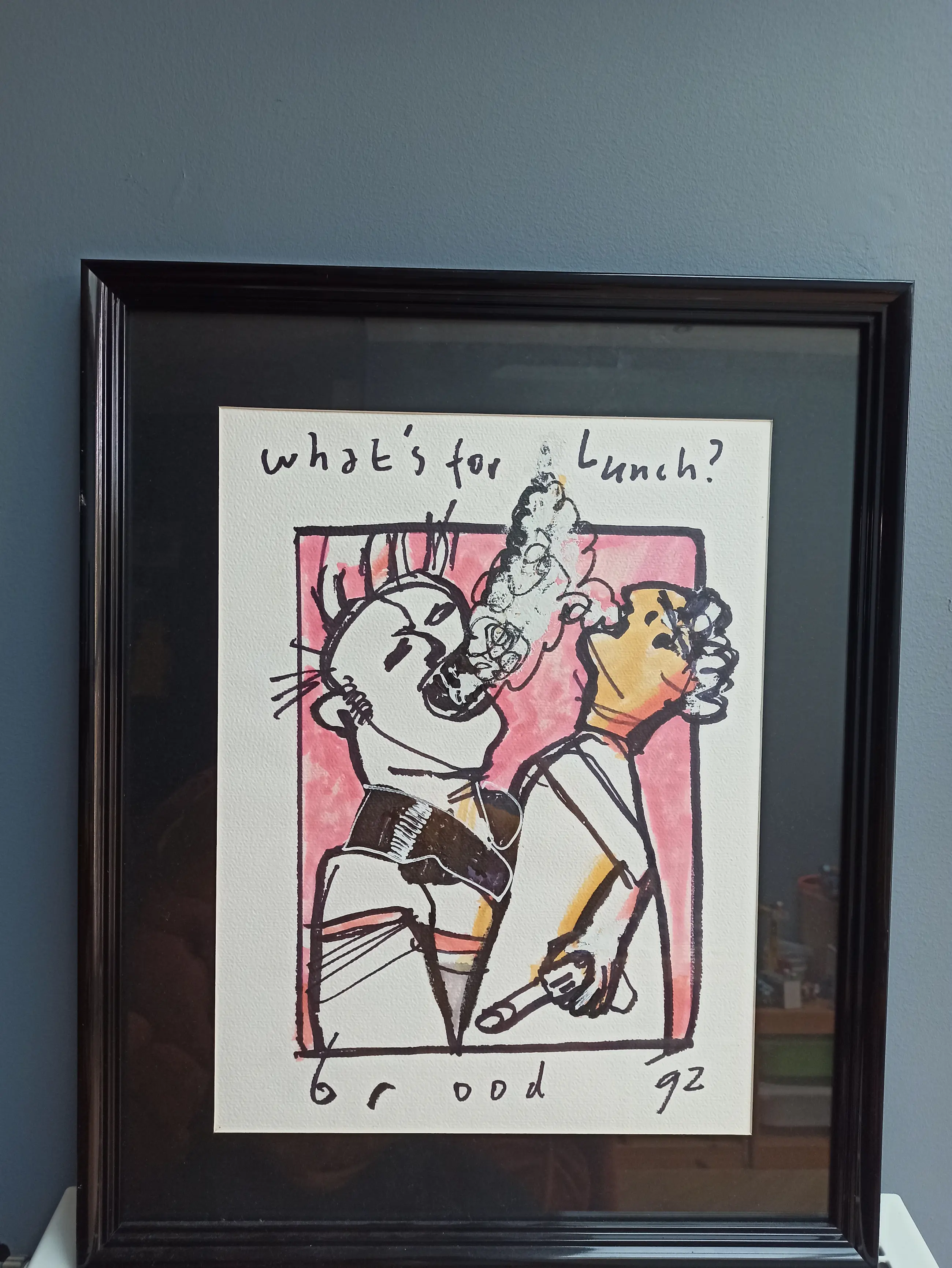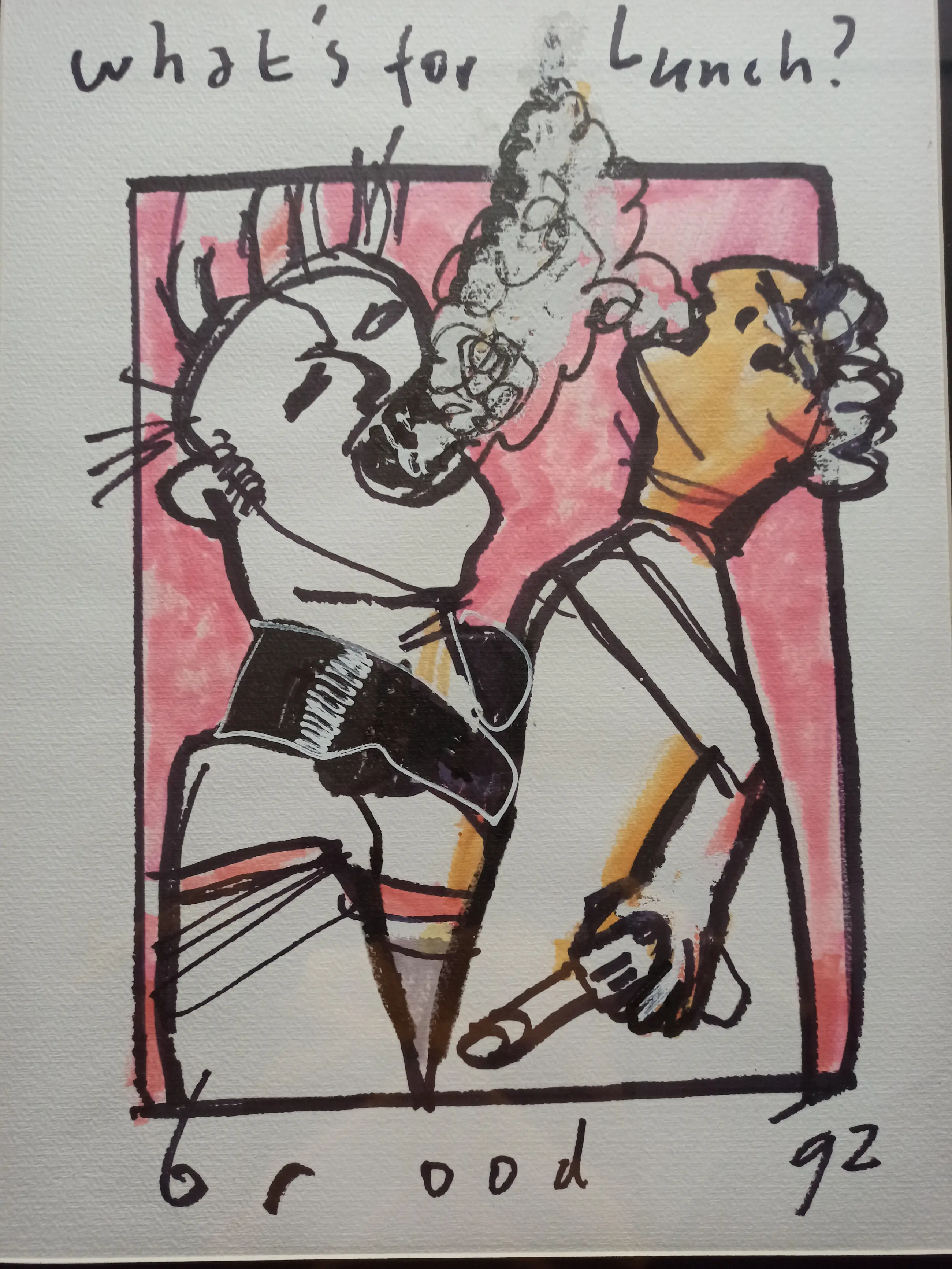 Schitterend origineel werk van Herman Brood op papier. Het werk betreft een eerbetoon aan zijn idool William Burroughs.