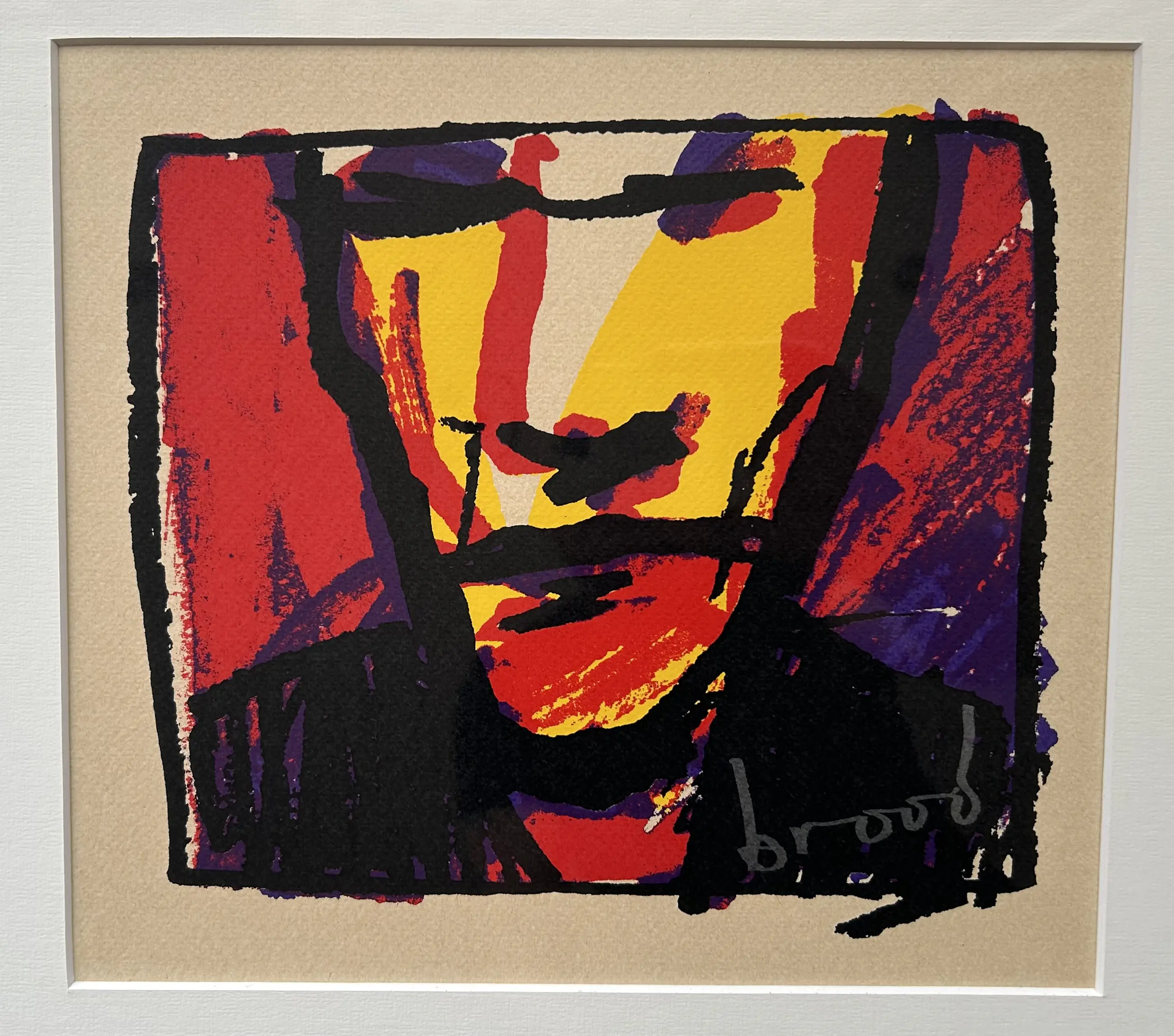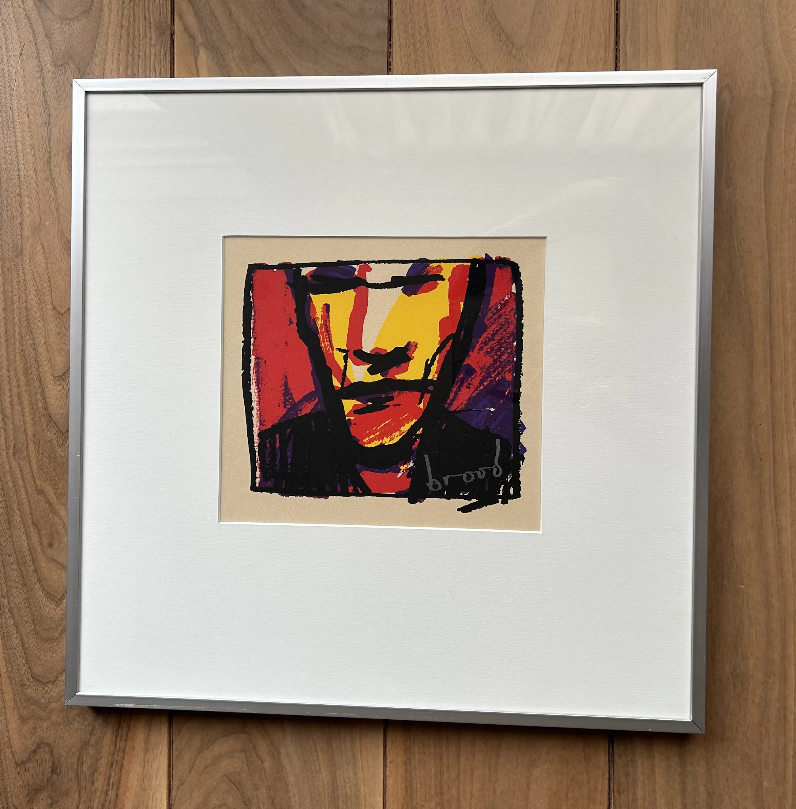 Prachtig ingelijste zeefdruk behorende bij het kunstenaarsboek ‘Woedend Licht’ van Herman Brood.