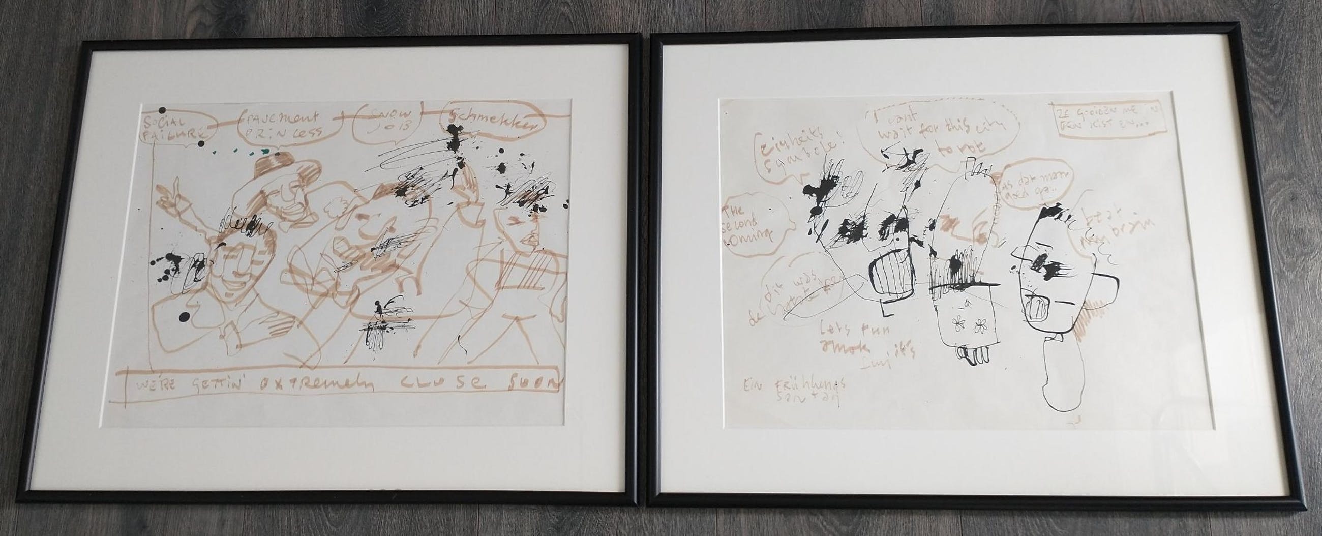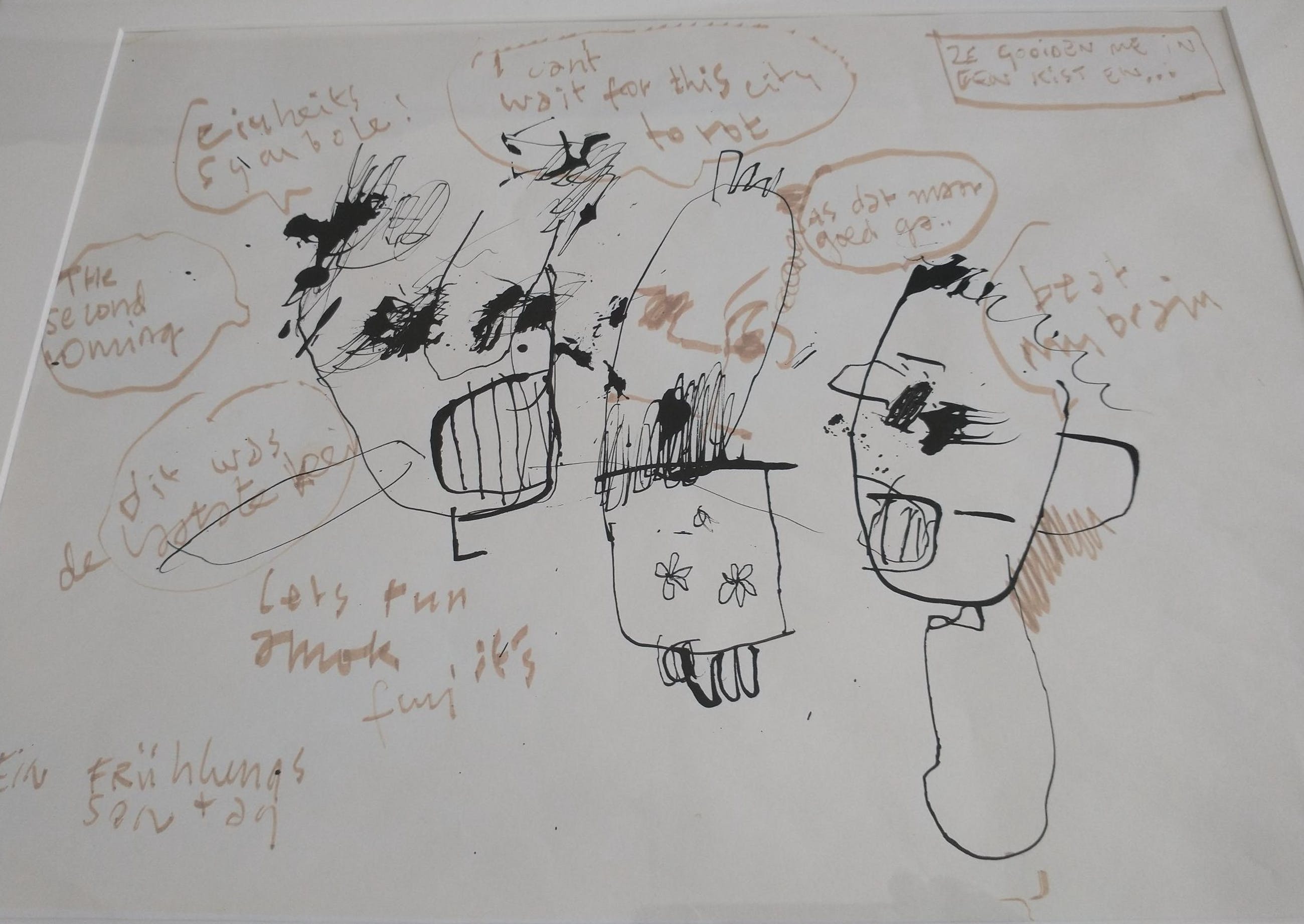 Oost-Indische inkt en alcoholstift op papier, met typische teksten van Herman.