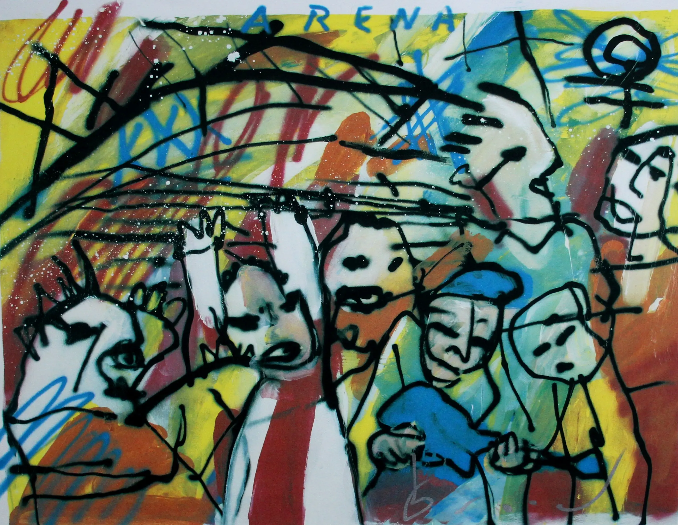 Zeefdruk van Herman Brood. Titel: Arena. Oplage):81/500.. Afmetingen werk: H57 x b76 cm. Afmetingen voorstelling: H49,5 x b65,5 cm.