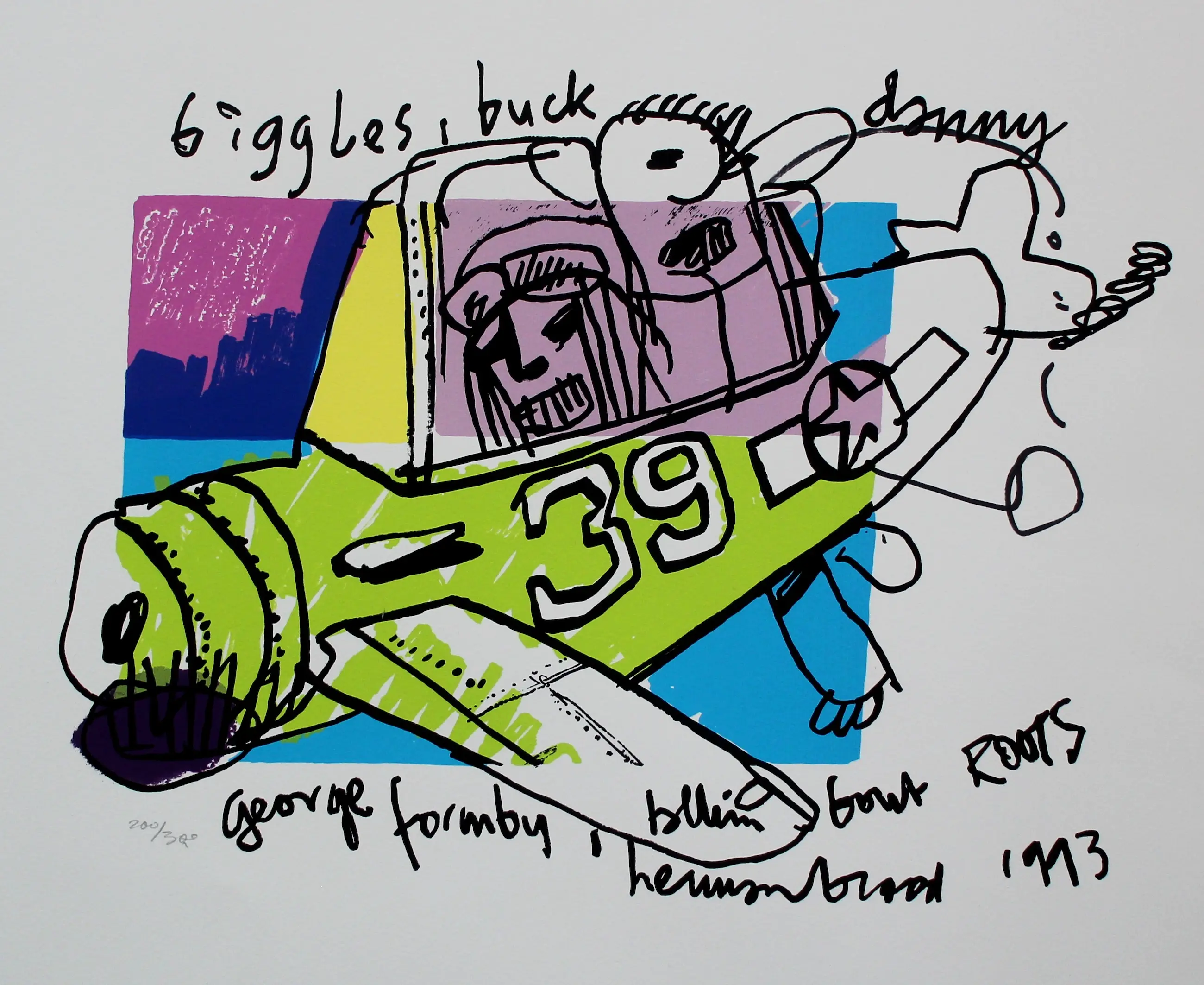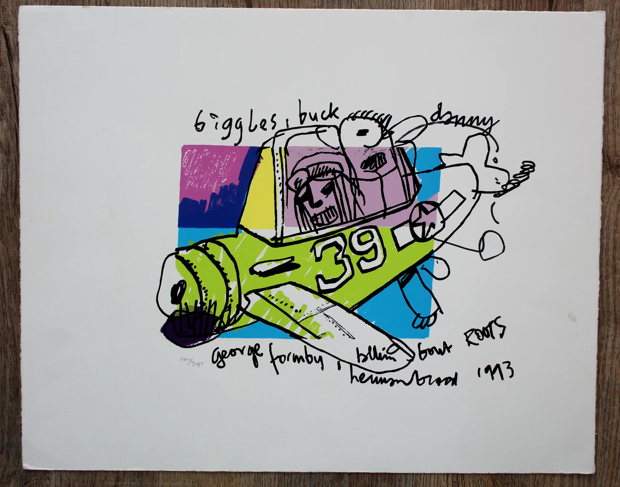 Zeefdruk van Herman Brood. Titel: "Biggles". Oplage: 200/300.