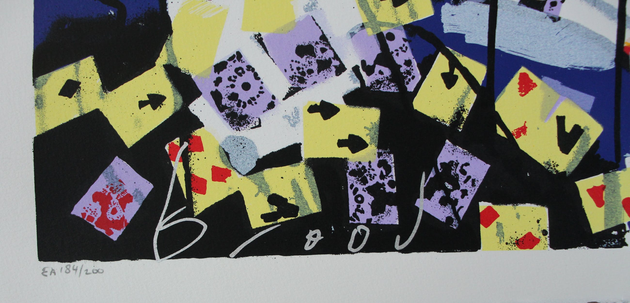 Zeer populaire zeefdruk van Herman Brood. Titel: Casino. Nummer: 184/200. Deze zeefdruk is gemaakt in opdracht van Holland Casino. Afmetingen blad: H56.5 x b76cm. Afmetingen beeld: H51 x b70 cm. Het werk is linksonder met zilveren marker gesigneerd door Herman Brood. De authenticiteit van het aangeboden werk wordt volledig gegarandeerd. Een certificaat van echtheid kan, op aanvraag, worden gemaild.