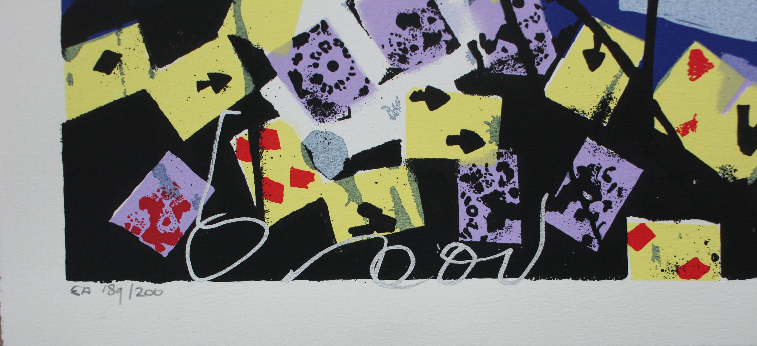 Herkomst: De zeefdruk komt rechtstreeks bij Holland Casino (hoofdkantoor) vandaan. De vorige eigenaar heeft kantoormeubilair opgekocht via BVA veilingen, waarbij hij een aantal zeefdrukken, als verassing, in één van de gekochte kasten aantrof.