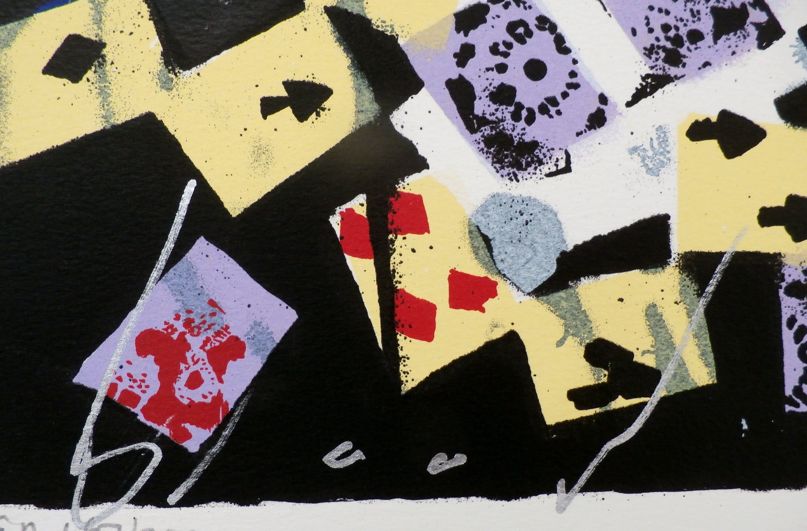Zeer populaire zeefdruk van Herman Brood. Titel: Casino. Deze zeefdruk is gemaakt in opdracht van Holland Casino. Nummer: 167/200 (nummer kan afwijken i.v.m. het in bezit hebben gehad van meerdere exemplaren).Afmetingen beeld: H 51 x b70 cm. Het werk is linksonder met zilveren marker gesigneerd door Herman Brood. Herkomst: De zeefdruk komt rechtstreeks bij Holland Casino (hoofdkantoor) vandaan. De vorige eigenaar heeft kantoormeubilair opgekocht via BVA veilingen, waarbij hij een aantal zeefdrukken, als verassing, in één van de gekochte kasten aantrof.