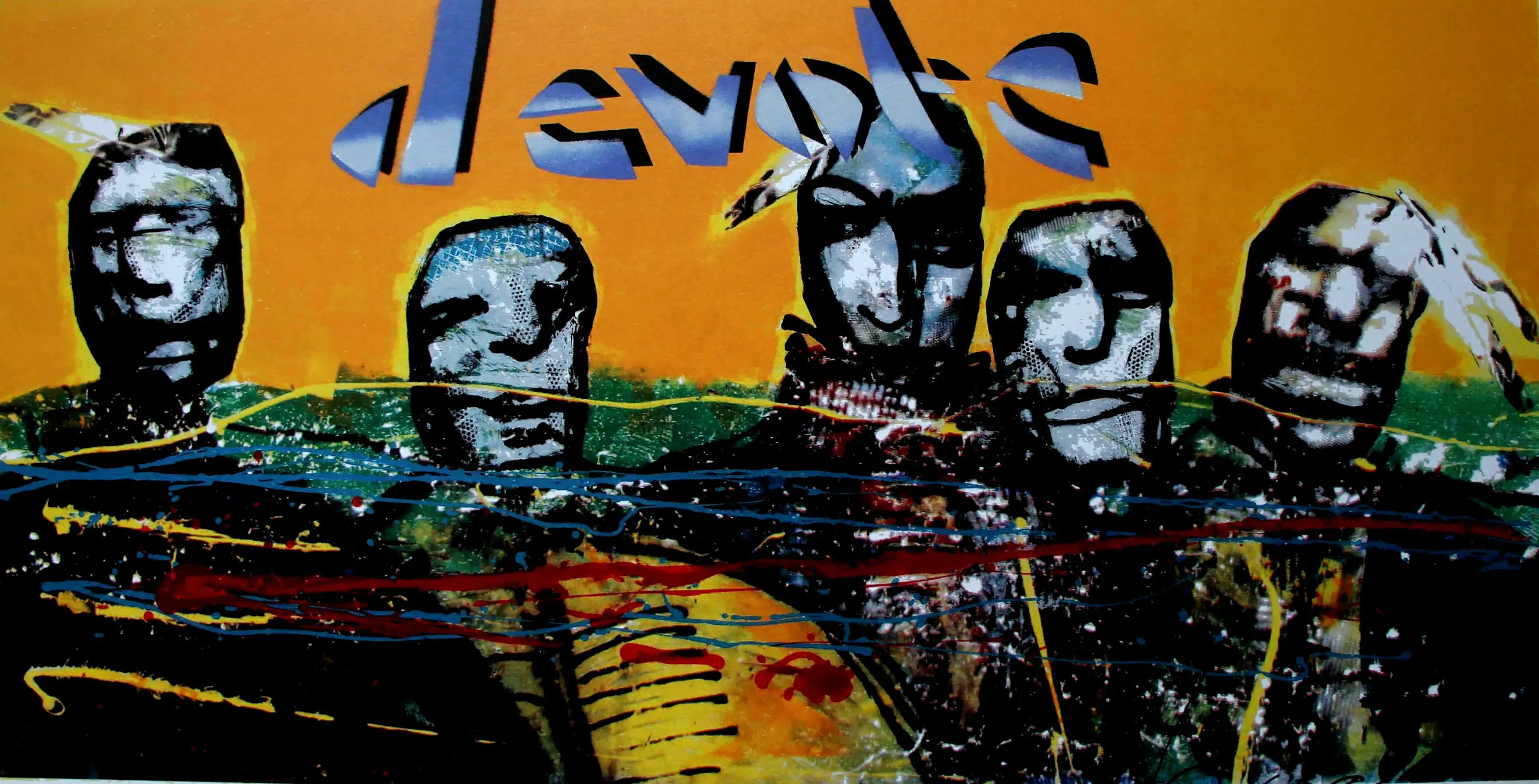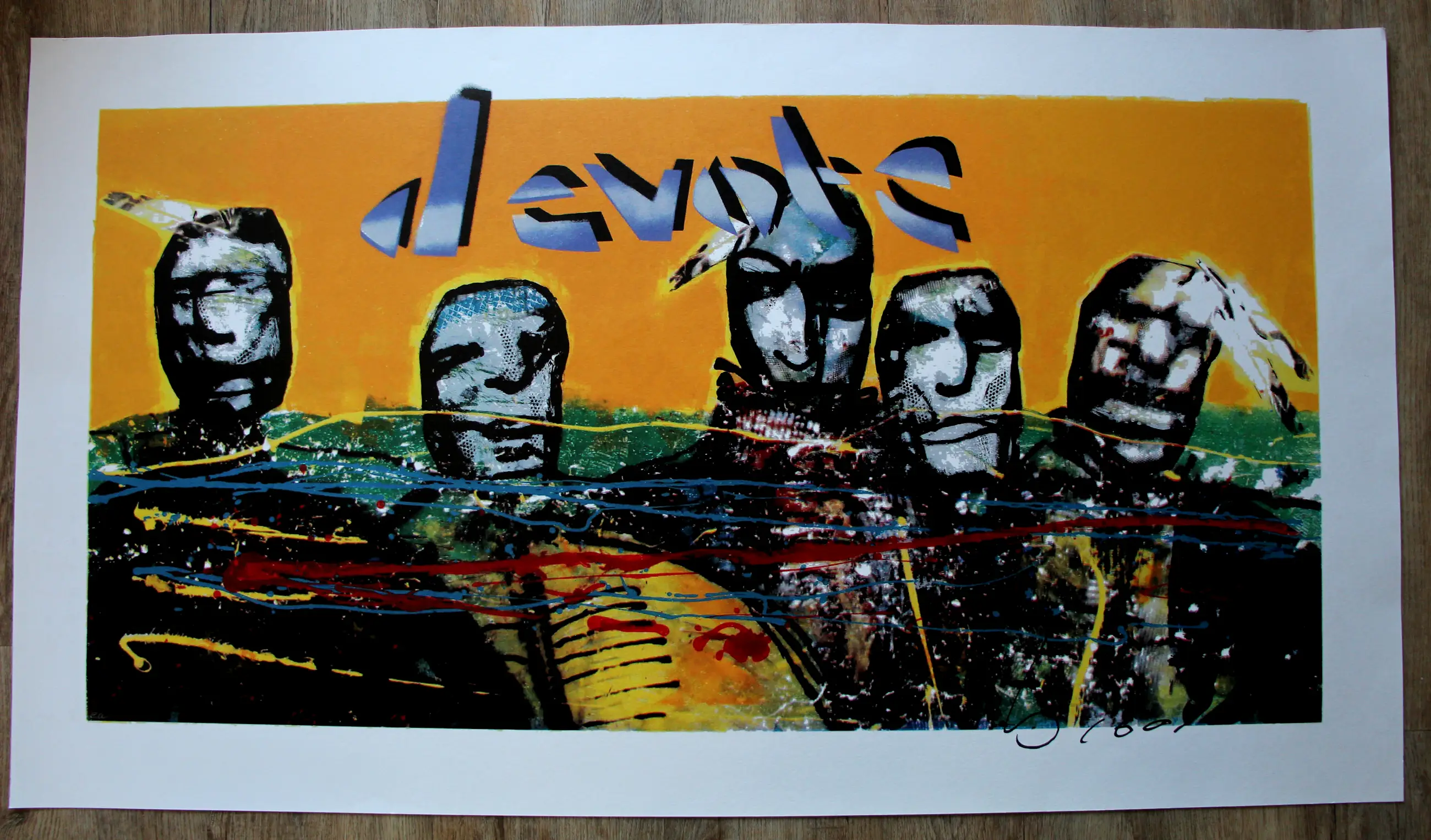 Dit werk is destijds gemaakt voor het gelijknamige IT-bedrijf "Devote" dat is opgegaan in Ordina. De zeefdruk met de tekst "Devote" erop werd uitgegeven in een oplage van 125 stuks + een aantal E.A. exemplaren. Er bestaan 5 werken zonder de tekst "Devote". Deze zeefdruk wordt ook wel "Five Indians" genoemd.