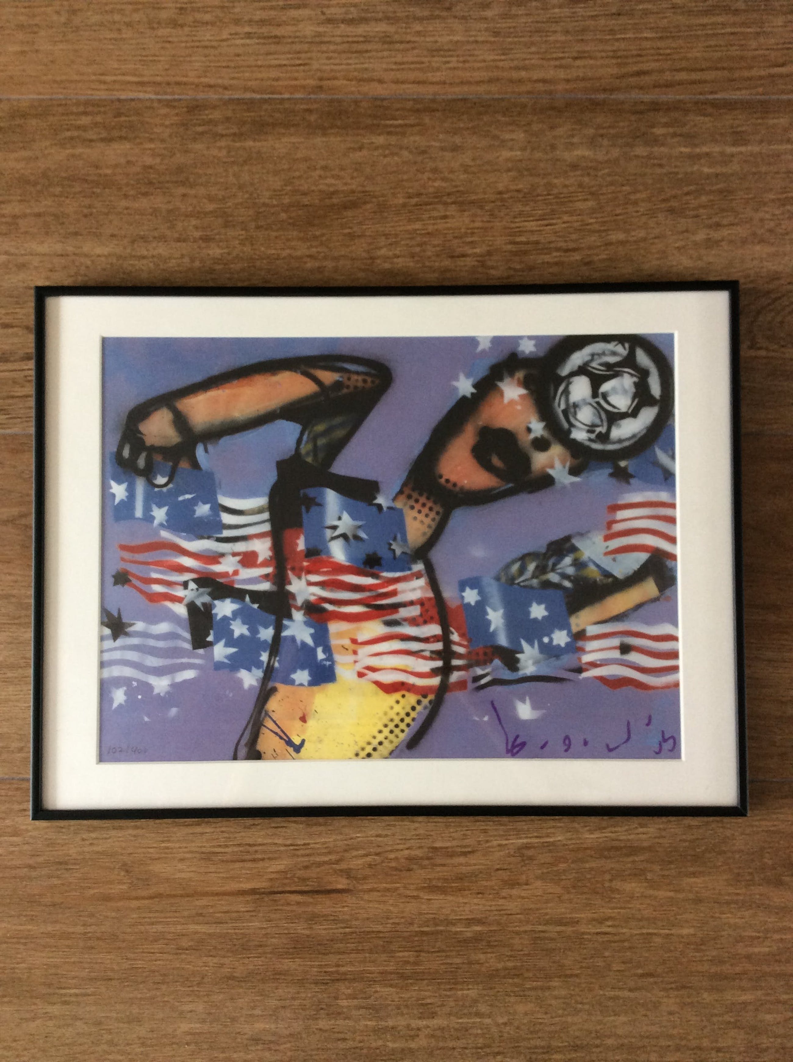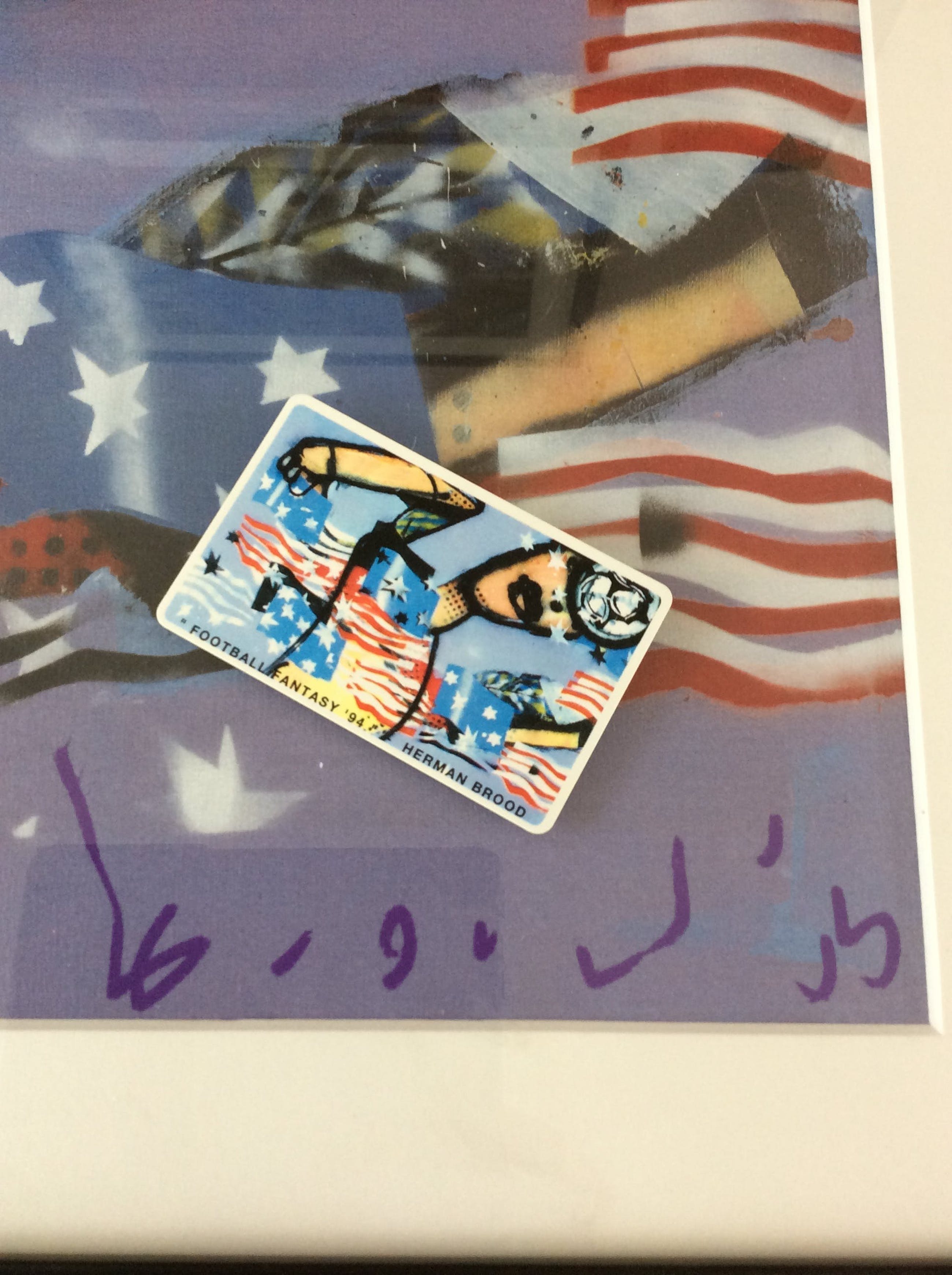 Football Fantasy heeft Herman Brood gemaakt voor het WK voetbal 1994 in de VS. Het formaat van het werk is 60 x 45 cm en is uiteraard gesigneerd met marker. Nummer 102/400 Leuk detail is dat het werk is voorzien van de bijbehorende telefoonkaart.