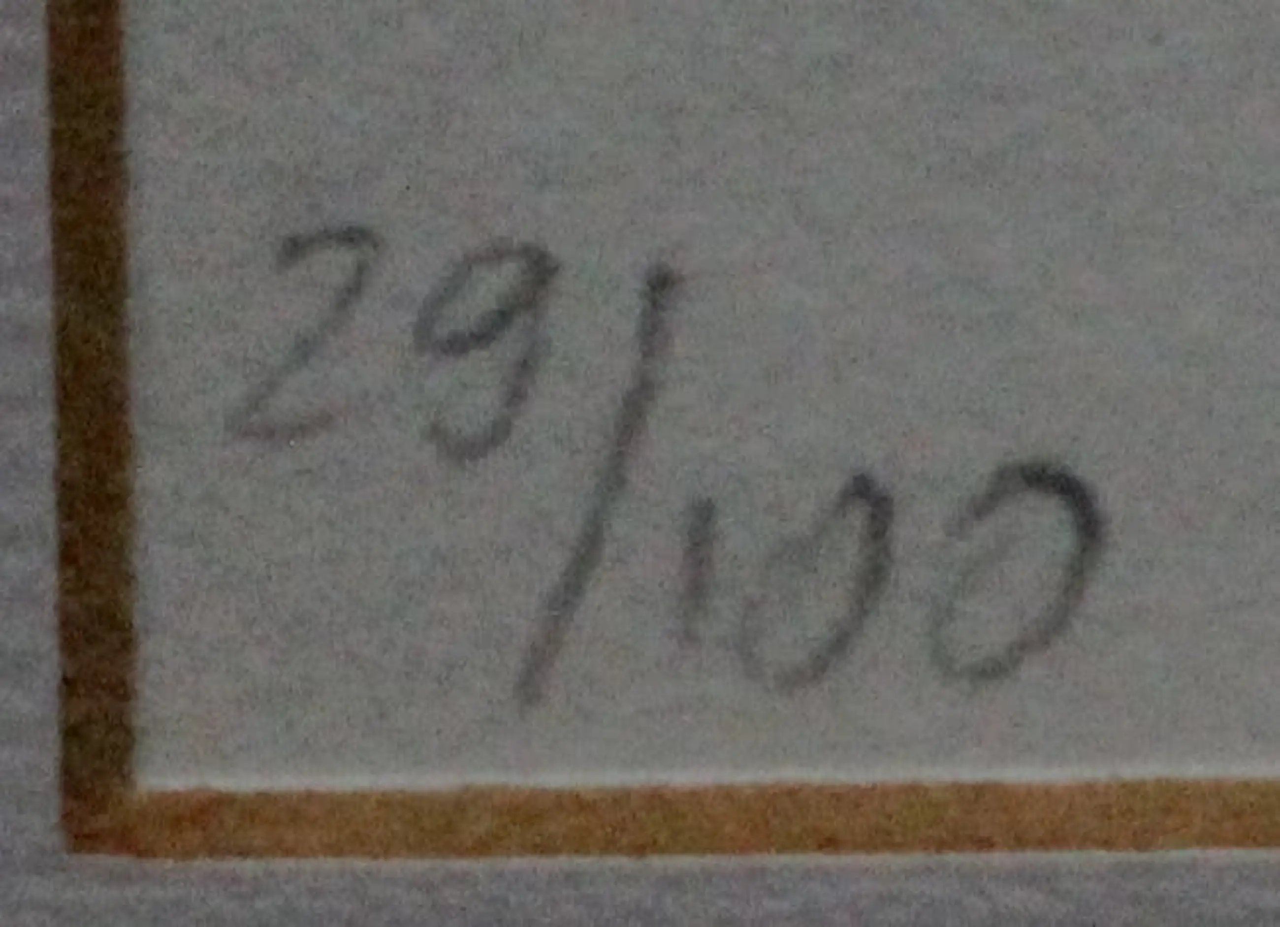 Passe-partout/lijsten: Beschadigingen aan lijsten worden niet beschreven. Indien een werk achter glas is ingelijst en het glas kapot is, zal dit wel vermeld worden. Bij foto's van ingelijste werken kan spiegeling zichtbaar zijn.