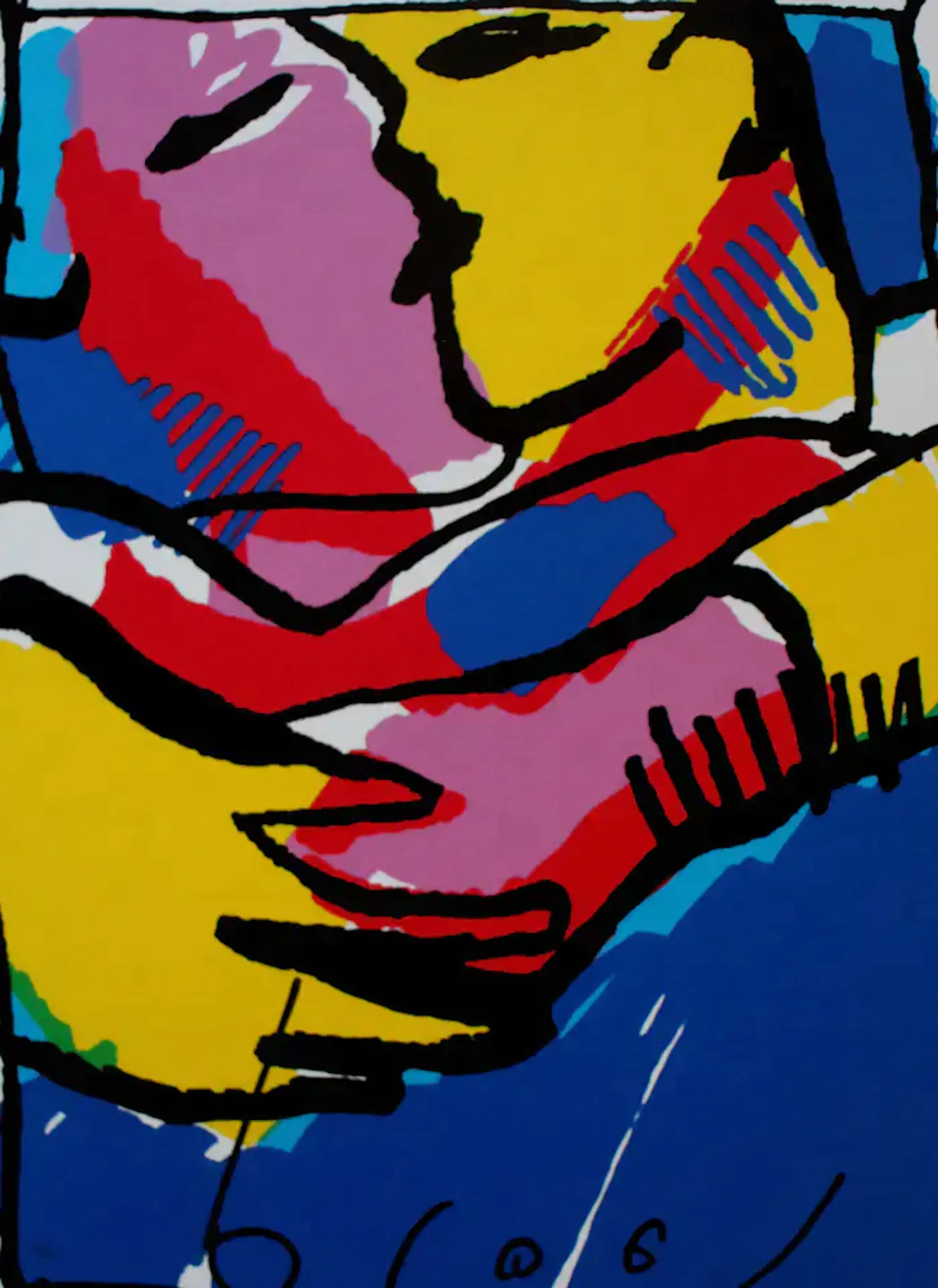 Zeefdruk van Herman Brood. Titel: Kook van jou. Oplage: E.A. Afmetingen blad: H60 x b50cm. Afmetingen voorstelling: H43 x b33cm. Het werk is onderaan gesigneerd door de kunstenaar. De authenticiteit van het aangeboden werk wordt volledig gegarandeerd. Een certificaat van echtheid wordt, op aanvraag, gemaild.