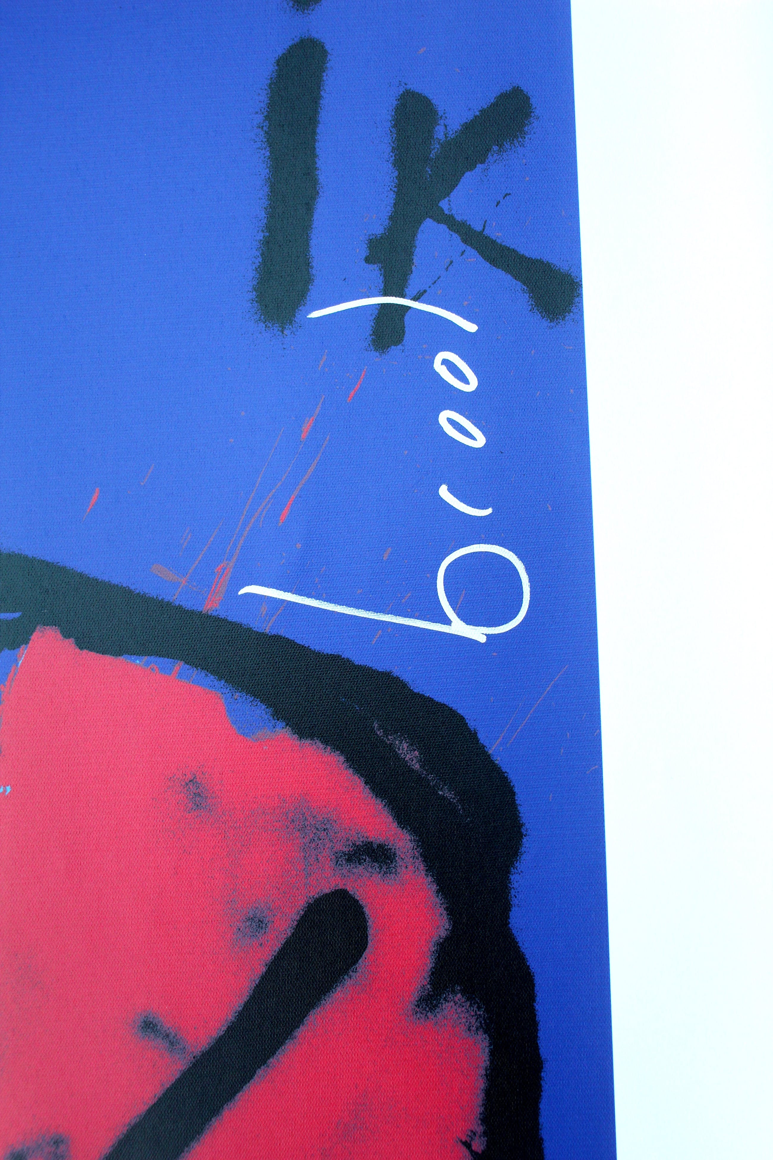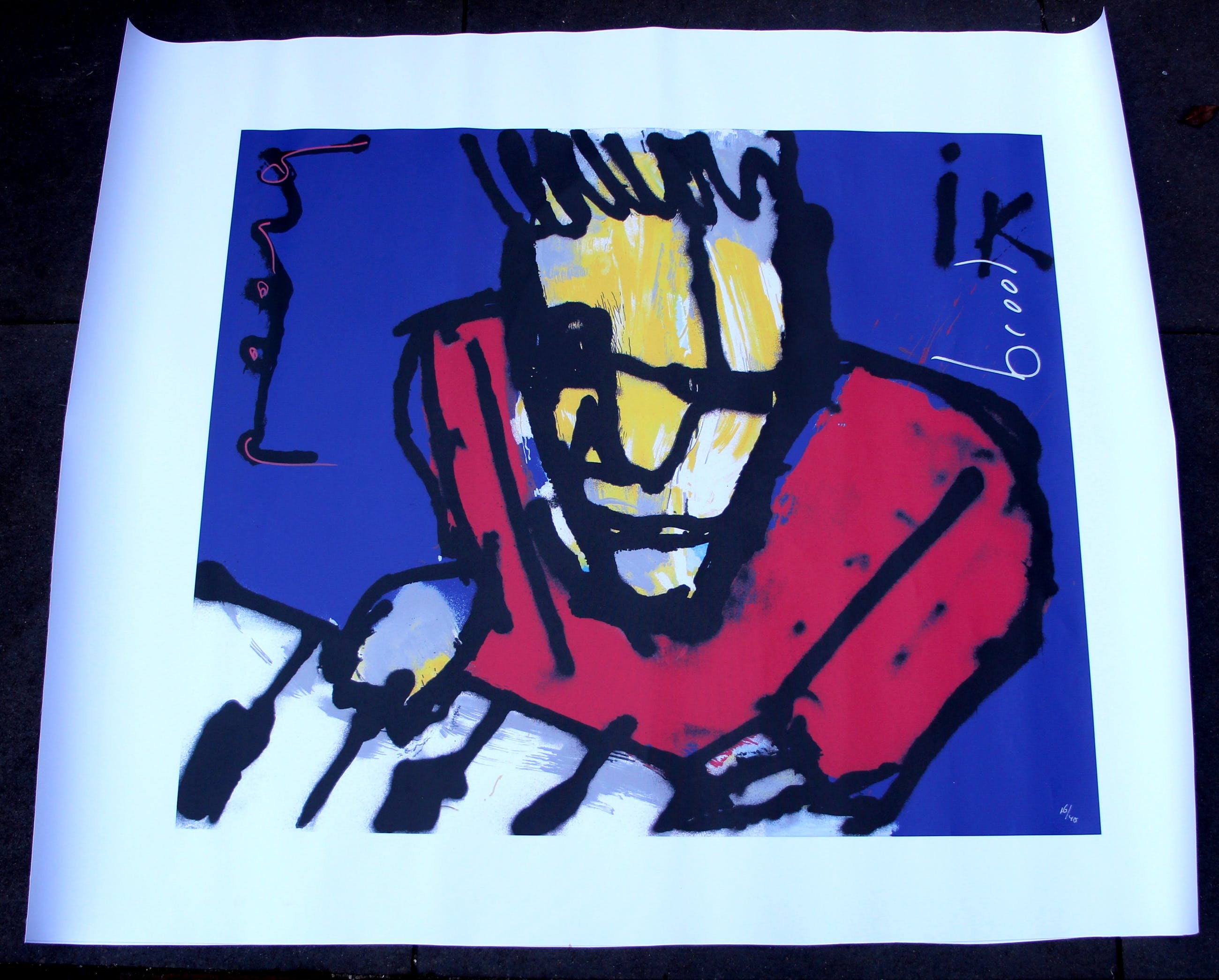 Prachtig zelfportret op linnen van Herman Brood. Titel: "Ik". Nummer: 16/40. Het werk is nooit ingelijst geweest. Het werk is aan de rechter zijkant gesigneerd, met zilveren marker, door de kunstenaar.