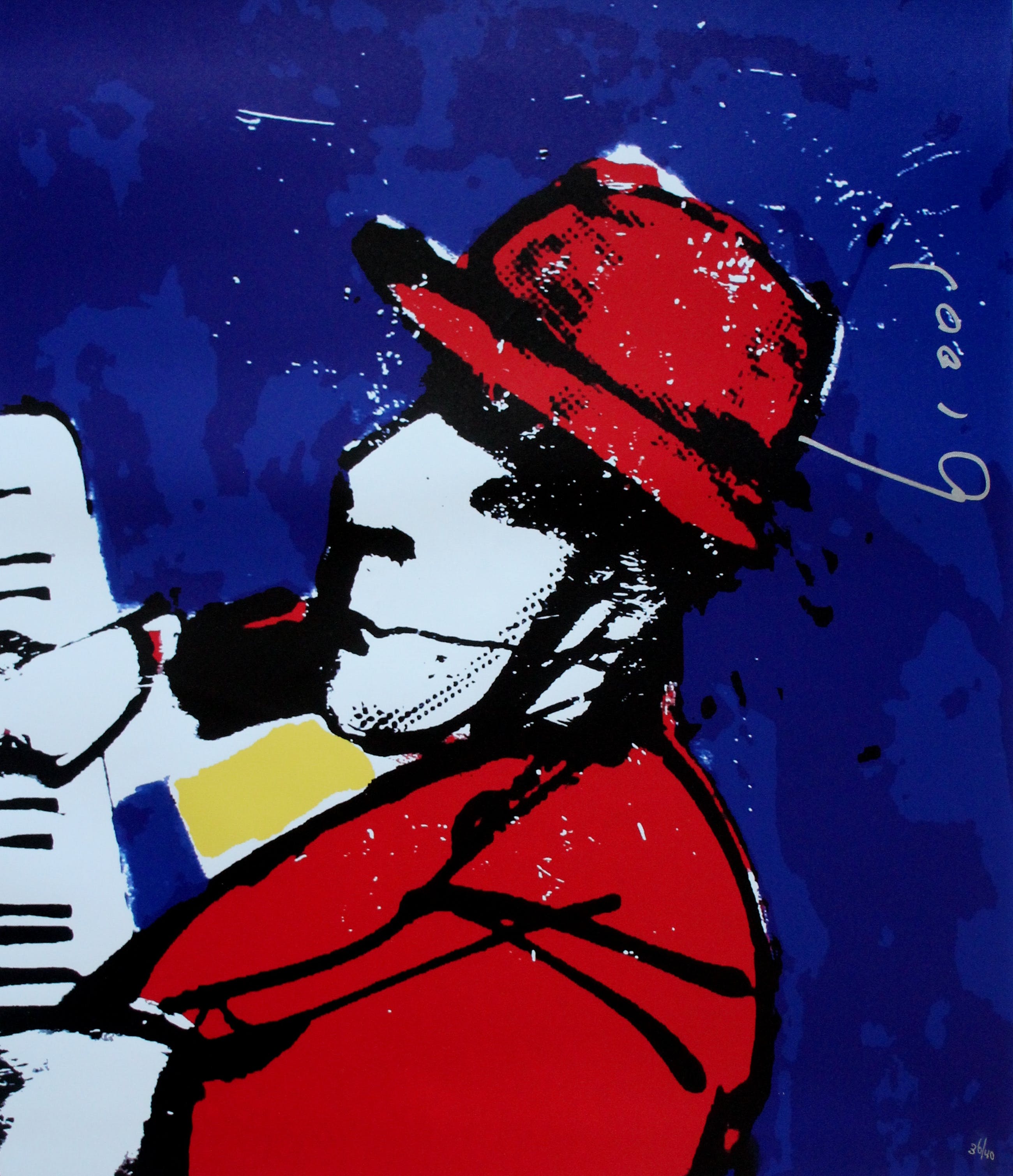 Zeefdruk op linnen van Herman Brood. Titel: "Ik". Nummer: 36/40.