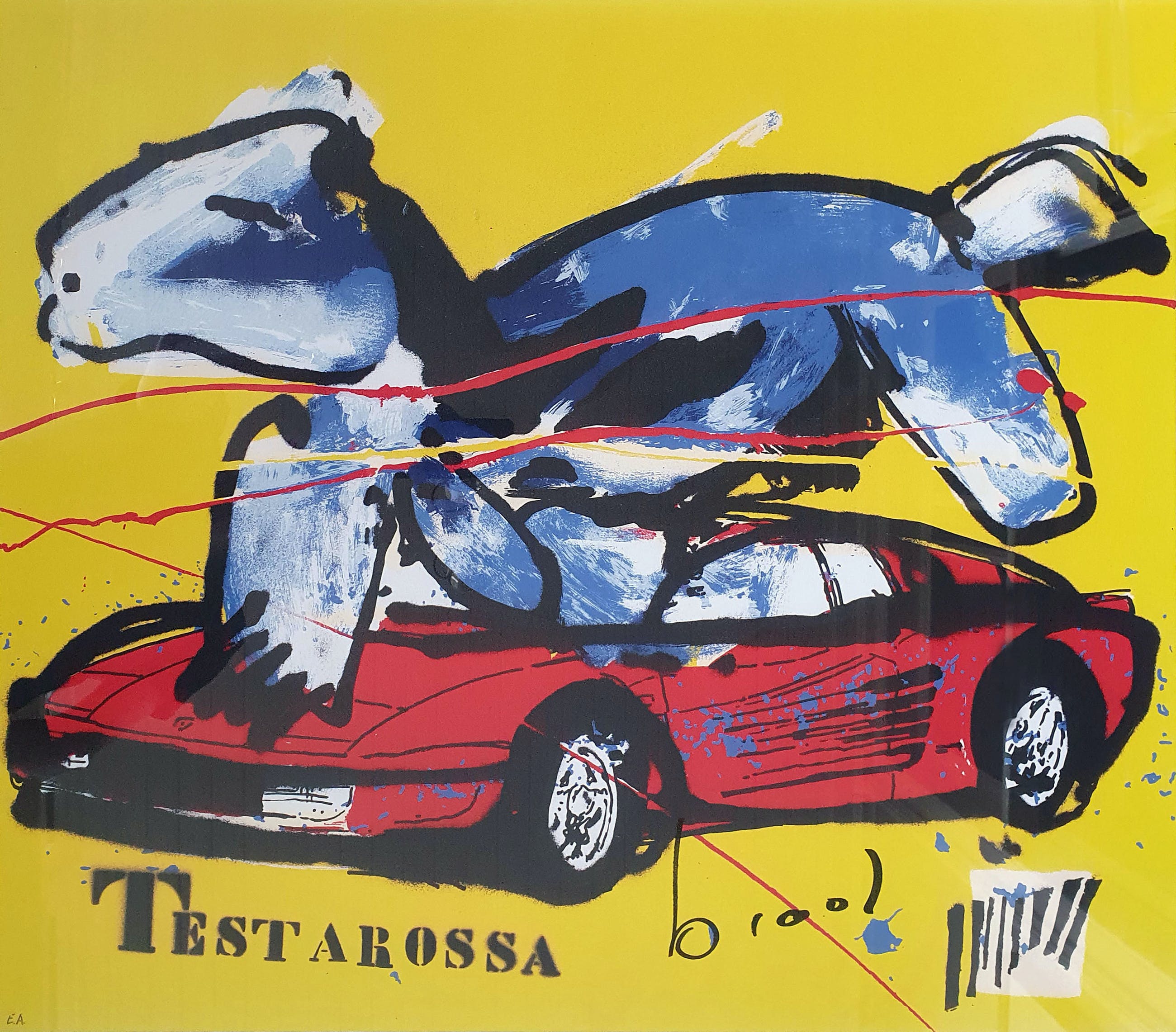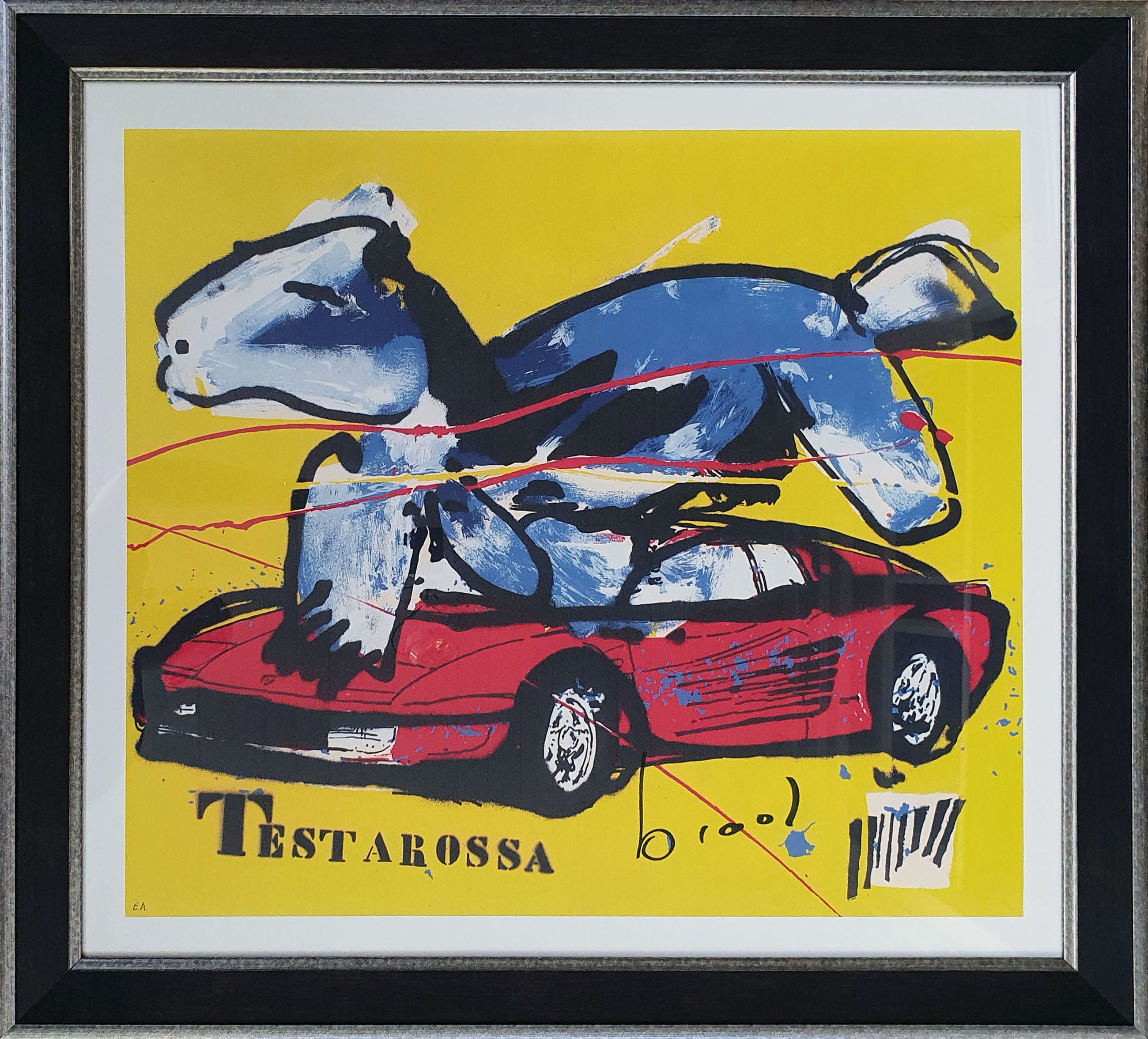 Zeefdruk van Herman Brood met de titel: 'Testarossa'. Het werk is rechtsonder met de hand gesigneerd door de kunstenaar.