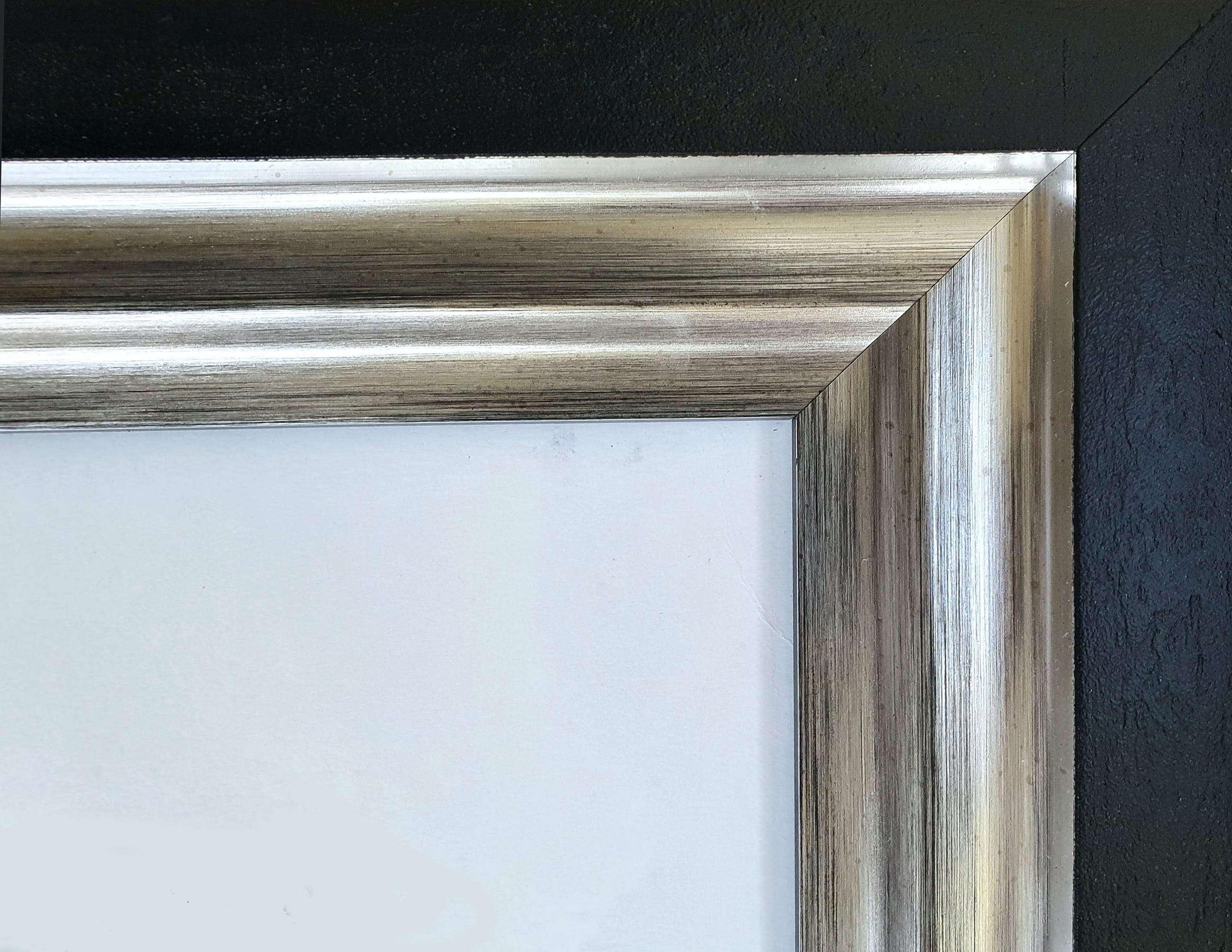 De zeefdruk is professioneel ingelijst in een luxe nieuwe zwarte lijst met zilveren rand inclusief een zwart passe-partout , Het werk wordt geleverd met een echtheidscertificaat.