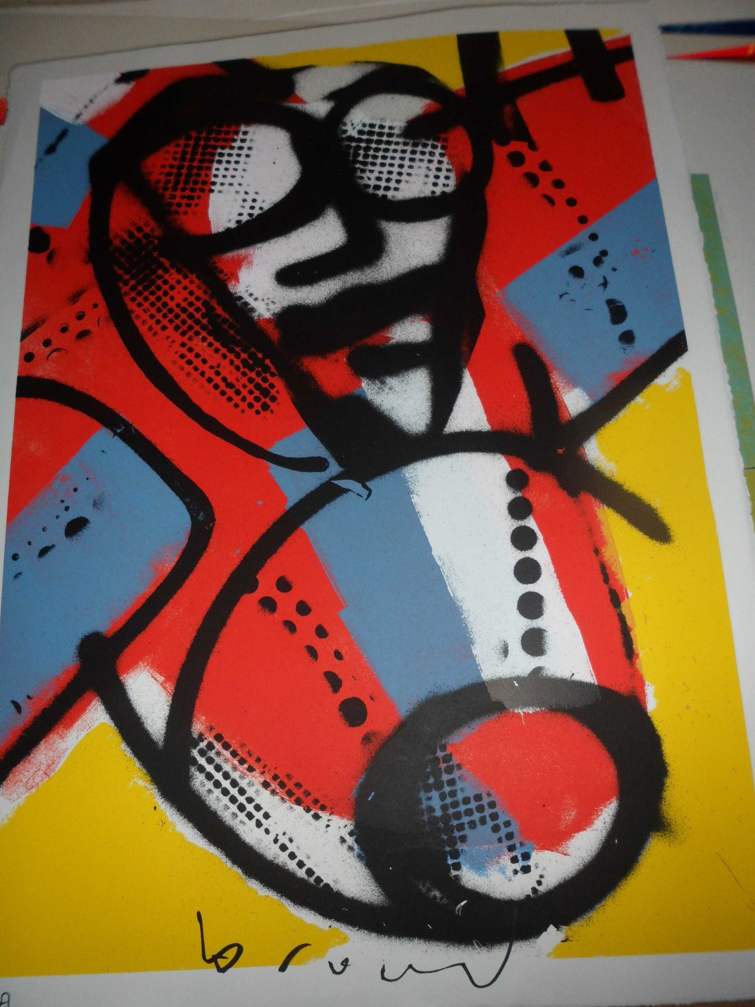 Vliegtuig is een met de hand gesigneerde zeefdruk van Herman Brood.