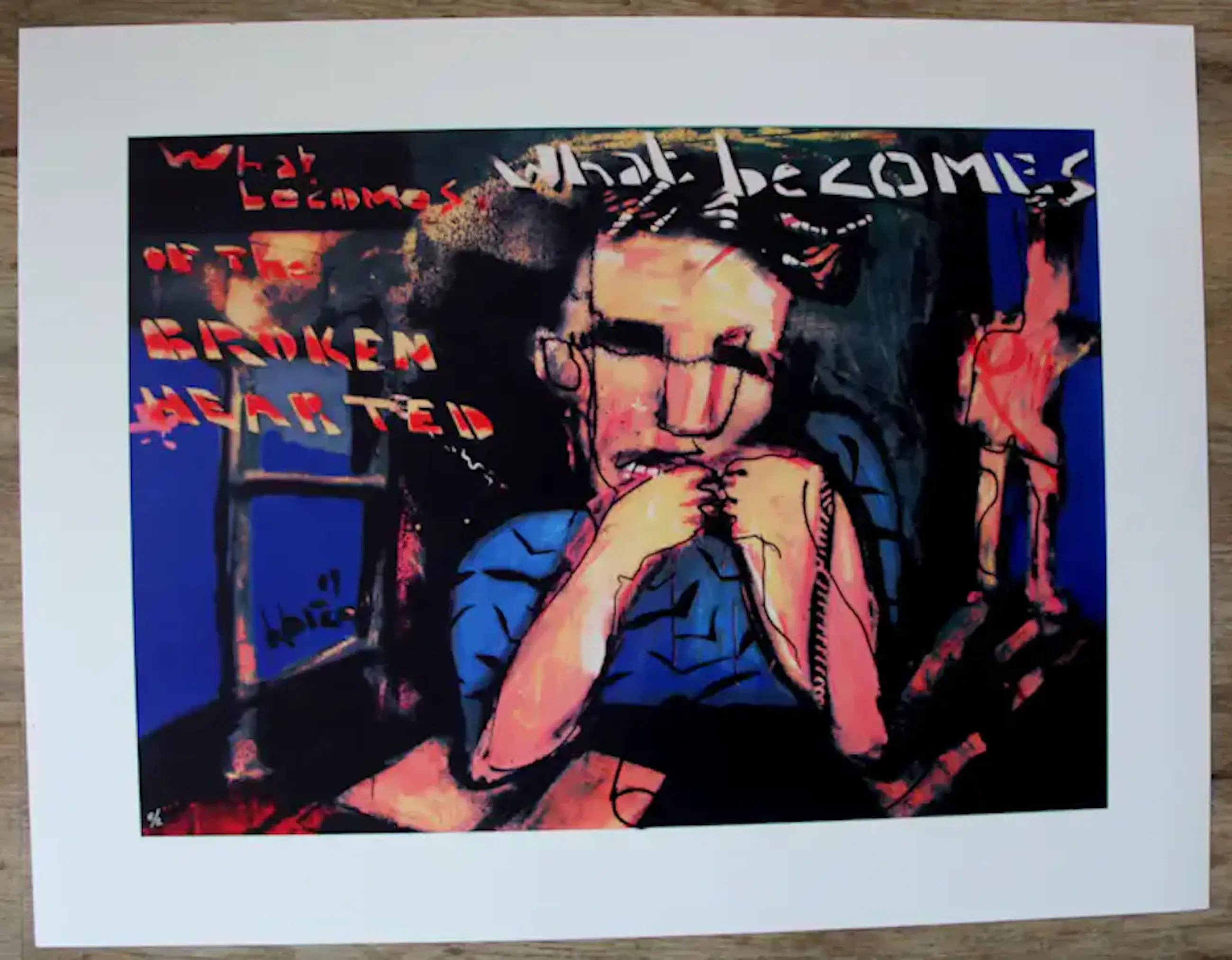 Zeefdruk van Herman Brood. Titel: What becomes of the broken hearted. Nummer: E.A. Afmetingen werk: H66 x b86cm, afmetingen voorstelling: H50 x b70cm. Het werk is , onderaan, gesigneerd door de kunstenaar. De authenticiteit van het aangeboden werk wordt volledig gegarandeerd. Een certificaat van, Kiewit Kunst, wordt meegestuurd.