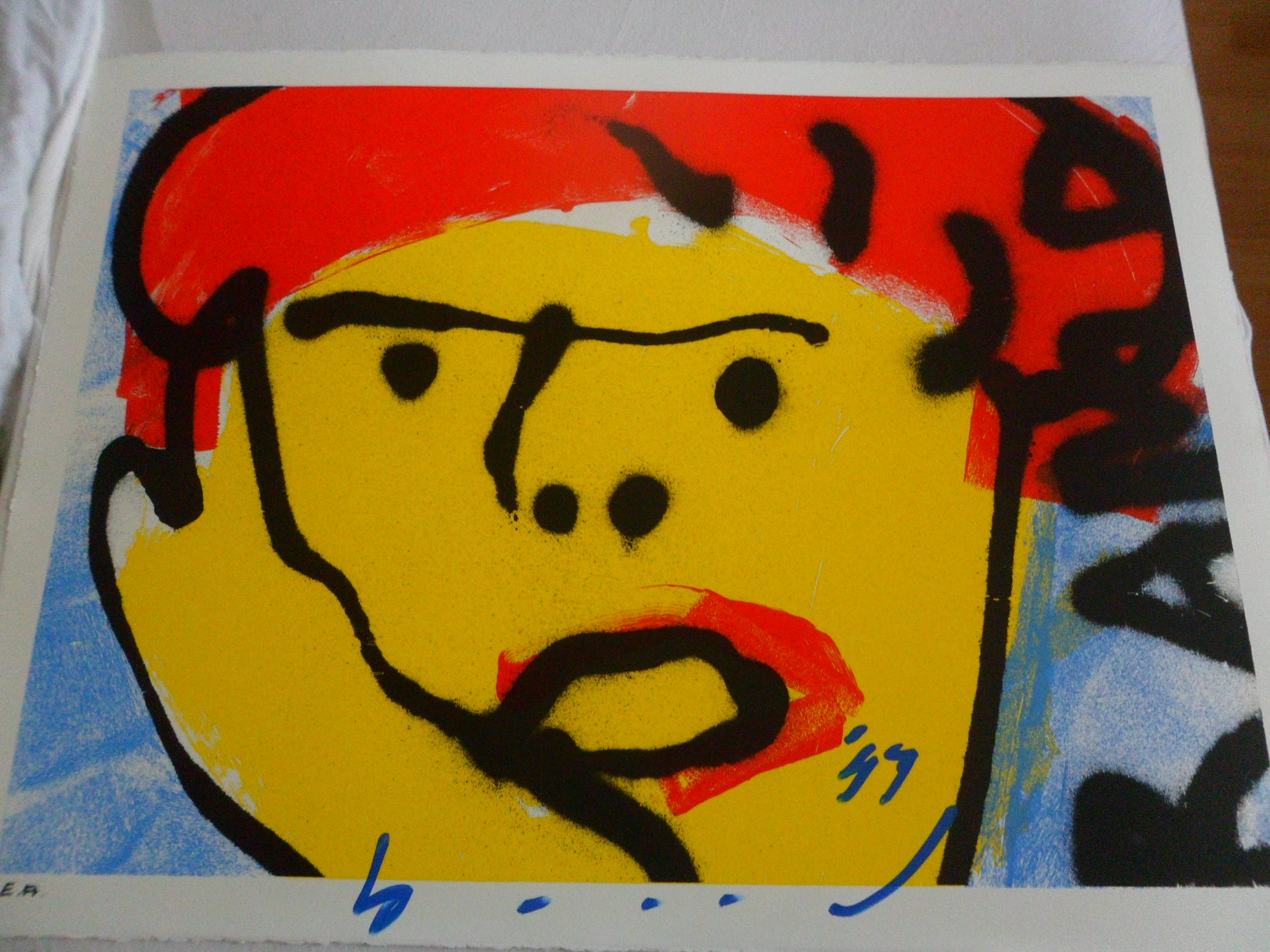 Een typische Herman Brood voorstelling met de voor hem zo kenmerkende kleurstelling van de primaire kleuren.