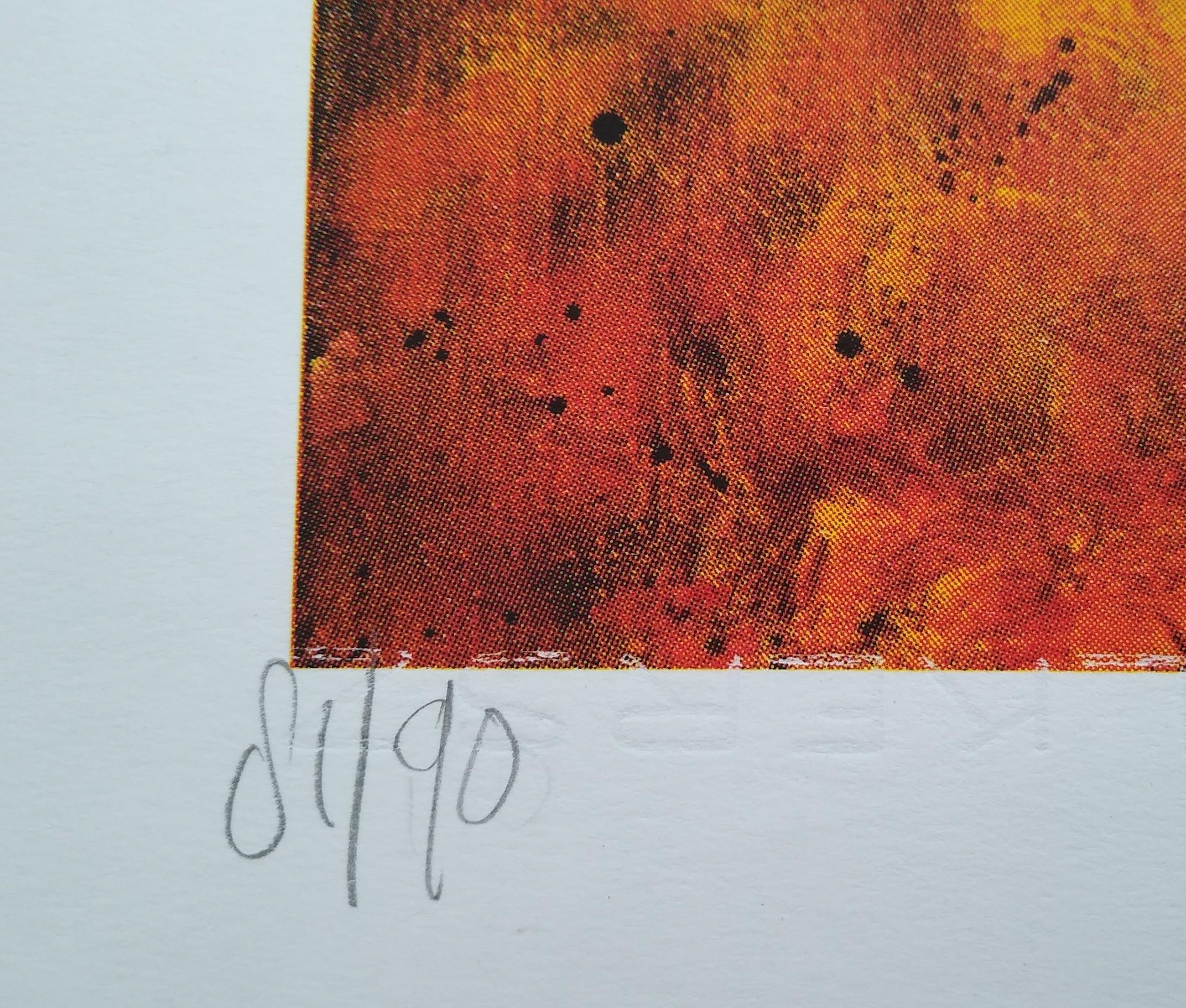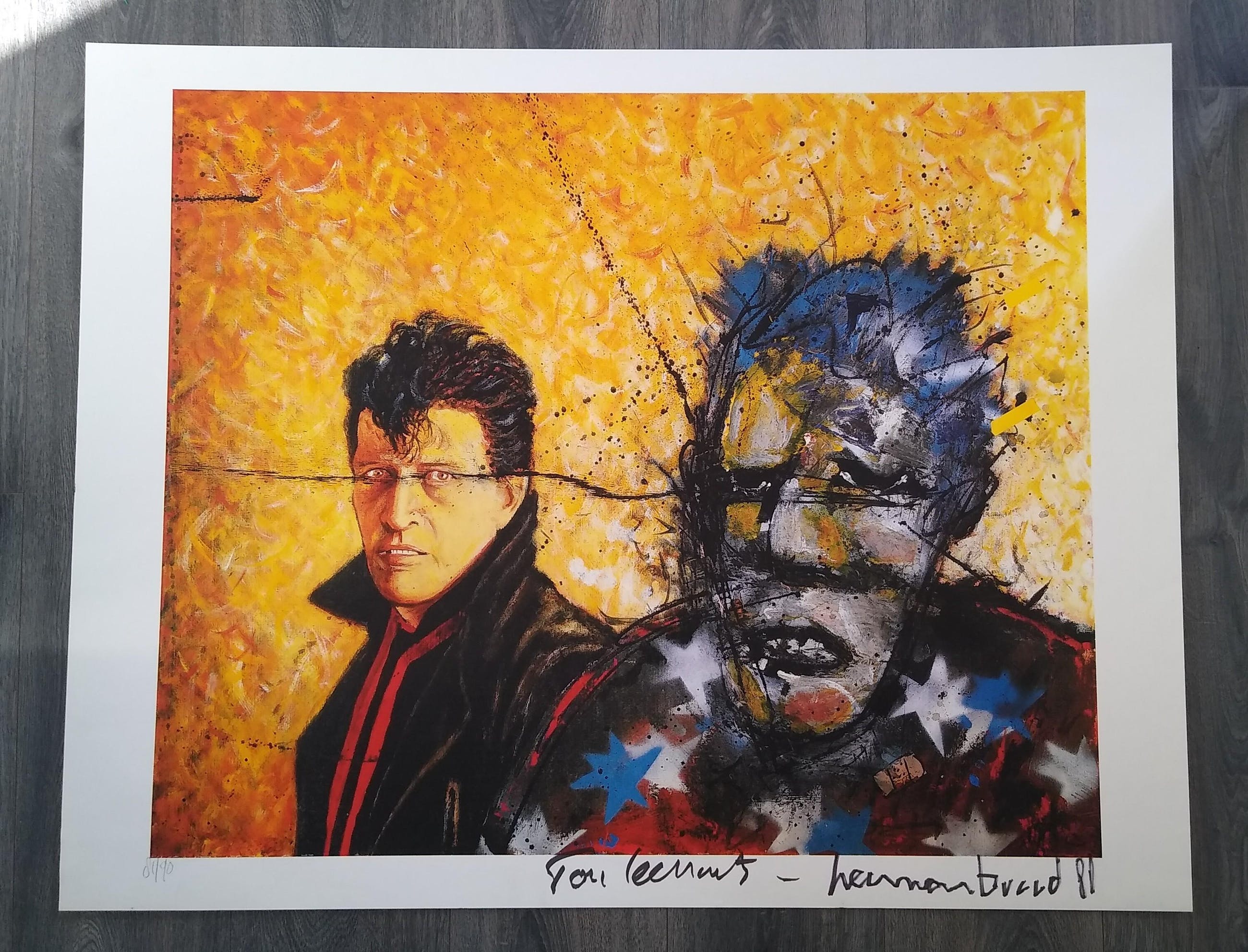 Uniek, door beide kunstenaars persoonlijk ondertekend werk op groot formaat van 100 x 78 cm.