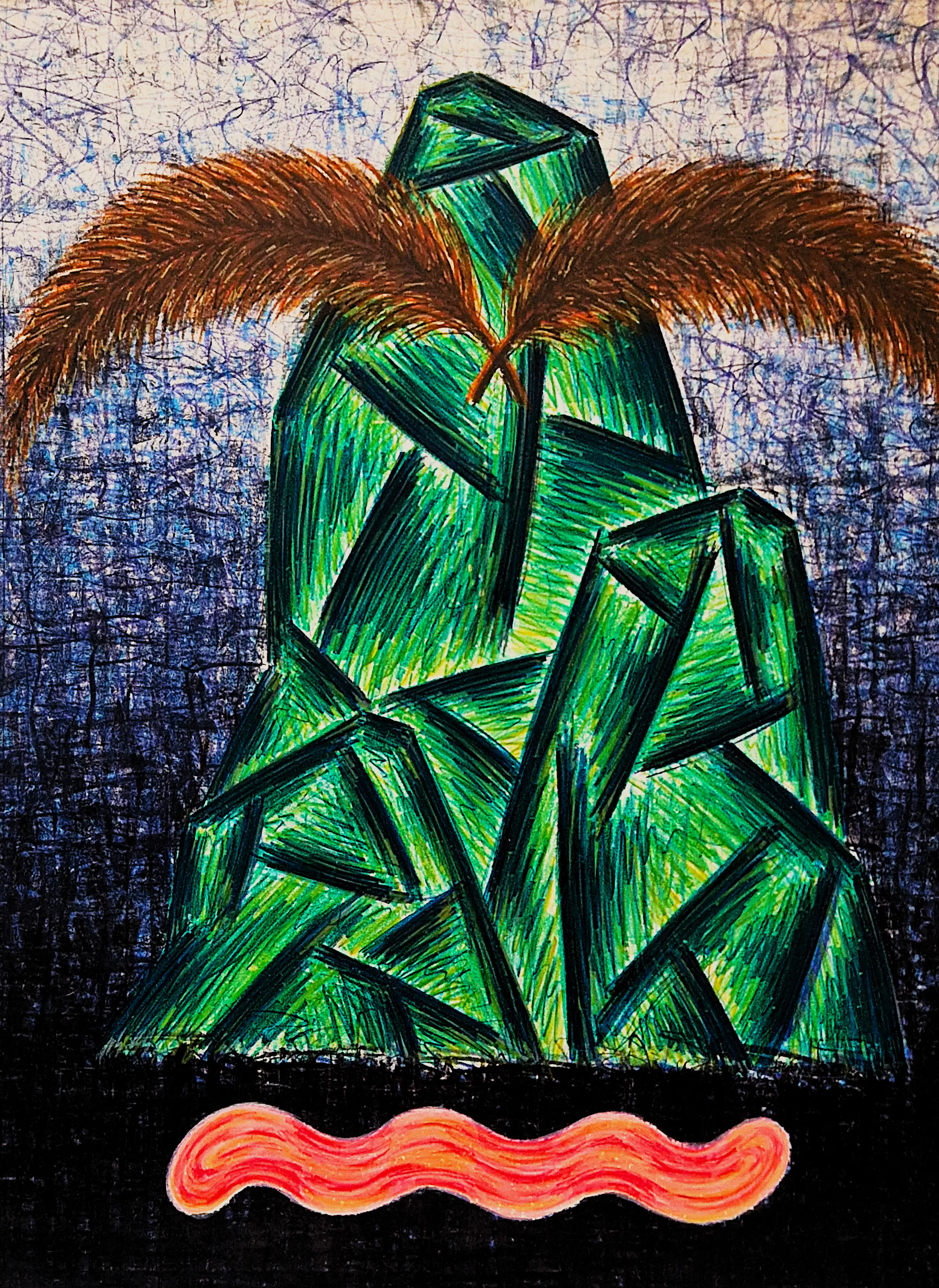 Geerdink was in eerste plaats graficus, maar ging later ook van andere technieken gebruik maken als collage, de lijntekening, borduurwerk, schilderen of combinaties hiervan. De hout- en linodruk zijn echter nooit helemaal verdwenen. Doorgaans werkte hij op groot formaat. De opbouw is complex maar ook harmonieus door de ordening en herhaling van patronen of elementen die hij gebruikte. In een enkel werk wordt het decoratieve verstoord door een motief dat hij op de voorgrond plaatste. Als basis gebruikte de kunstenaar in veel gevallen een collage van foto’s uit kranten, tijdschriften of folders. Deze collages werden eerst bewerkt. Eroverheen werden geometrische rasters of patronen aangebracht. Soms zet hij er nog een derde laag overheen. Zoals ook in de Popart probeerde Geerdink het banale te verheffen tot iets verhevens. Uiteindelijk ontstaat er geen alledaags beeld maar een mysterieus werk met daarbinnen veel symboliek. Hij laat het gebeuren, maar net voordat de voorstelling een jungle van betekenissen wordt, grijpt hij in en beheerst hij de situatie. Het resultaat is een kunstwerk rijk van vorm en kleur.