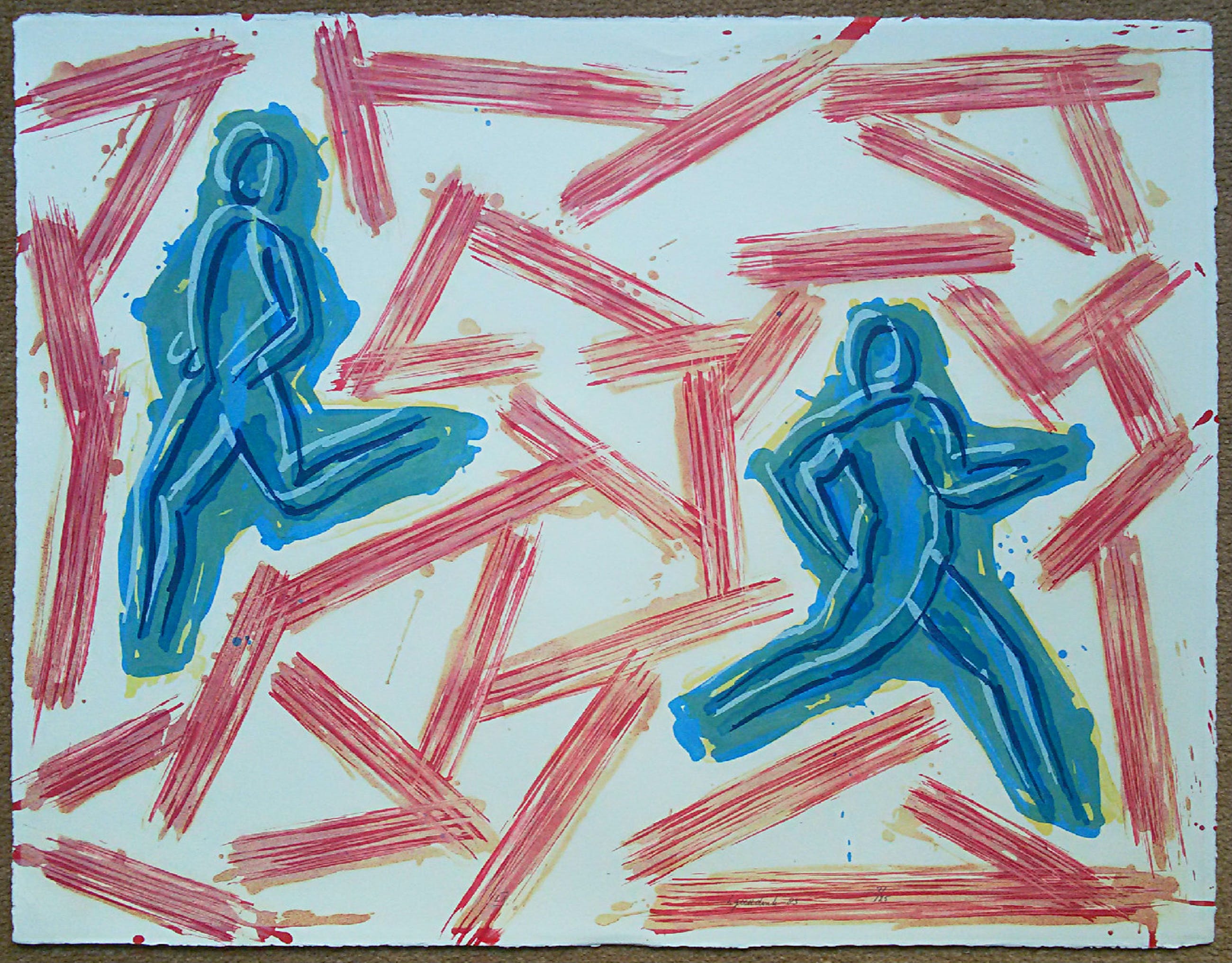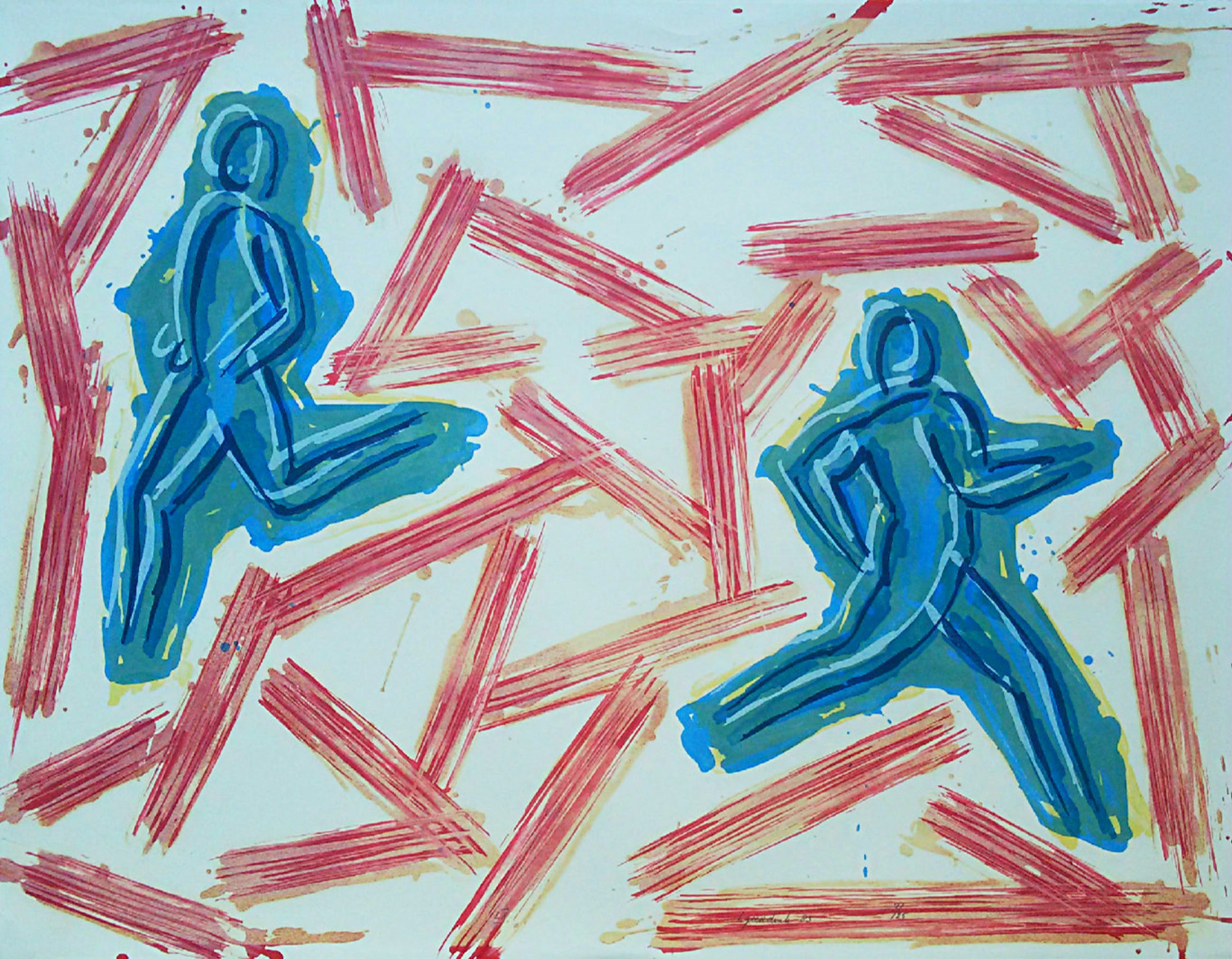Karakteristiek werk van Herman Geerdink. Litho op geschept papier, met potlood gesigneerd, gedateerd (’83) en genummerd (3/25). Afkomstig uit de kunstcollectie van ABNAMRO; in zeer goede conditie.