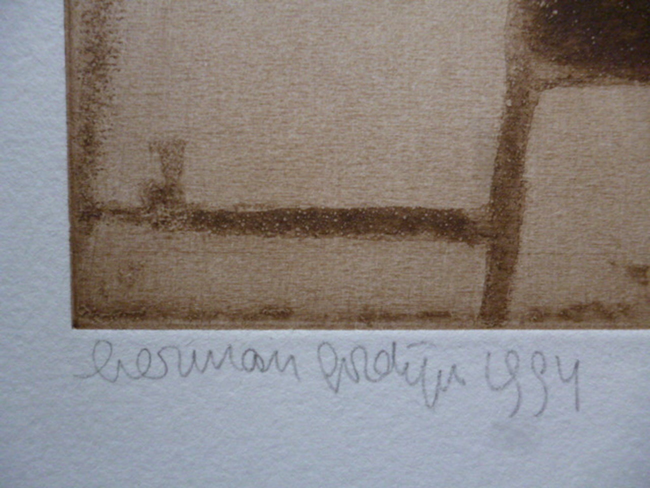 Ets met aquatint uit 1994. Potlood gesigneerd en gedateerd linksonder.