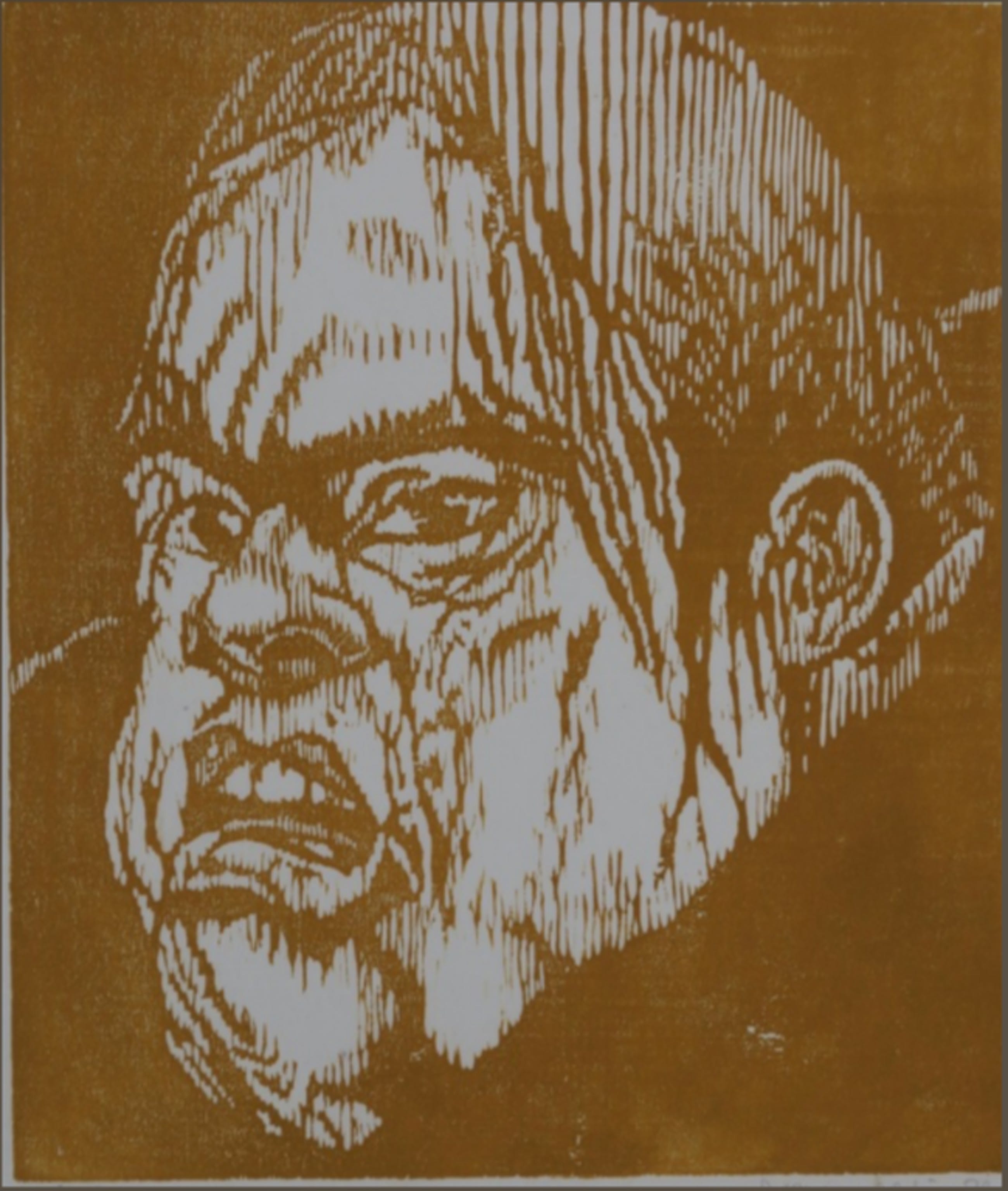 Materiaal: Lino op Japans papier, bevestigd op onderblad