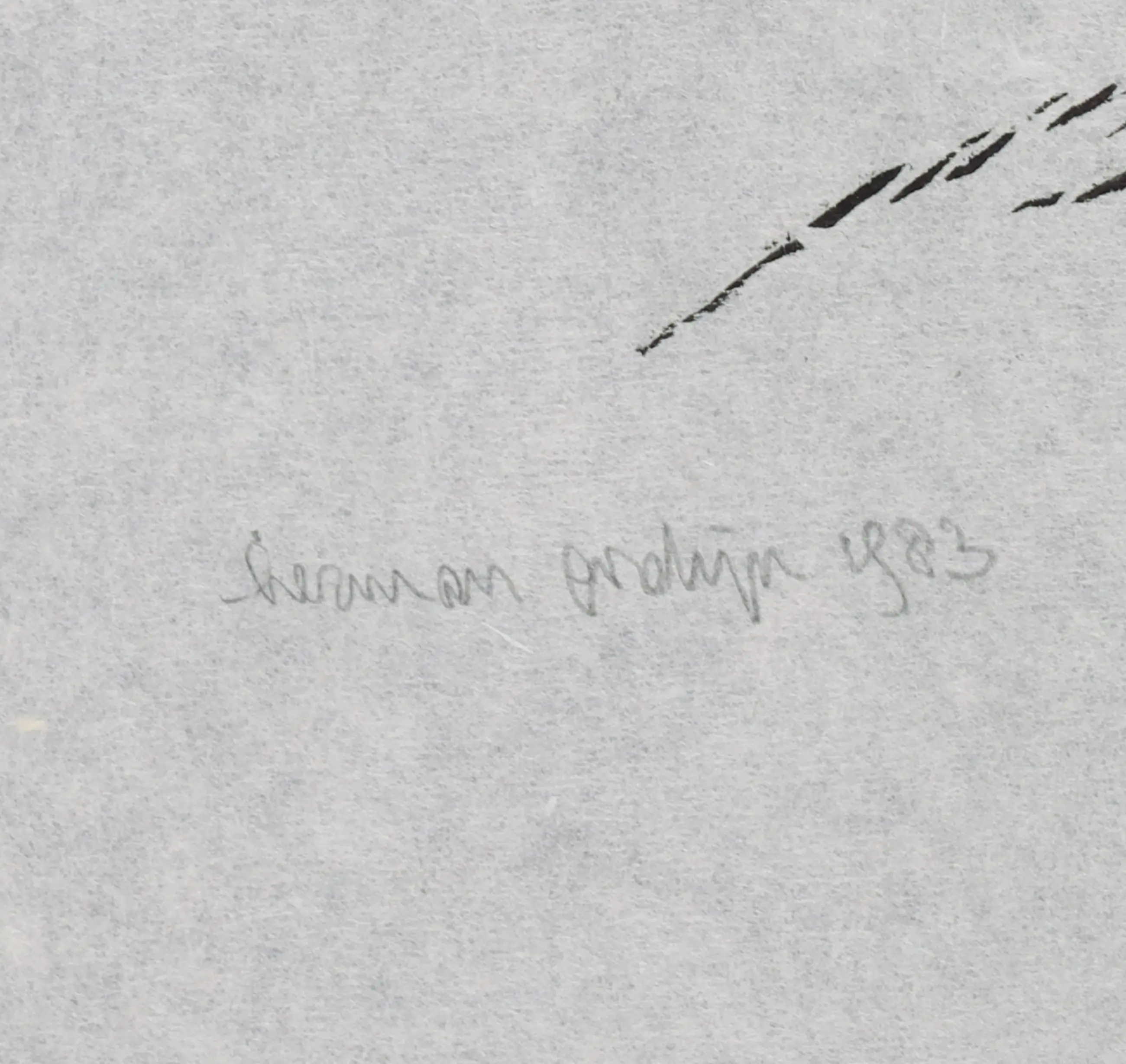 Het werk is in goede staat, echter zijn er wel een aantal vouwlijnen zichtbaar in het papier. Zie hiervoor de detailfoto's. Daarnaast een kleine beschadiging aan de rand van het papier in de rechter bovenhoek. | |||||||||||