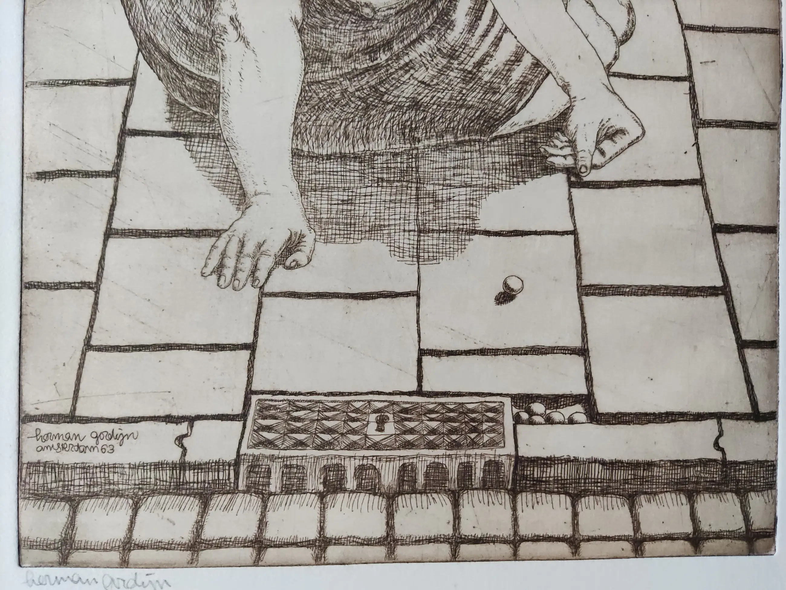 Potlood gesigneerd linksonder. In de plaat gesigneerd en gedateerd linksonder. Beeldmaat 30x23 cm. Bladmaat 47x38,5 cm. Losbladig. Herman Gordijn werd geboren te Den Haag op 16 mei 1932 en overleed te Terschuur op 25 mei 2017. Opleiding aan de Koninklijke Academie voor Beeldende Kunst te Den Haag en de Vrije Academie te Den Haag (1949-1954). Aquarellist, etser, schilder, tekenaar en van 1969 tot 1987 docent aan de Gerrit Rietveld Academie te Amsterdam. Lid van de Haagse Kunstkring en de BBK. Sacha Tanja penning in 2008.