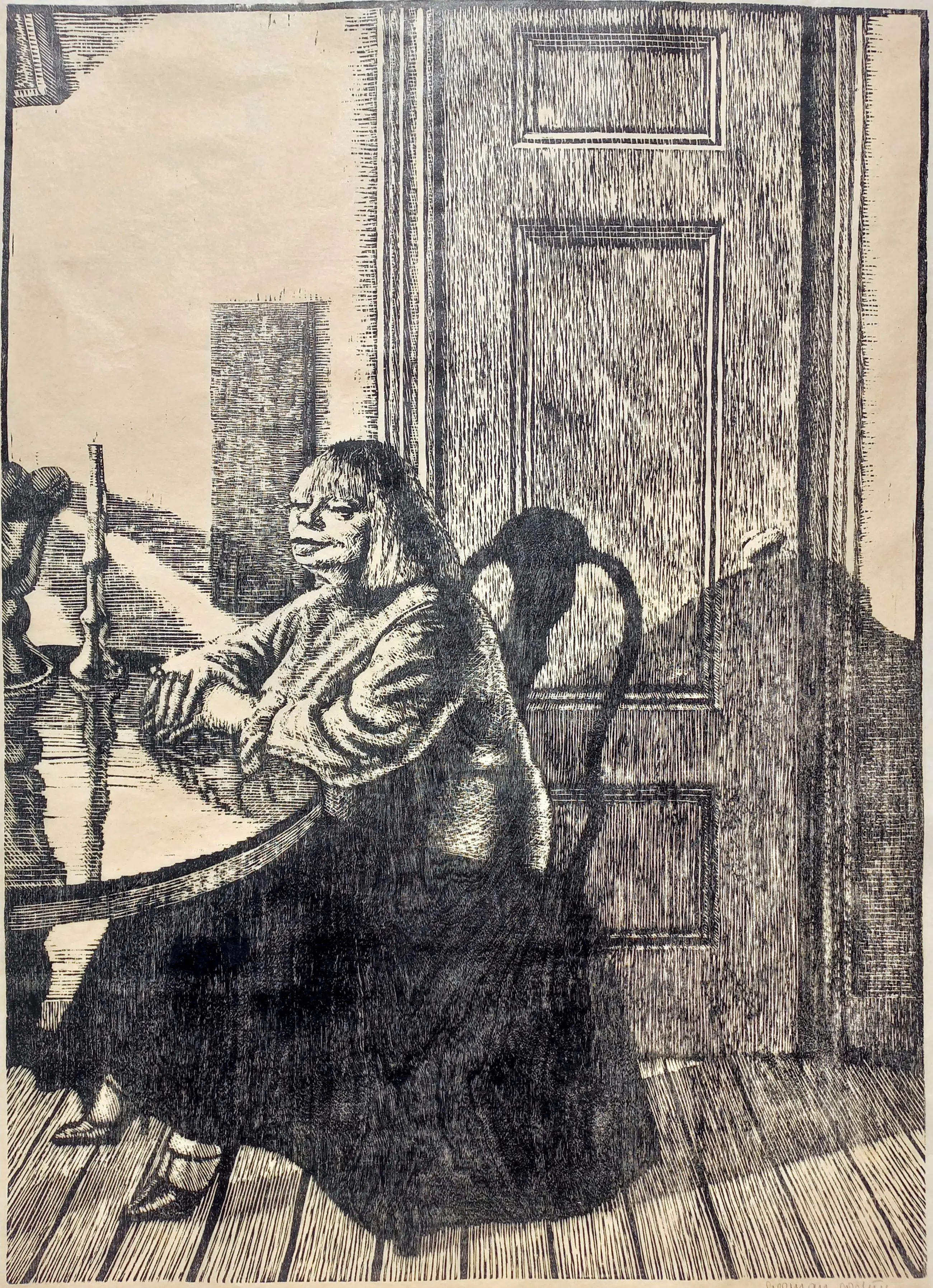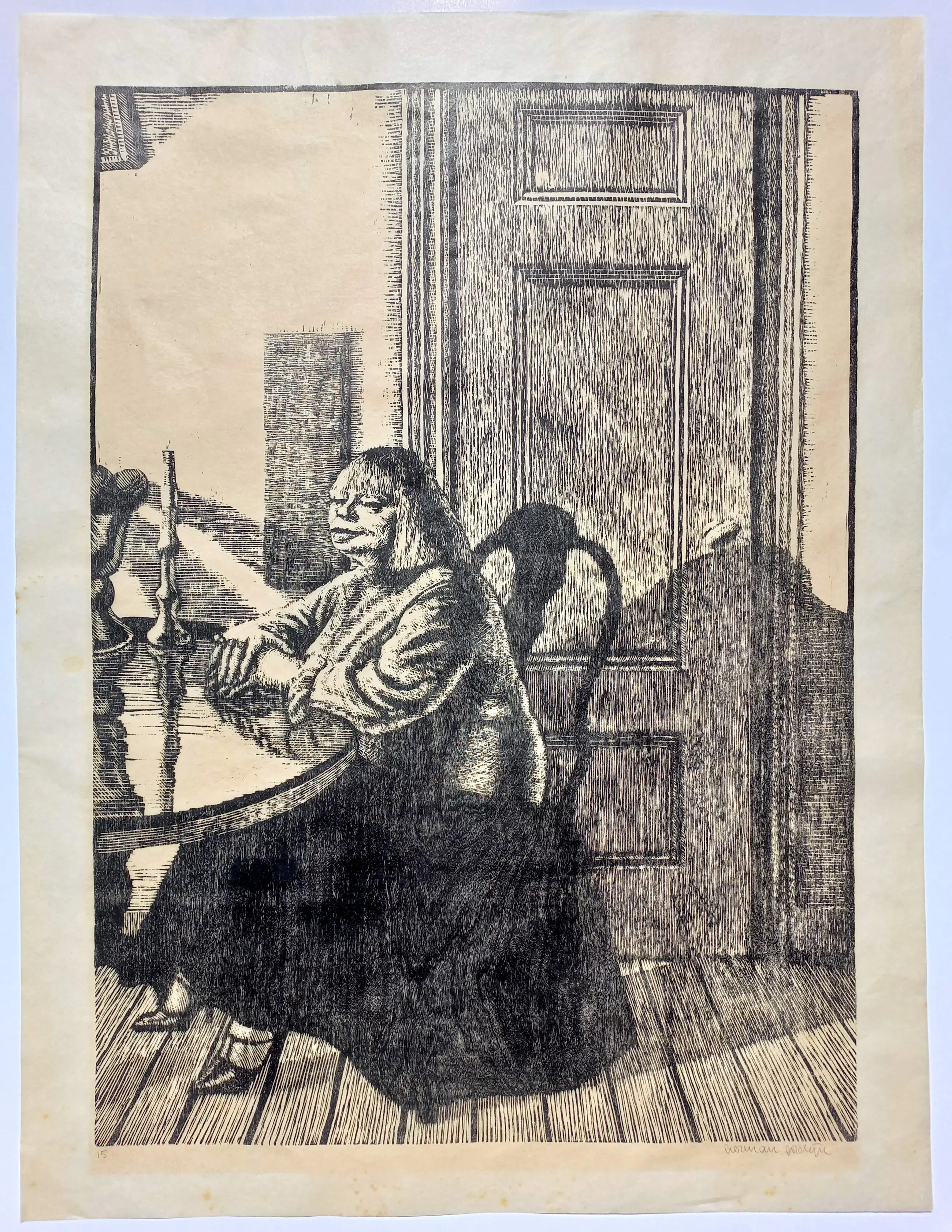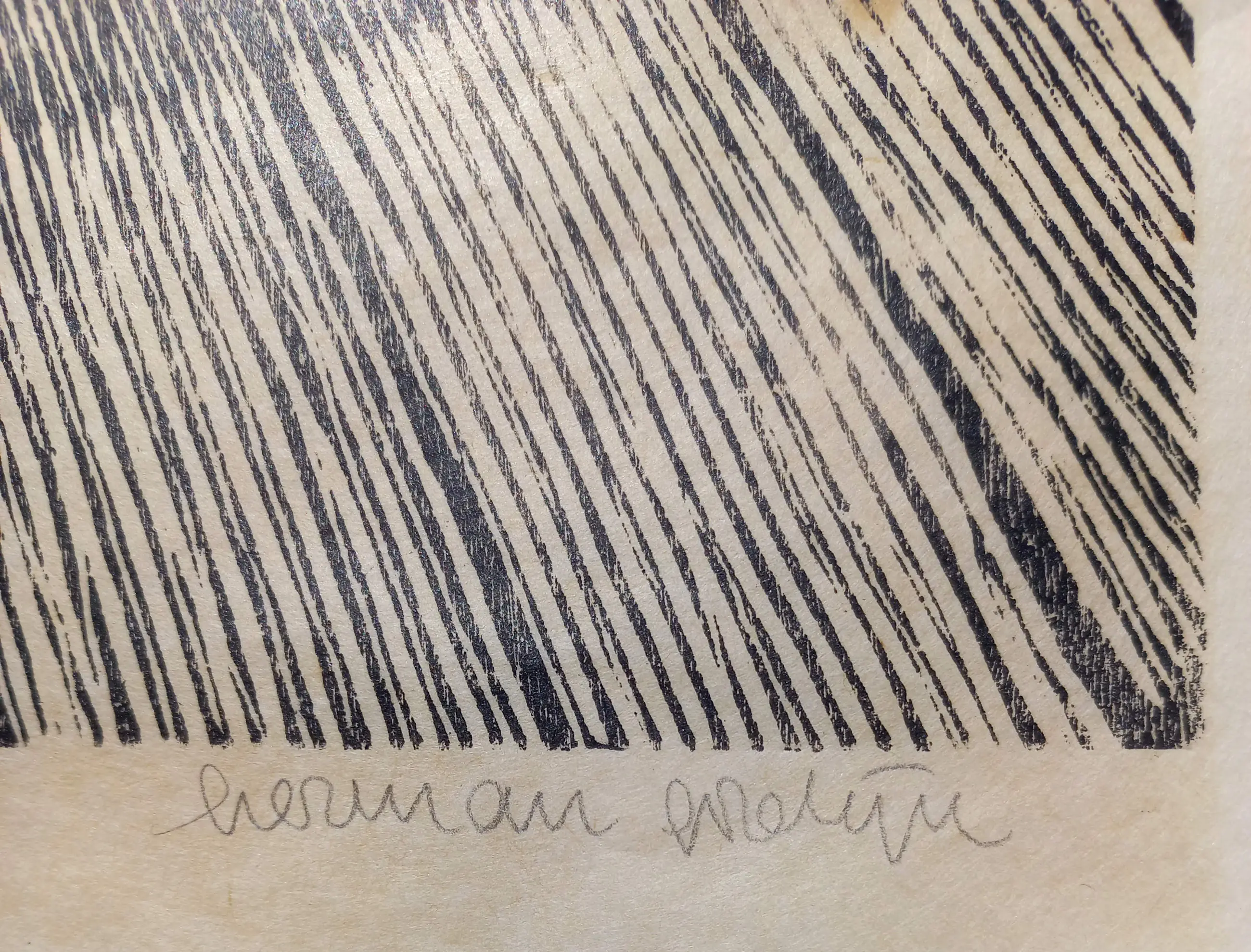 Grote, karakteristieke houtsnede uit 1984 van Herman Gordijn. Houtsnede op japans papier, met potlood gesigneerd en genummerd (15). In redelijk goede conditie.