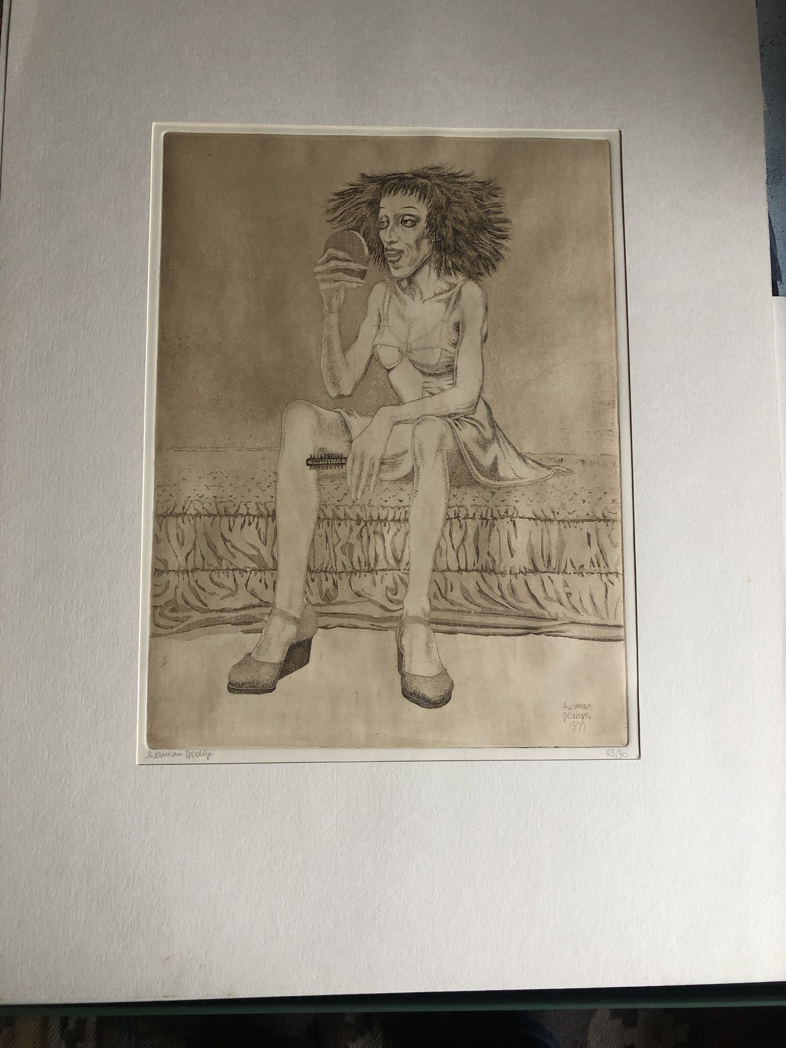 Geconserveerd in zuurvrije grafiekmap, heeft ook jaren netjes ingelijst gezeten.