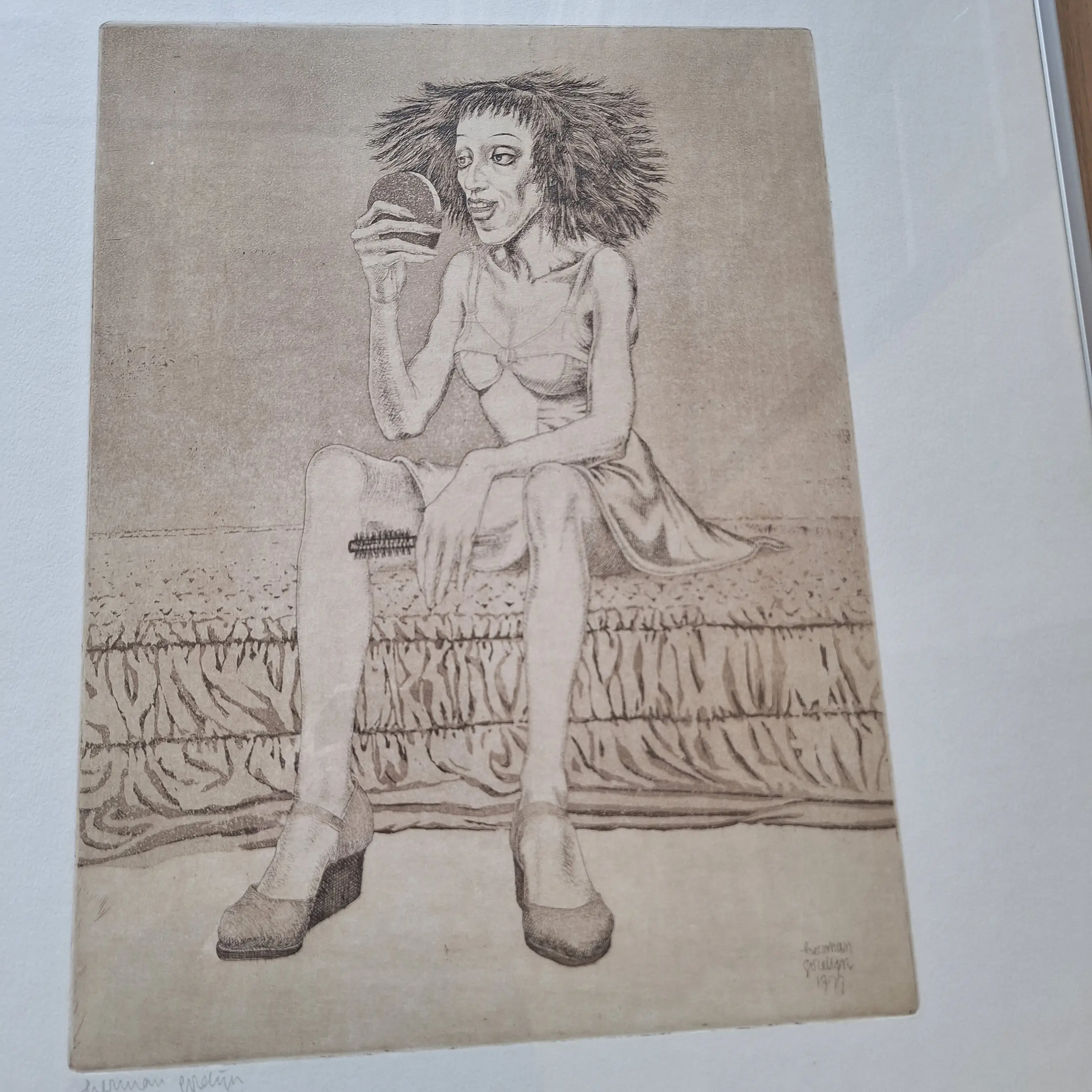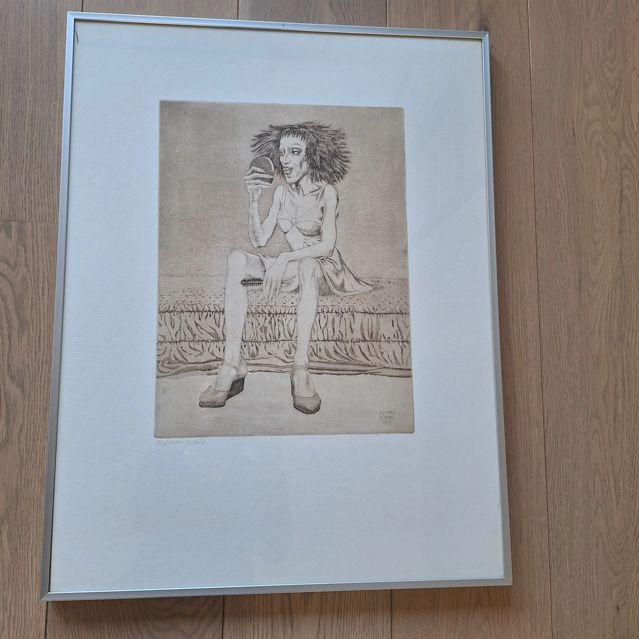 Ets is in zeer goede staat, lijst ook. Kleine beschadiging links boven in passe partout