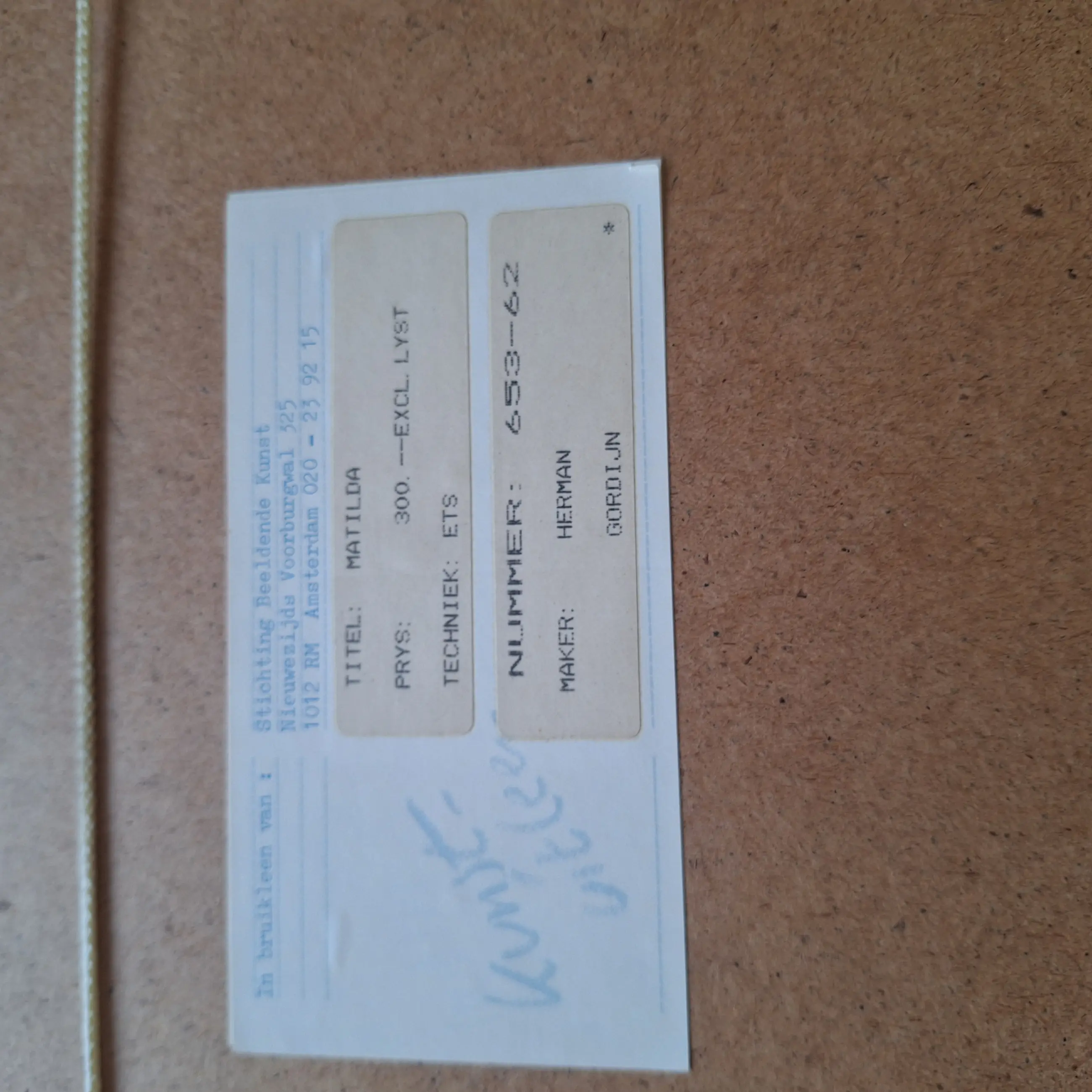 Ben u niet in staat om een werk zelf af te halen, dan kunt u een koeriersdienst inschakelen om het werk te laten afhalen. Klik hier voor meer informatie over hoe dit werkt en bekijk de tarieven.