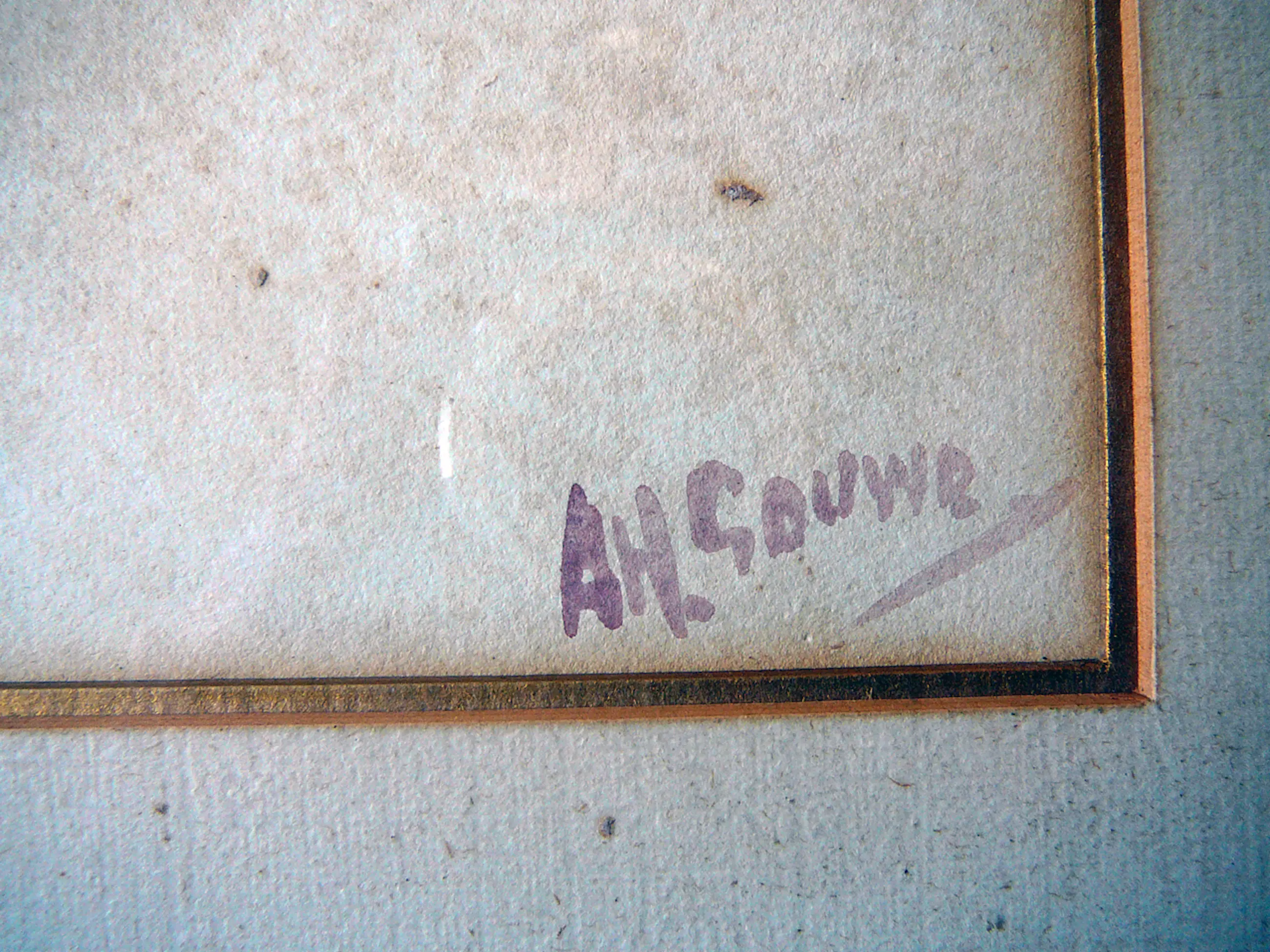 Adriaan Herman Gouwe werd in 1875 in Alkmaar geboren. Hij woonde en werkte in Amsterdam, Italië, Rome, Den Haag, Gulpen, Zuid Limburg, Blaricum, Frankrijk, Spanje, Marocco . Laren, Eemnes, België en Maastricht. In 1927 vertrok hij naar Tahiti. Alleen in 1959 kwam hij voor korte tijd terug naar Nederland. Gouwe was leerling van de Rijks School voor Kunstnijverheid o.l.v. August Allebe en N. van der Waay en hij behaalde in 1901 de Prix de Rome. Schilderde tekende en etste veel Limburgse landschappen en vooral ploegende paarden. Later meer gezichten op Tahiti. Geboren en getogen in Alkmaar, stammend uit een goed nest en door de gemeenschap in de wieg gelegd om net als zijn vader notaris te worden, maar door hogere machten voorbestemd om uit te groeien tot een vermaarde schilder. In de kring van kenners, zeer gerespecteerd om zijn zoektocht naar de ware schilderkunst. Herman Gouwe, een rusteloos bohémien die uitkwam op het vergeestelijk schilderen. Gouwe begon zijn opleiding bij de Alkmaarse decoratieschilder Luitenet. Na zijn opleiding aan de Amsterdamse Akademie stelde de erfenis van zijn inmiddels overleden vader hem in staat om een paar jaar te reizen. De beurs, verbonden aan de Prix de Rome stelde hem opnieuw in staat te reizen. Hij trok naar Italië, maar ook naar Frankrijk een Spanje. Aanvankelijk schilderde Gouwe in de traditionele stijl van de Haagse School. Tijdens een kort verblijf in Parijs raakte hij nog niet in de ban van de vernieuwingen die daar plaats grepen. Later troonde zijn studiegenoot, Jhr Rob Graafland hem mee naar Zuid-Limburg en vanaf 1908 was hij elke lente en zomer in de dorpen rond Maastricht te vinden. Elk najaar toog hij weer naar Amsterdam. Na een scheiding van zijn vrouw en wie hij zijn vaders erfenis liet, bleven geldzorgen hem als een rode draad door zijn leven volgen. Critici en kopers ontdekten Gouwe rondom 1909. Gouwes Zuid-Limburgse landschappen en ploegende paarden werden op zijn eerste tentoonstelling bij St Lucas goed verkocht. Gouwe zocht in de gemoedelijke blije sfeer van Zuid-Limburg, de rust om in vrijheid te experimenteren en te werken aan zijn artistieke ontwikkeling, ver van opdrachtgevers en critici. De ploegende paarden achtervolgden Gouwe zijn hele leven, de werkknollen waren zijn handelsmerk geworden. Veel later, toen Gouwe al lang op Tahiti zat, werd hem nog steeds gevraagd paarden te leveren. Gouwe is vooral geïnspireerd geraakt door het werk van Jan Sluyters, Leo Gestel en Piet Mondriaan. En met name van die laatste vernieuwende kunstenaar wist Gouwe zich zijn hele leven te herinneren wat hem raakte toen hij in 1909 de zalen van het Stedelijk Museum in Amsterdam betrad; Bij binnenkomst in de expositiezaal was de eerste indruk een van licht en ruimte. Figuur, landschapen en bomen in lichte, primaire kleuren end e compositie een delicate tekening, waarin zich ene zeker ritme deed kennen, gaf synthese tot het sujet dat hij behandelde. Hij steeg uit de materieel natuurlijke vormen op naar het geestelijk abstracte Het is die geestelijke werkwijze die Gouwe zelf nastreeft als hij op Tahiti zijn draai gevonden heeft. Hij heeft er bijna 40 jaar geleefd en gewerkt. Er waren periodes van armoede: hij had geen schoenen aan zijn voeten, kon alleen vis en vruchten eten en stapte in een lende doek rond. Het tweeslachtige was, dat hij de armoede nooit heeft kunnen accepteren. Wel wilde hij uit de Europese geldjacht zien los te komen, hij streefde geen rijkdom na, aar wilde wel onbekommerd materialen kunnen kopen. Vanaf 1933 vond hij de balans tussen opdrachten en zijn vrije werk. Hij wilde de natuur niet schilderen vanuit de waarneming, maar vanuit zijn geest. Hij wilde niet vervallen in het schilderen van clichés zoals zoveel anderen dat deden die zich op de Polynesische eilanden vestigden. Gouwe wilde geen realiteit kopiëren, maar een realiteit tonen zoals niemand die ooit gezien had. Dat vroeg om doordringen in onderwerp, persoon en natuur. Het leidde tot felle, lichtintense, brutaal geschilderde doek. Stevig in de verf, materiaal van opzet geestelijk in uitvoering. (Bron Metzemaekers kunstmakelaardij)