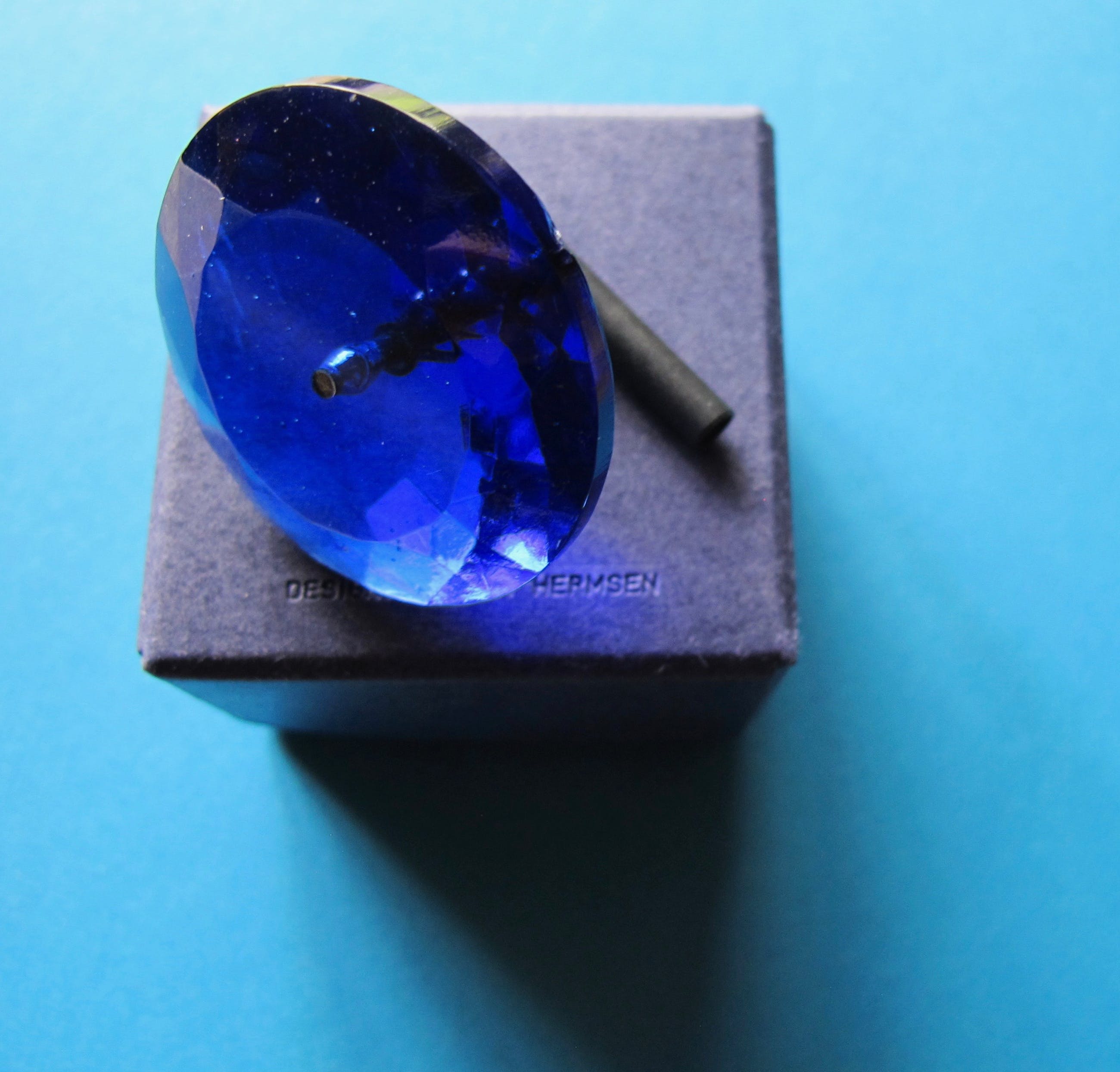 Een klemring van de ontwerper Herman Hermsen. materiaal:glas en metaal. Maat ±18,5 De ring wordt tussen twee vingers geschoven.