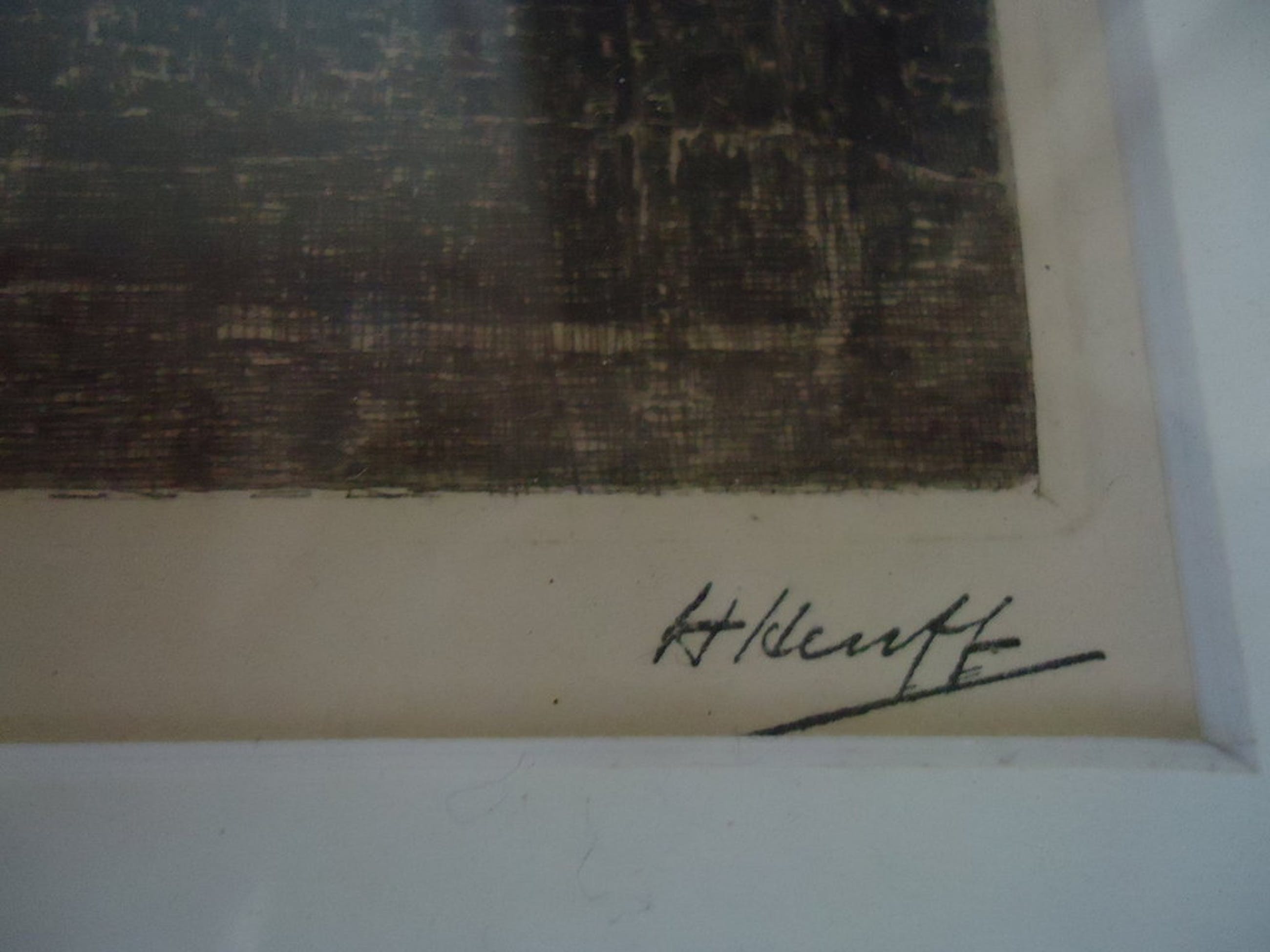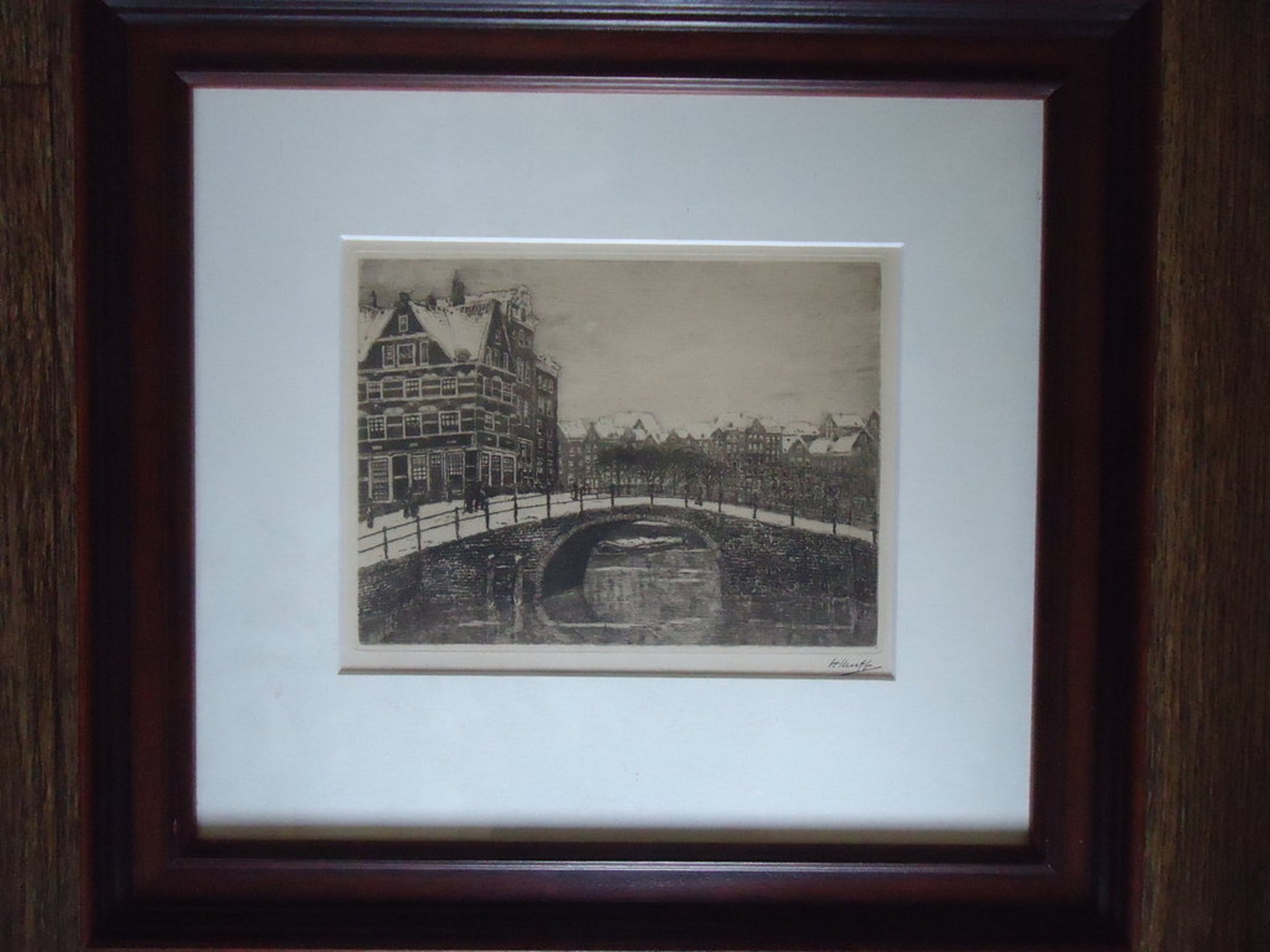 Ets : 14 x 20 cm. Met zuurvrij passe-partout en lijst : 35 x 39 cm.