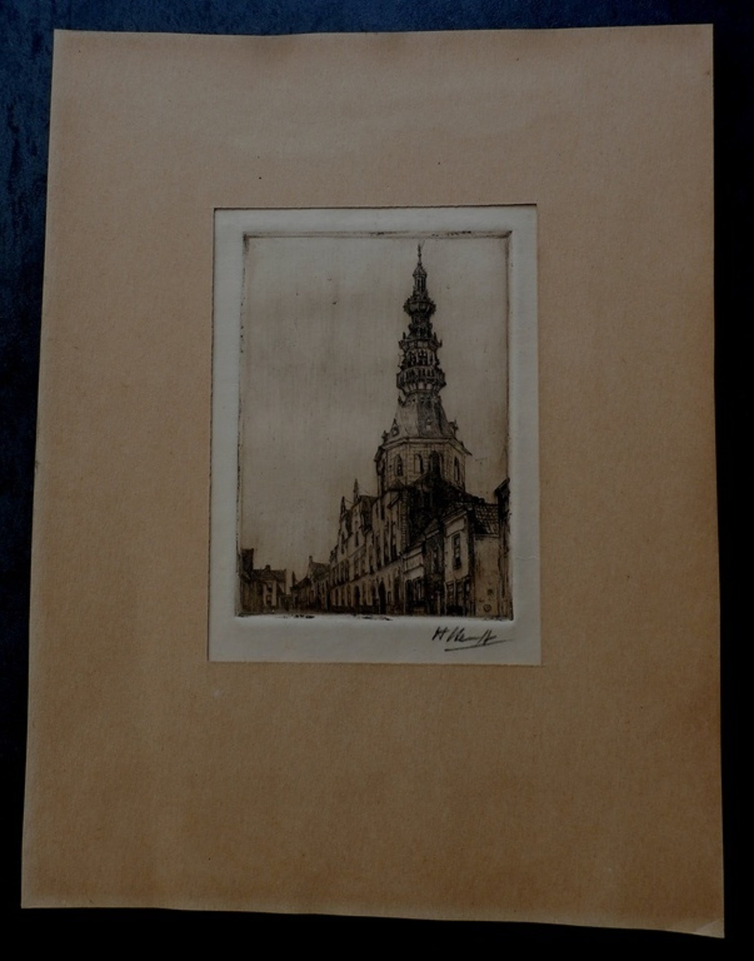 Ets van Herman Heuff. Afmetingen blad incl passepartout: H22.5 x B17.5. Afmetingen voorstelling H10 x b7. Het werk is rechtsonder gesigneerd door de kunstenaar. De authenticiteit van het aangeboden werk kan voor 100% worden gegarandeerd. Een certificaat van echtheid kan, op aanvraag, worden meegestuurd. Conditie: in goede staat. De passepartout om het werk heen, is wat vergeeld. Het werk kan ook in een A4 envelop worden verzonden.