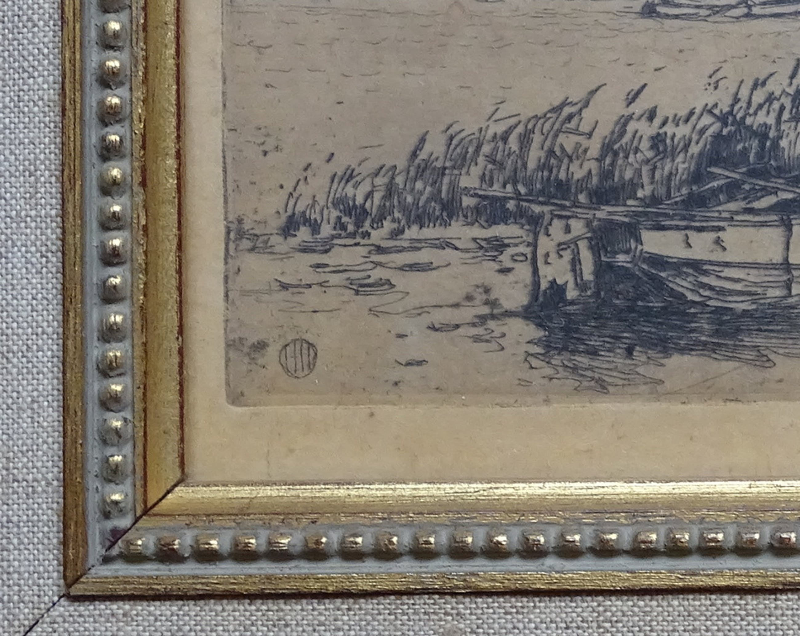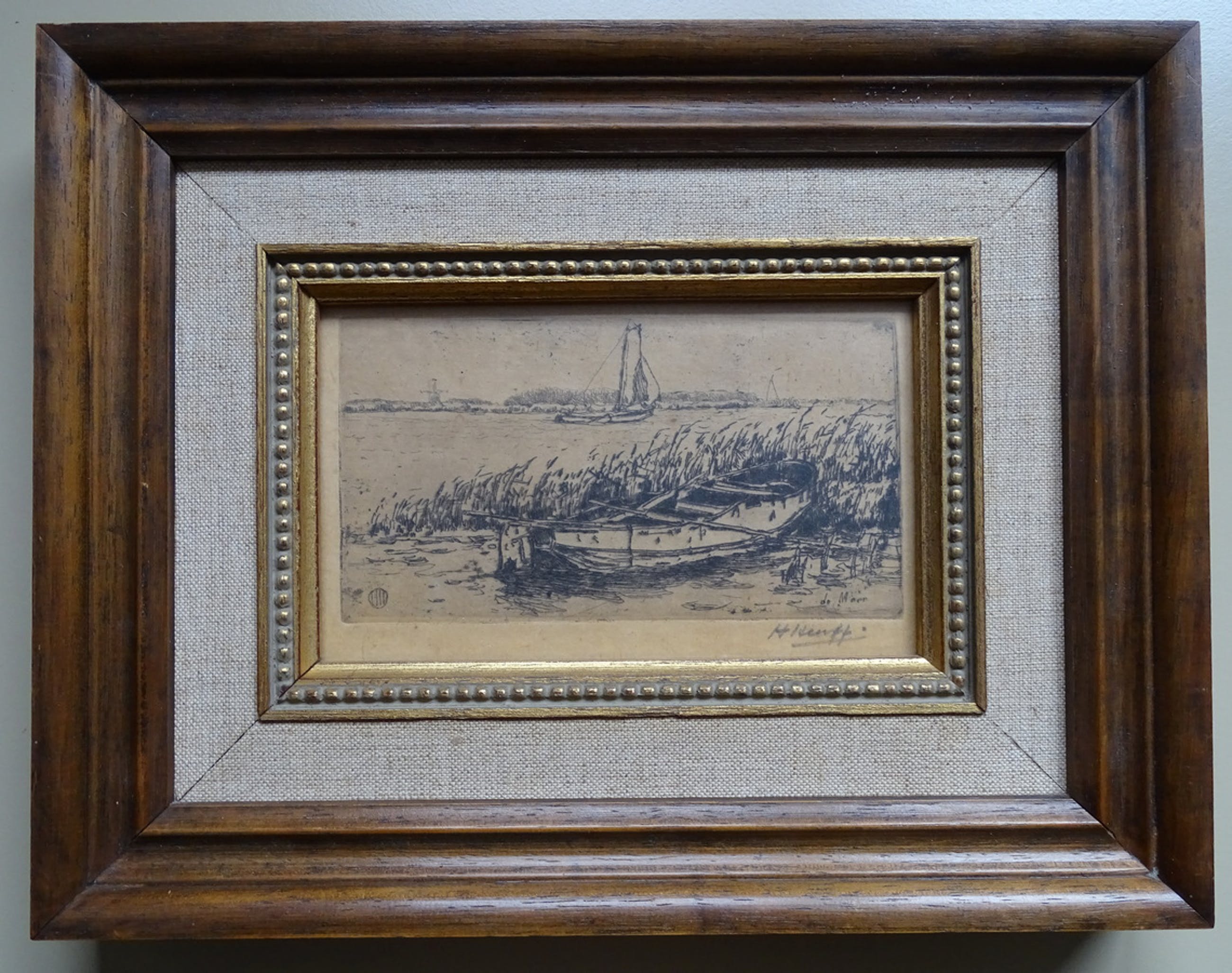 Sfeervol etsje, ingelijst achter ontspiegeld glas, met potlood gesigneerd. In zeer goede staat.