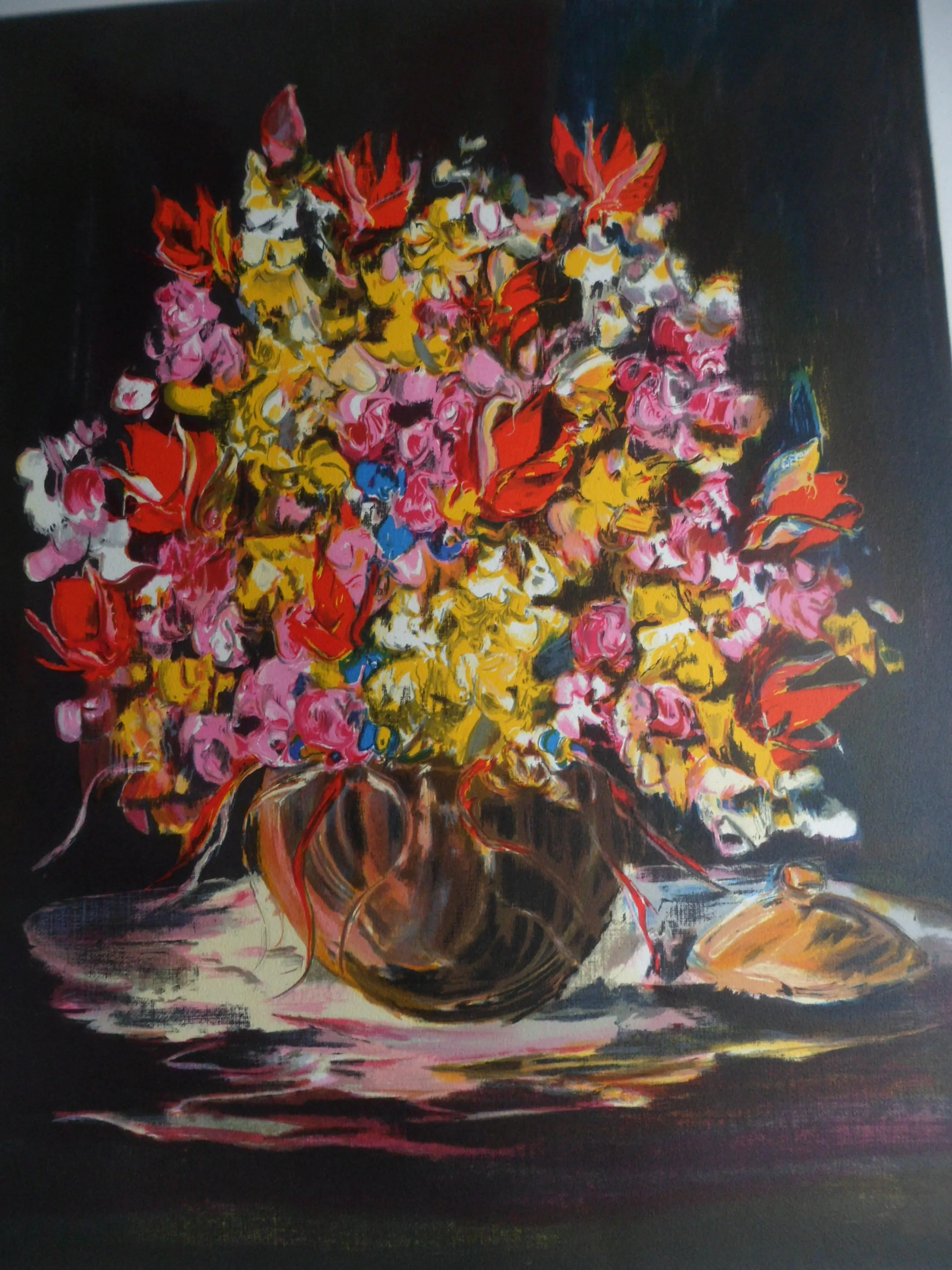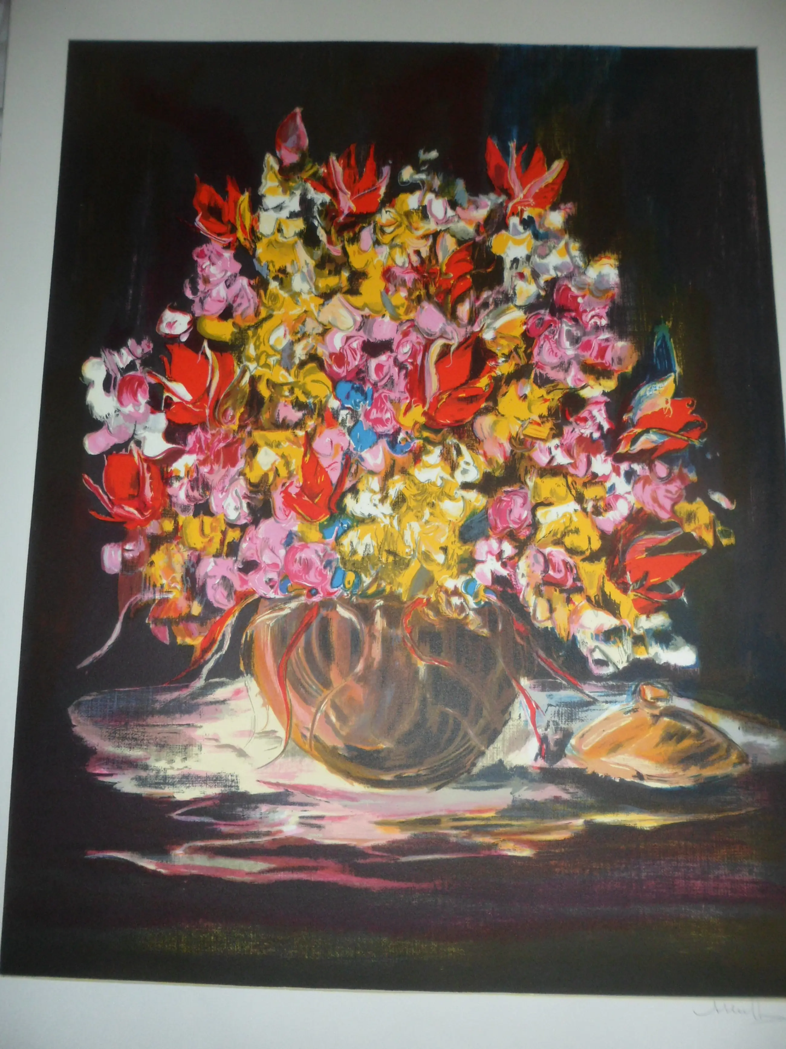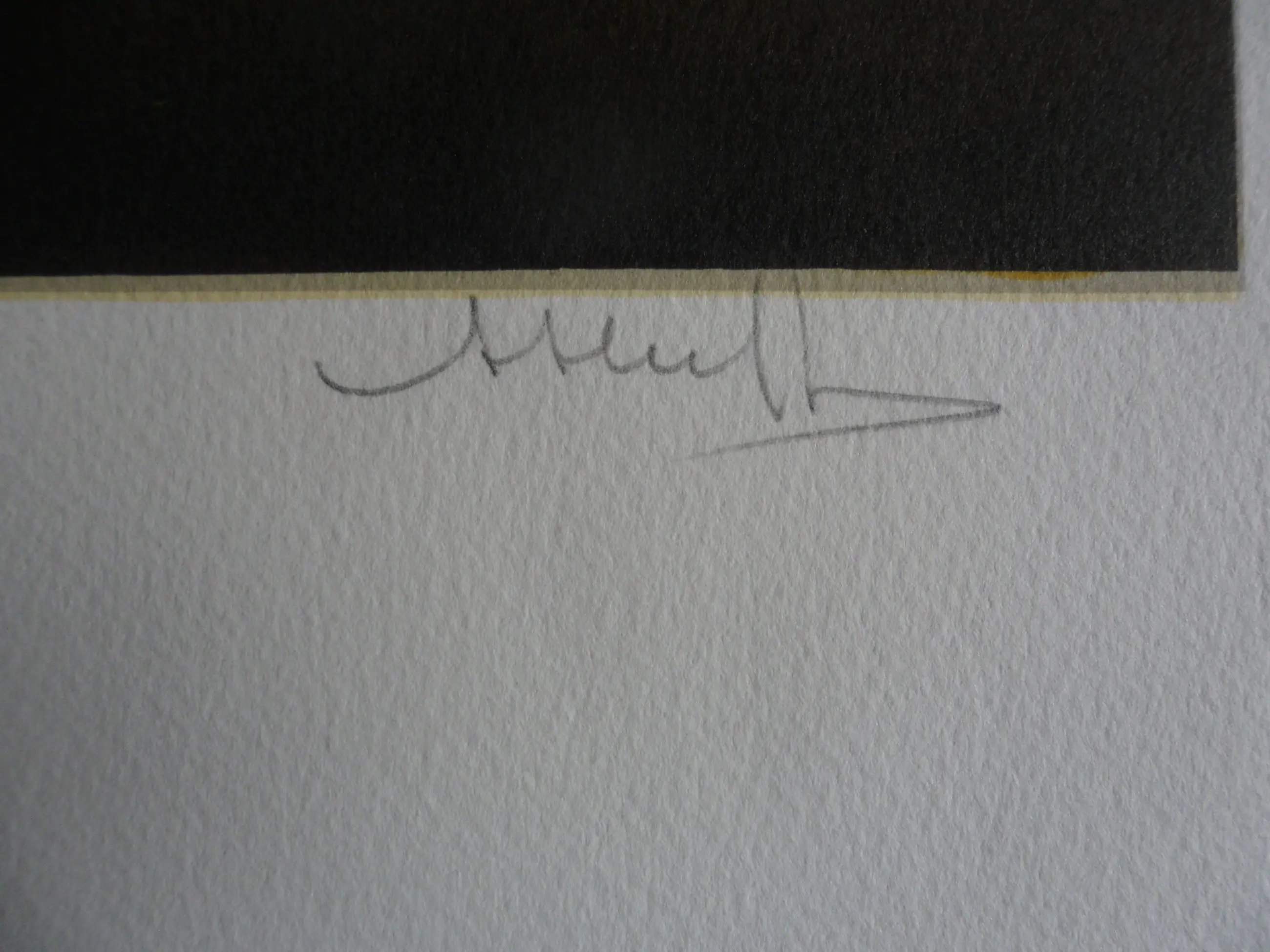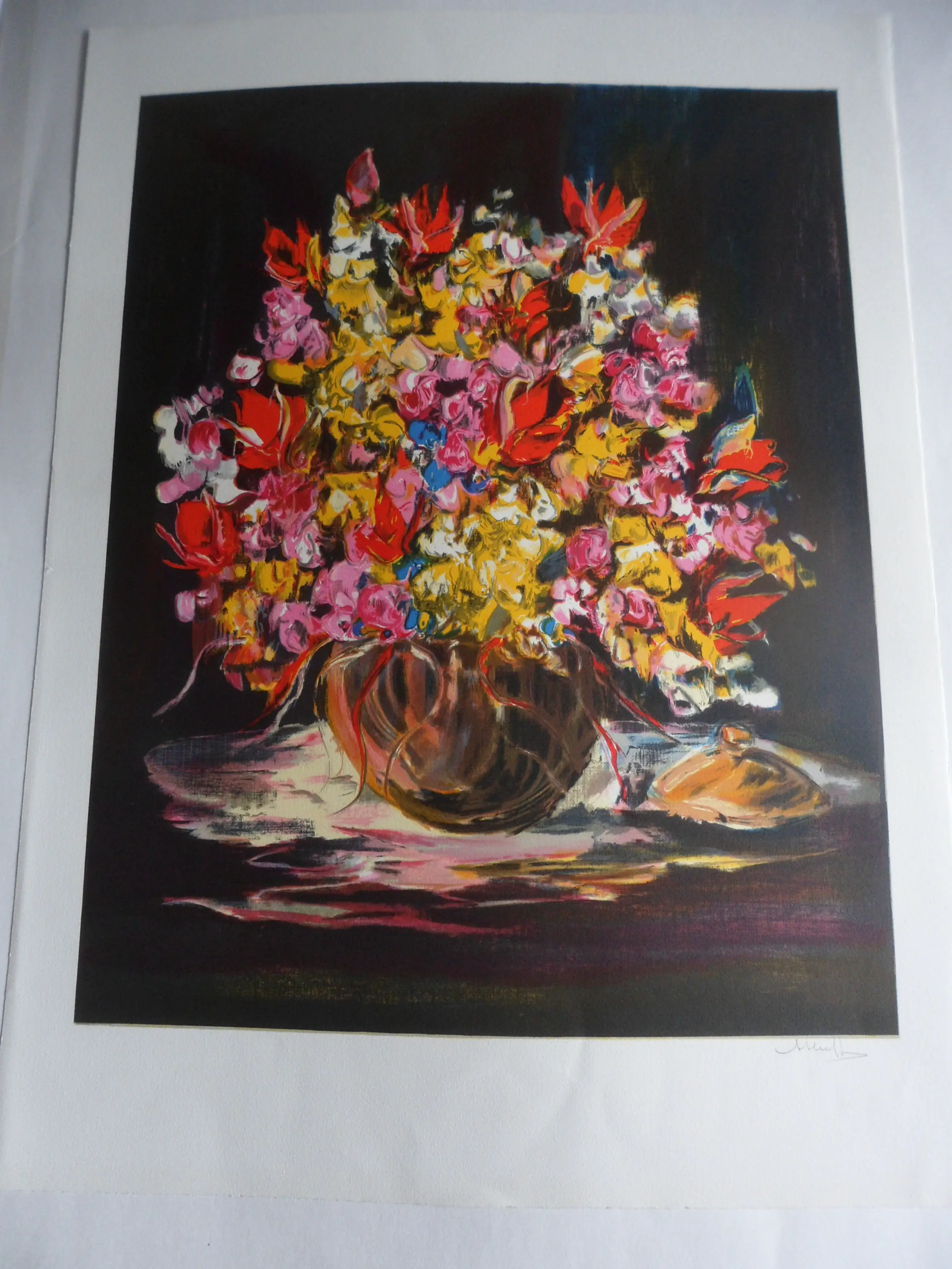 Lithografie in kleur op papier. Ongenummerd, gesigneerd in potlood, R.O.: ‘Heuff’.