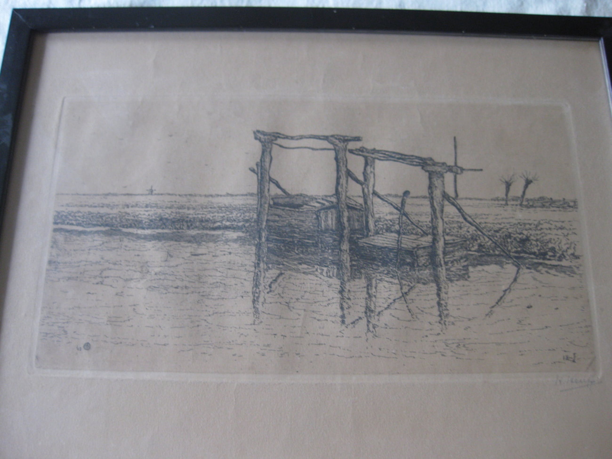 Voor schilderijen en ander ingelijst werk geldt het volgende: bij verzending kan ik geen garanties geven op het heel overkomen van het glas van een lijst, wel zal ik mijn uiterste best doen het werk zo goed mogeljik te verpakken. Kleine gebreken aan de lijst in de vorm van stootplekjes en krassen vermeld ik niet.