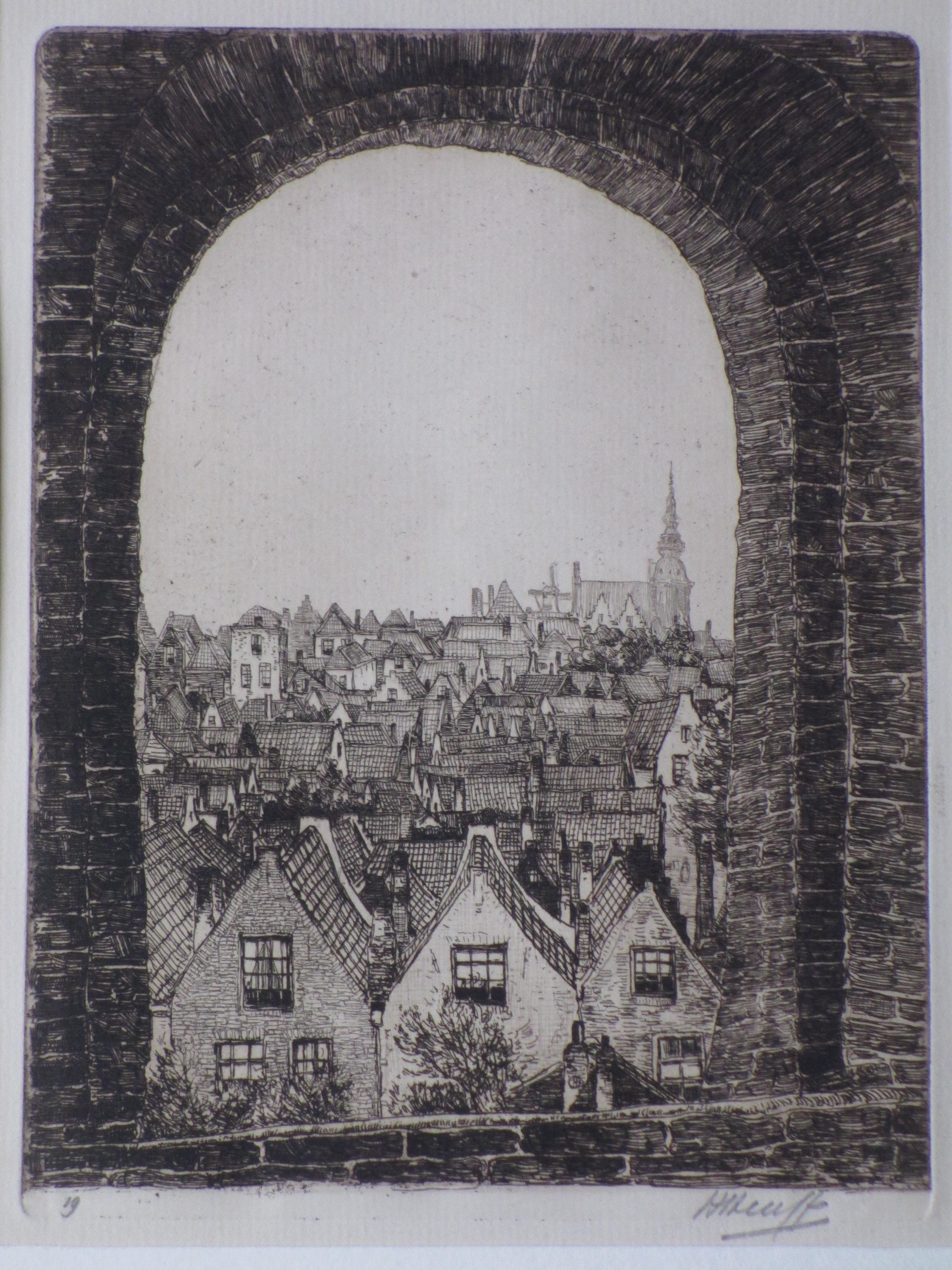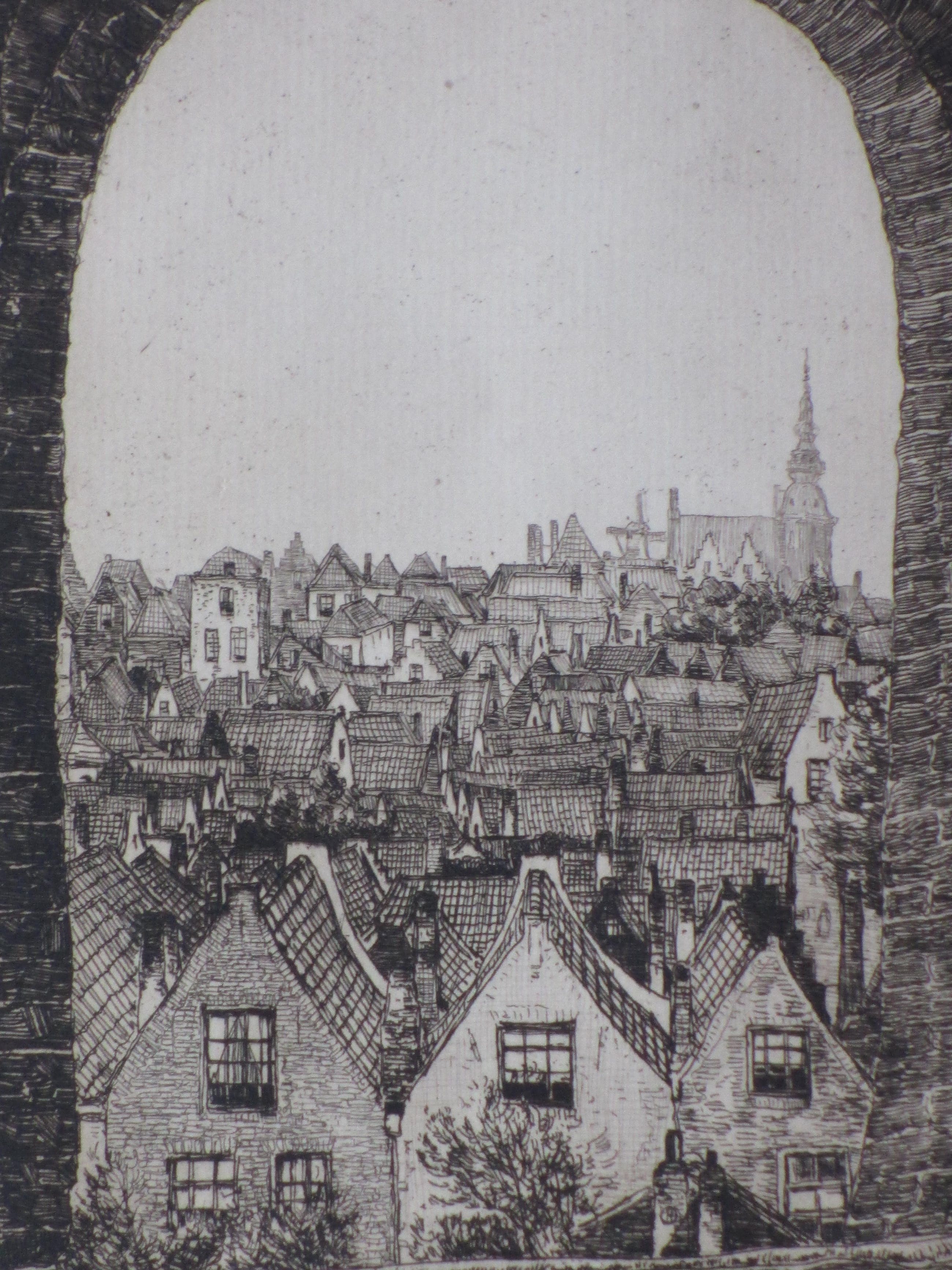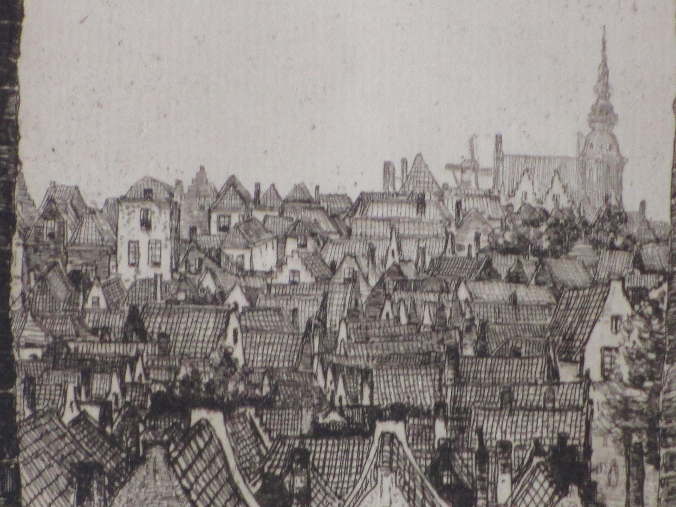 Ets door Herman HeuffVoorstelling van een stadsgezicht over ZierikzeePanorama vanuit de grote Sint Lievens MonstertorenGesigneerd r.o. 'H.Heuff'Authenticiteit volledig gegarandeerd